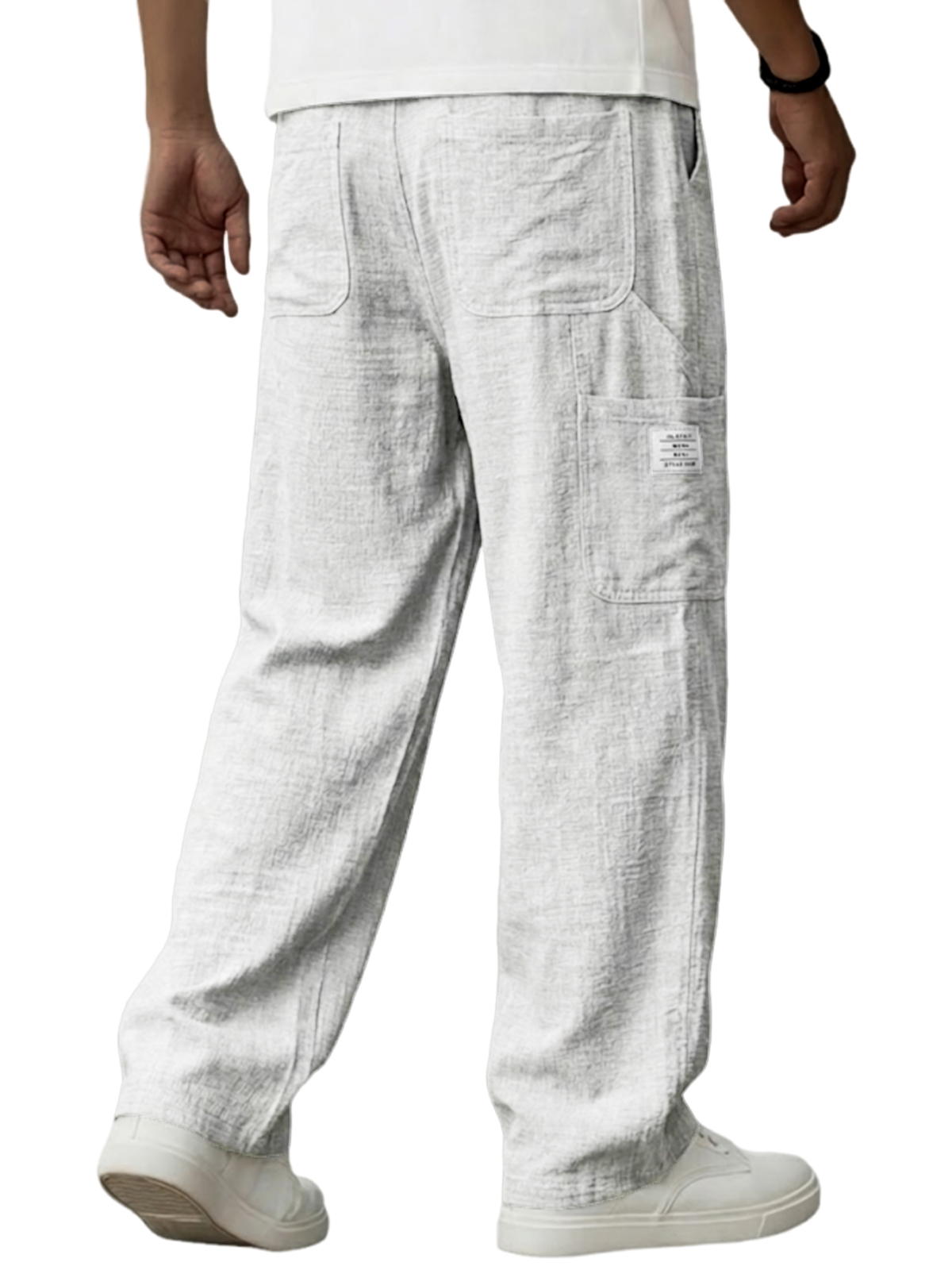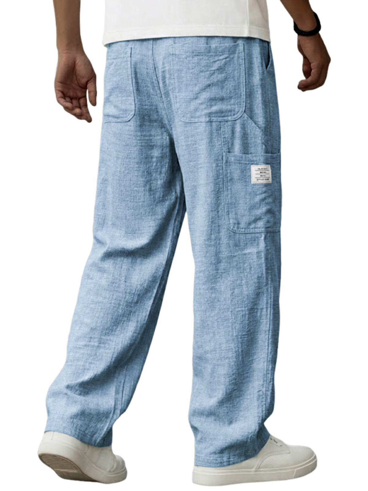 Men's Breathable Linen Pants Resort Casual Loose-Fit Trousers with Embroidered Leather Patch$42.99 USD -