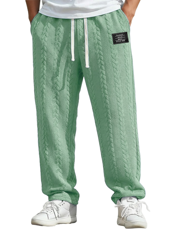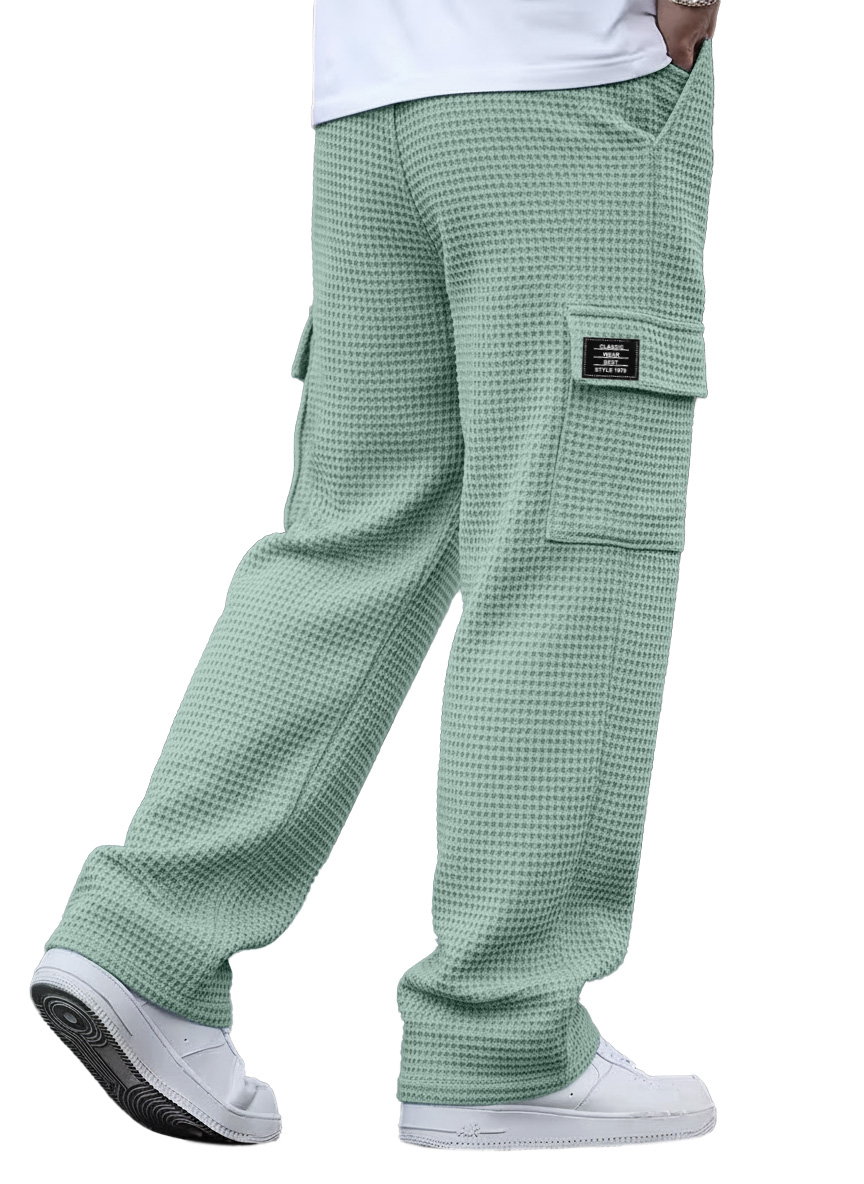 Men's Waffle-knit Casual Loose-fitting Trousers With Patch Pockets And Embroidered Logo$42.99 USD -