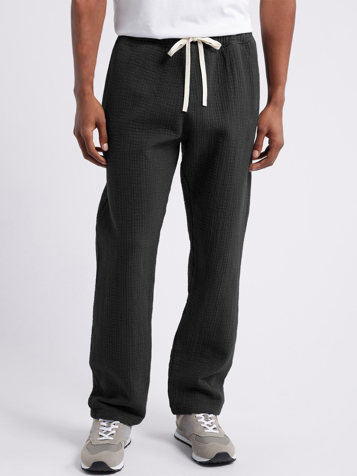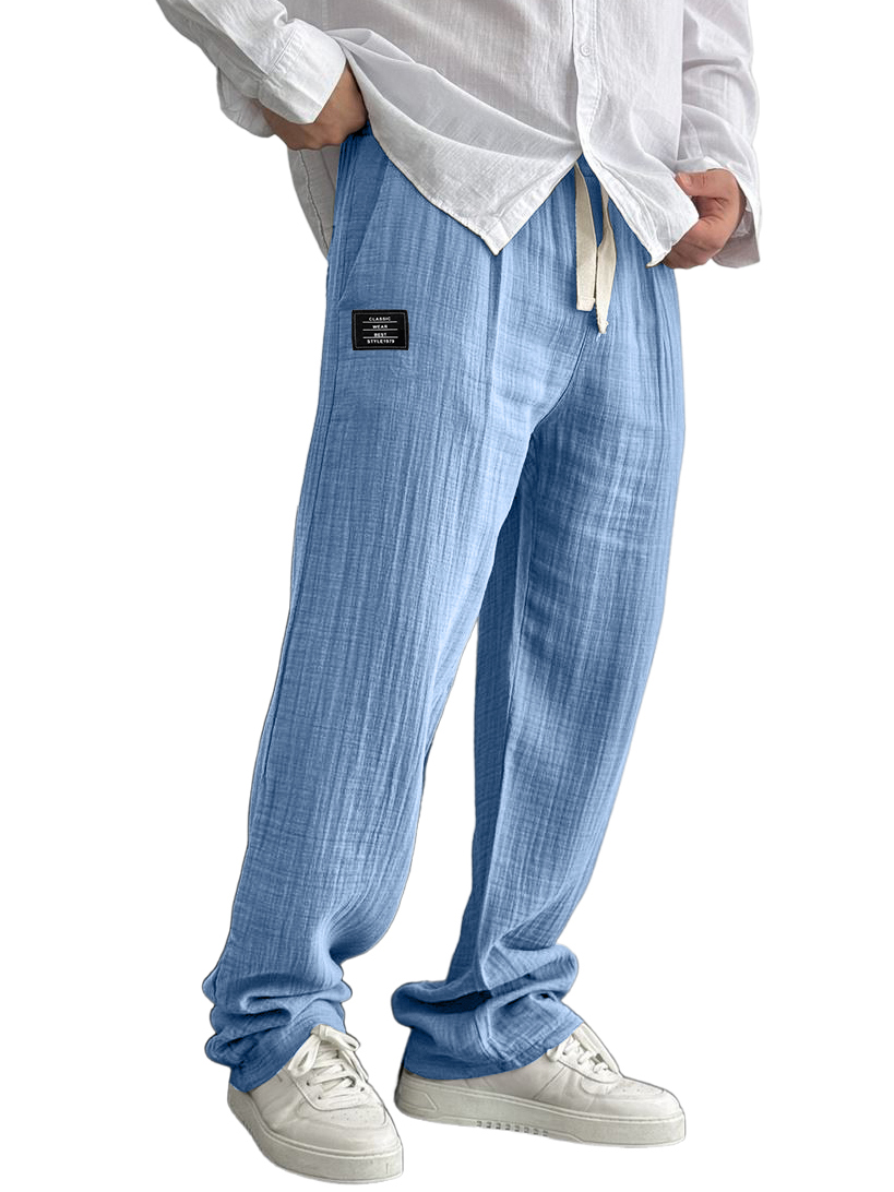 Men's Breathable Seersucker Trousers Casual Vacation Basic Drawstring Pants With Side Pockets$42.99 USD -