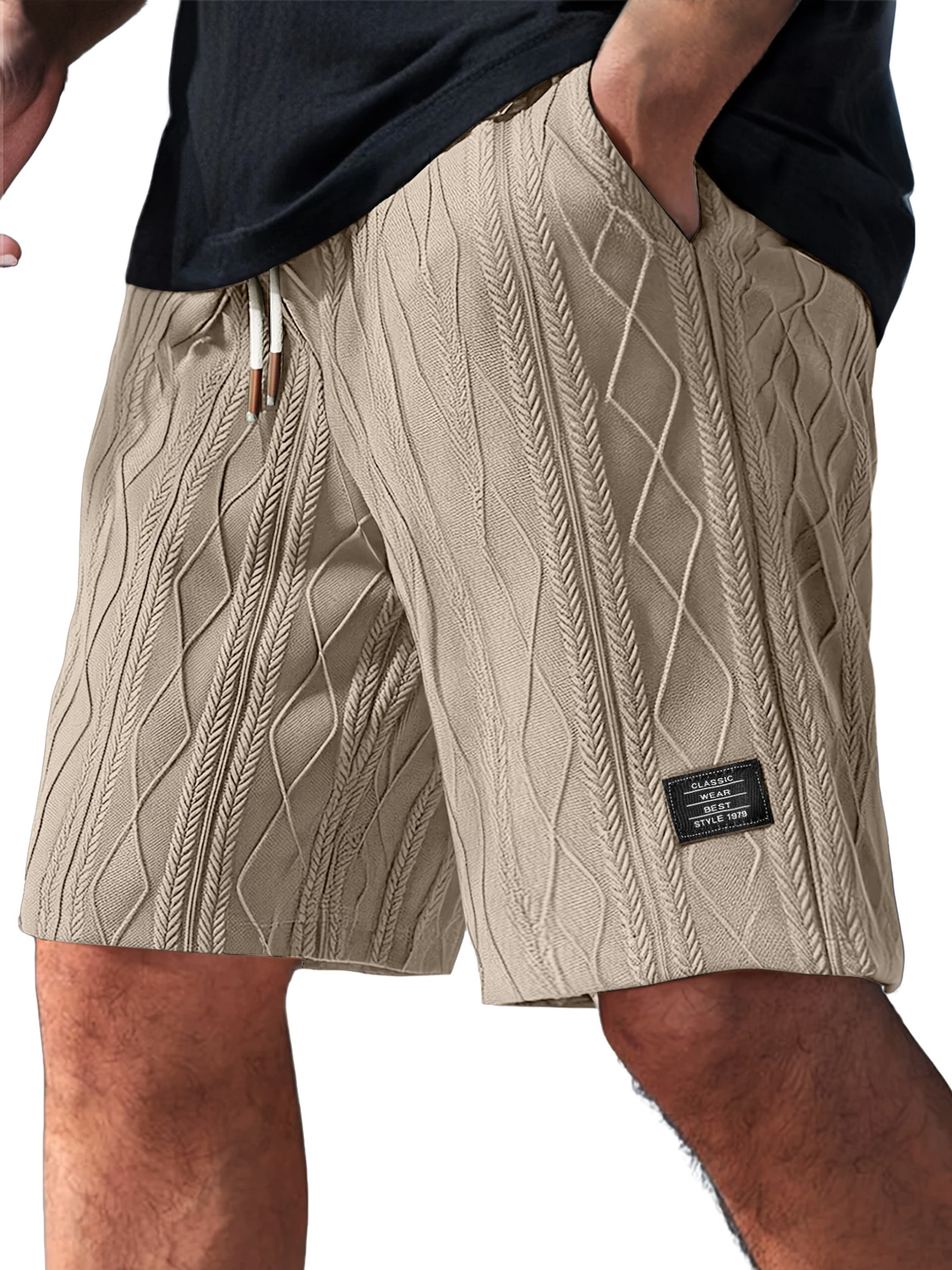 Men's Daily Jacquard Texture Logo Casual Solid Color Shorts$37.99 USD -