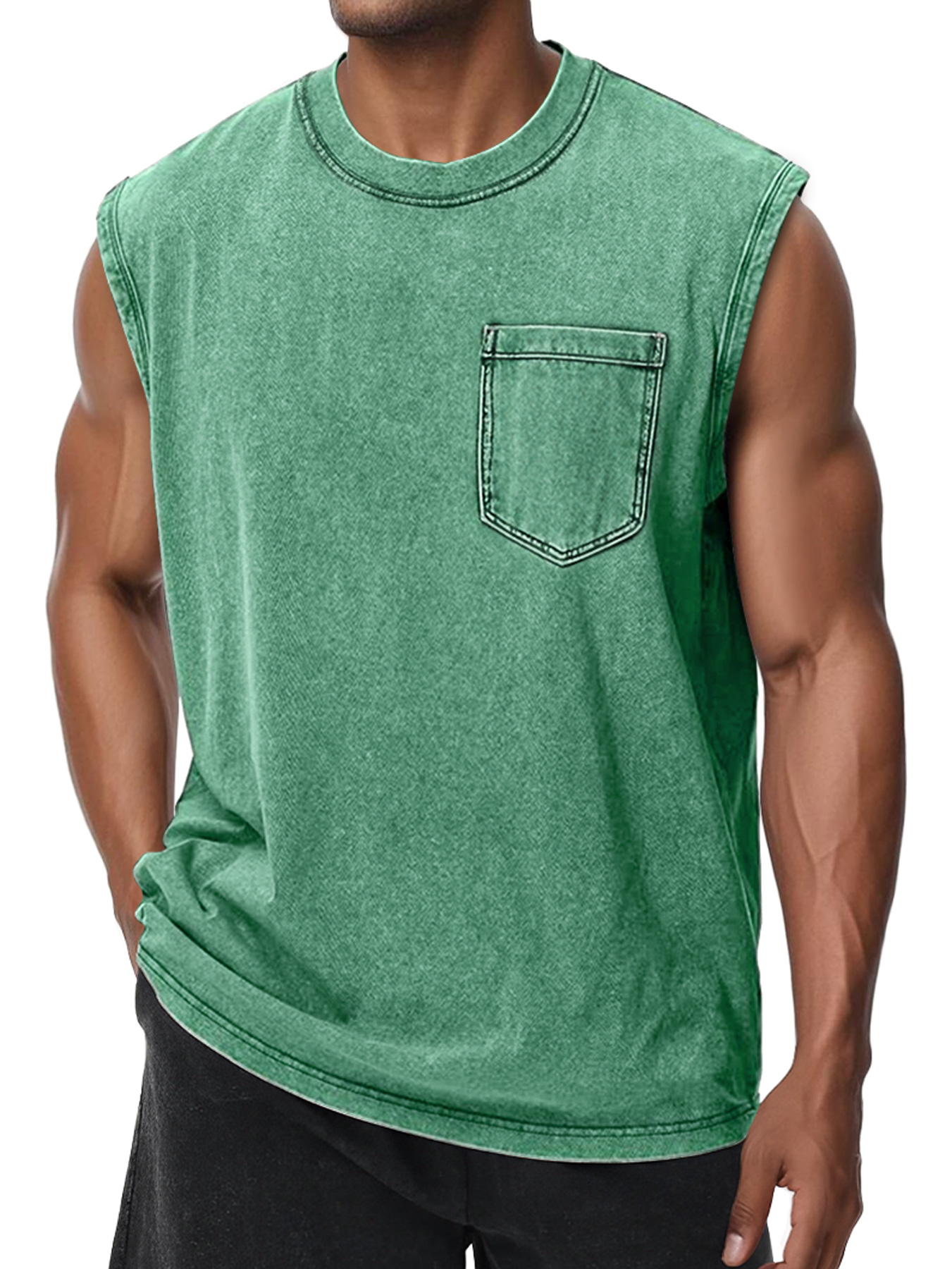 Men's Vintage Washed Solid Color Comfortable Sleeveless T-shirt$37.99 USD