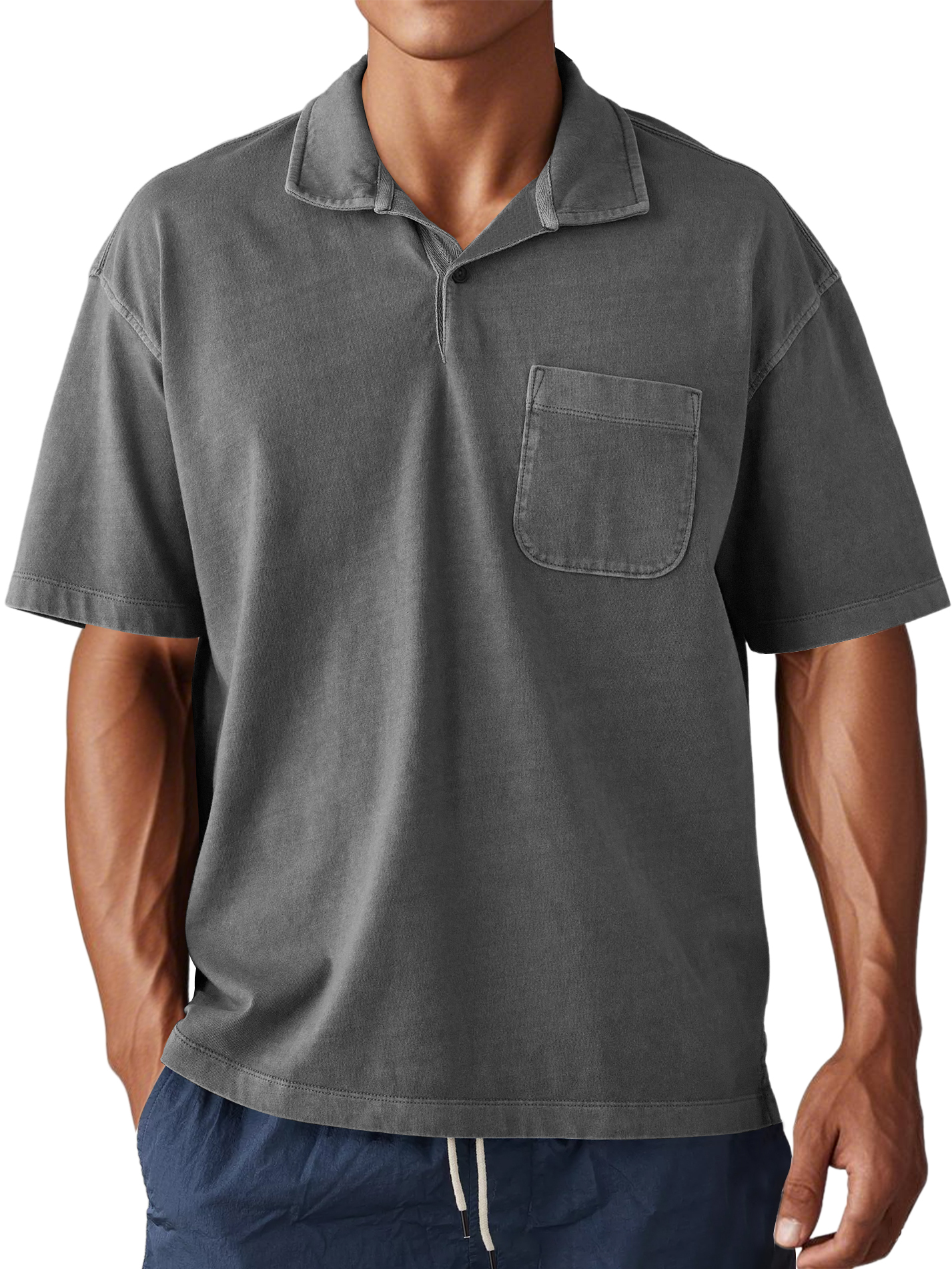 Men's Stylish Retro Washed And Distressed Loose Daily Short-sleeved Polo Top$39.99 USD -
