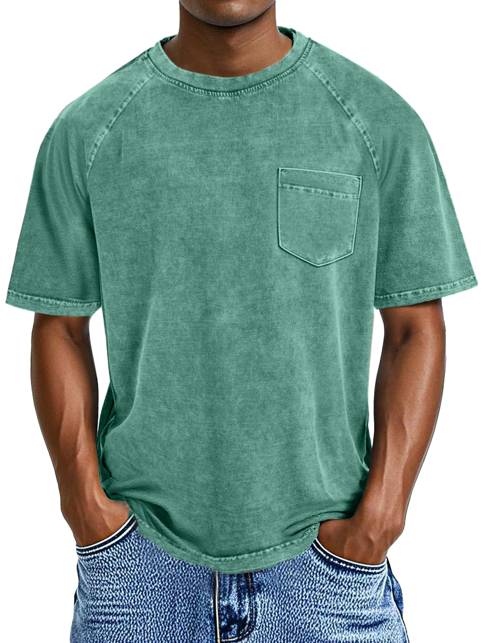 Men's Retro Casual Solid Color Pocket Raglan Short Sleeve T-shirt$39.99 USD -