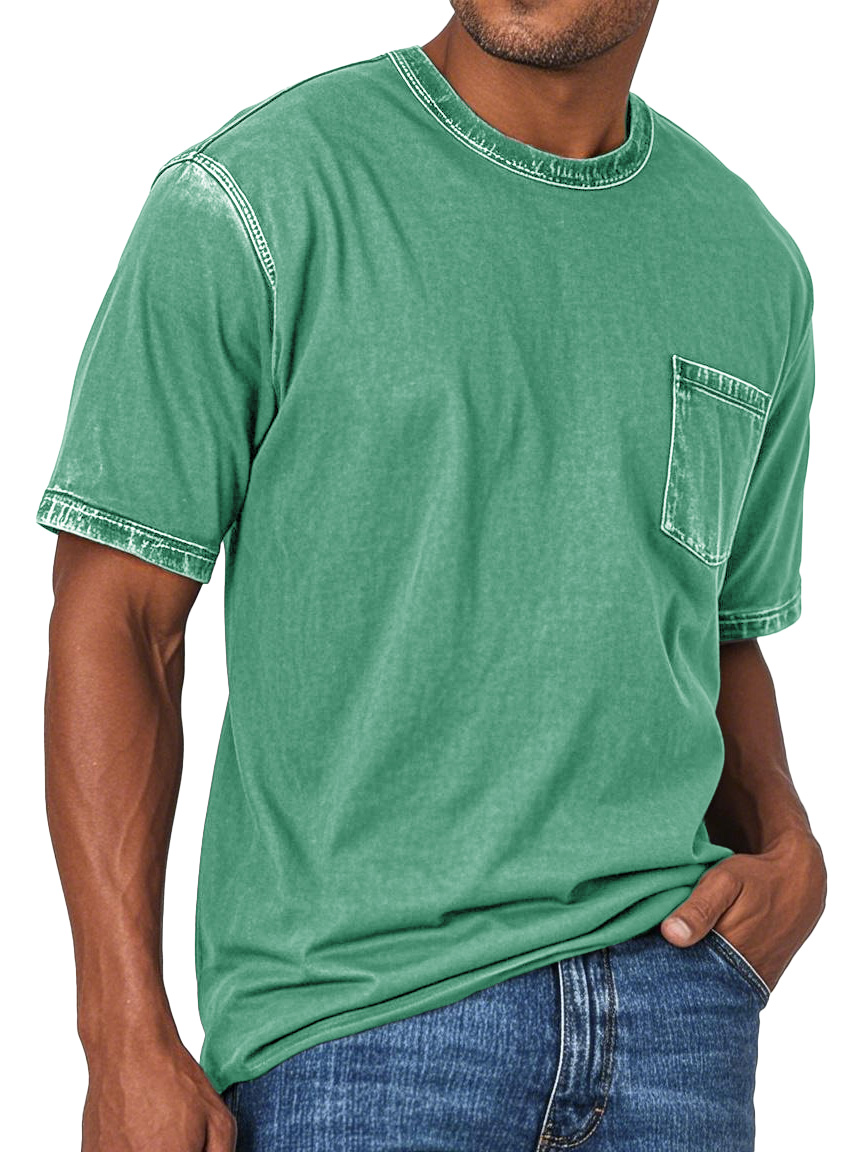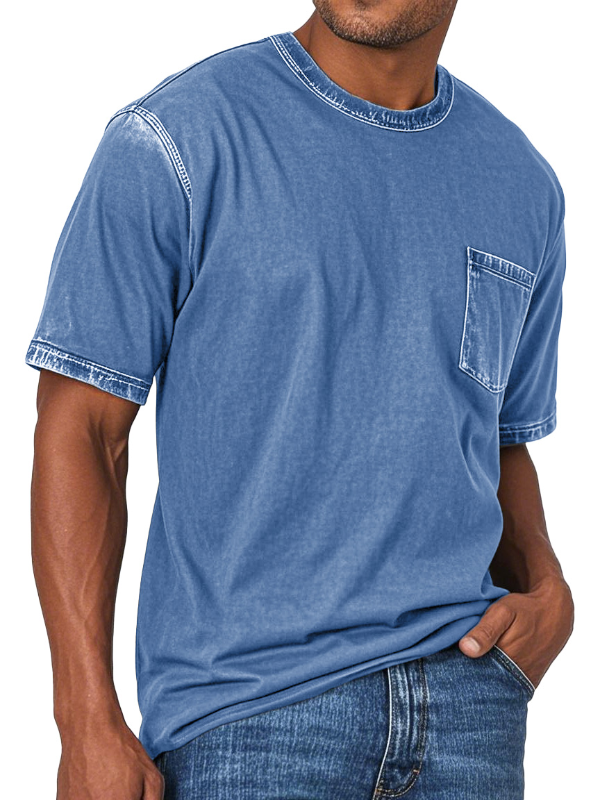 Men's Fashion Retro Washed Round Neck Pocket Short Sleeve T-shirt$37.99 USD -