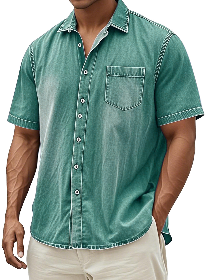 Men's Retro Solid Color Simple Everyday Short Sleeve Button Lapel Shirt$39.99 USD -