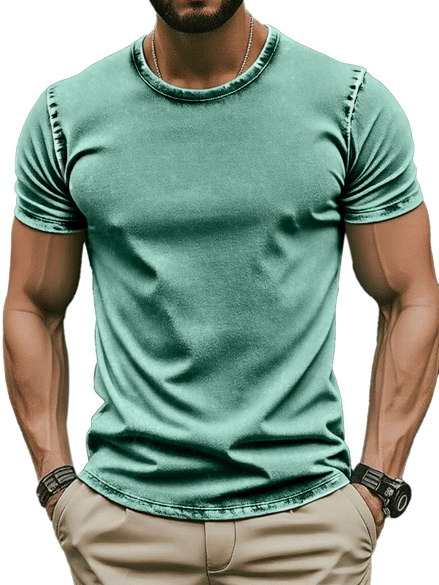 Men's Retro Simple Daily Solid Color Washed Cotton T-shirt$39.99 USD -