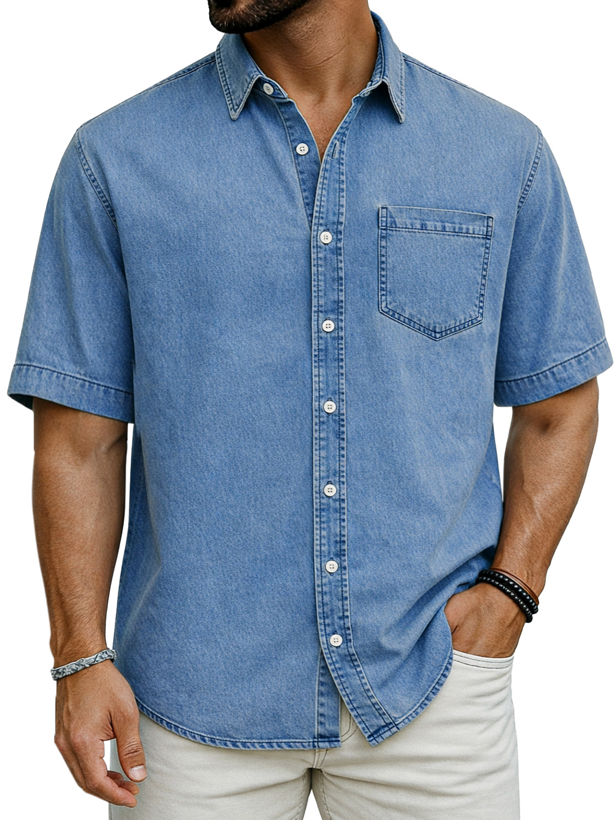 Retro Simple Solid Color Short-Sleeve Shirt with Chest Pocket$37.99 USD -