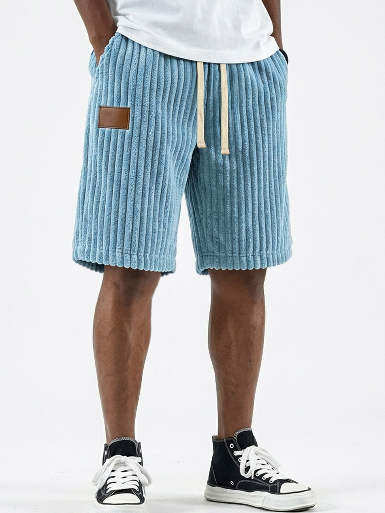 Men's Retro Corduroy Leather Label Casual Loose Shorts$37.99 USD -