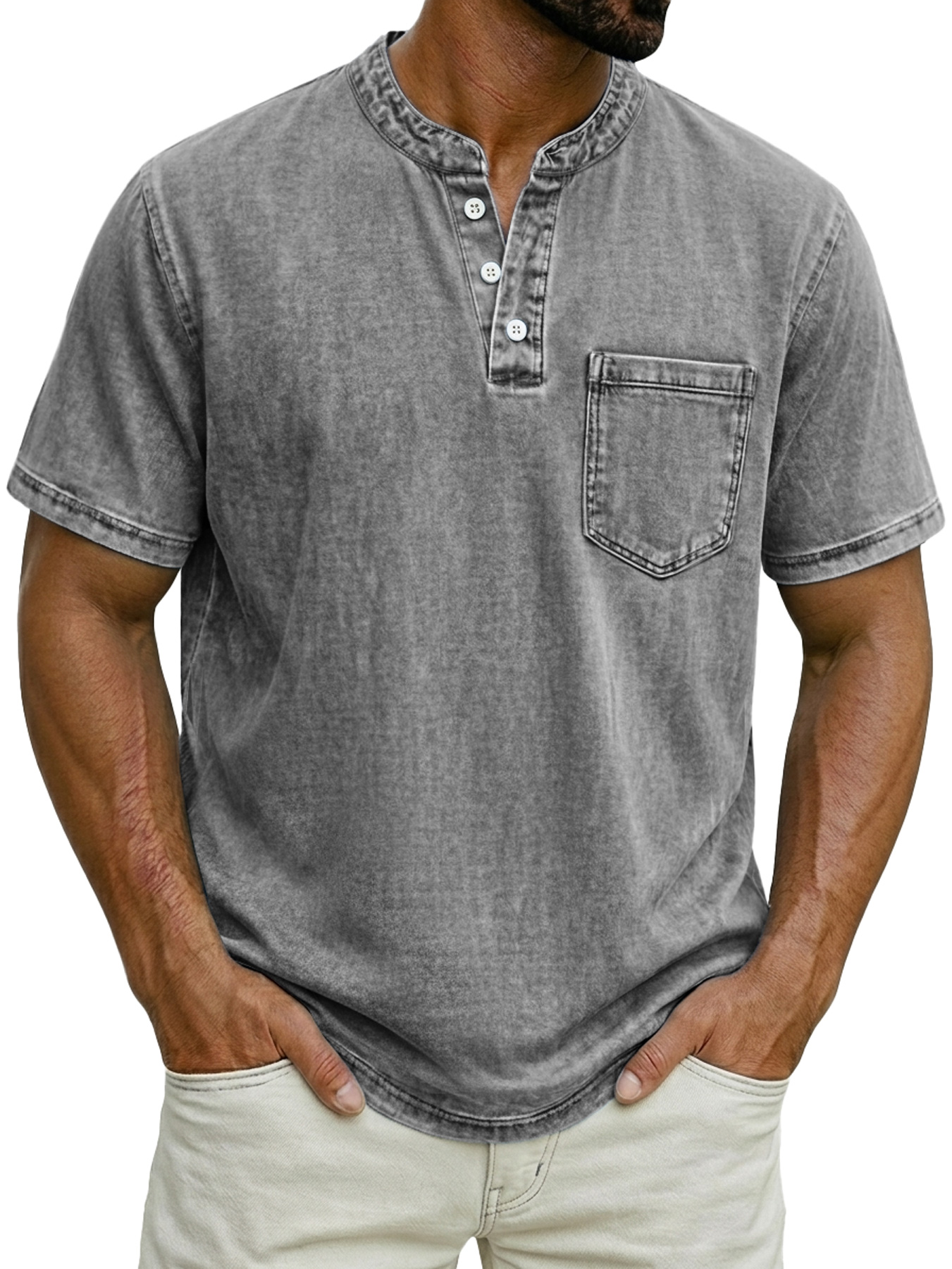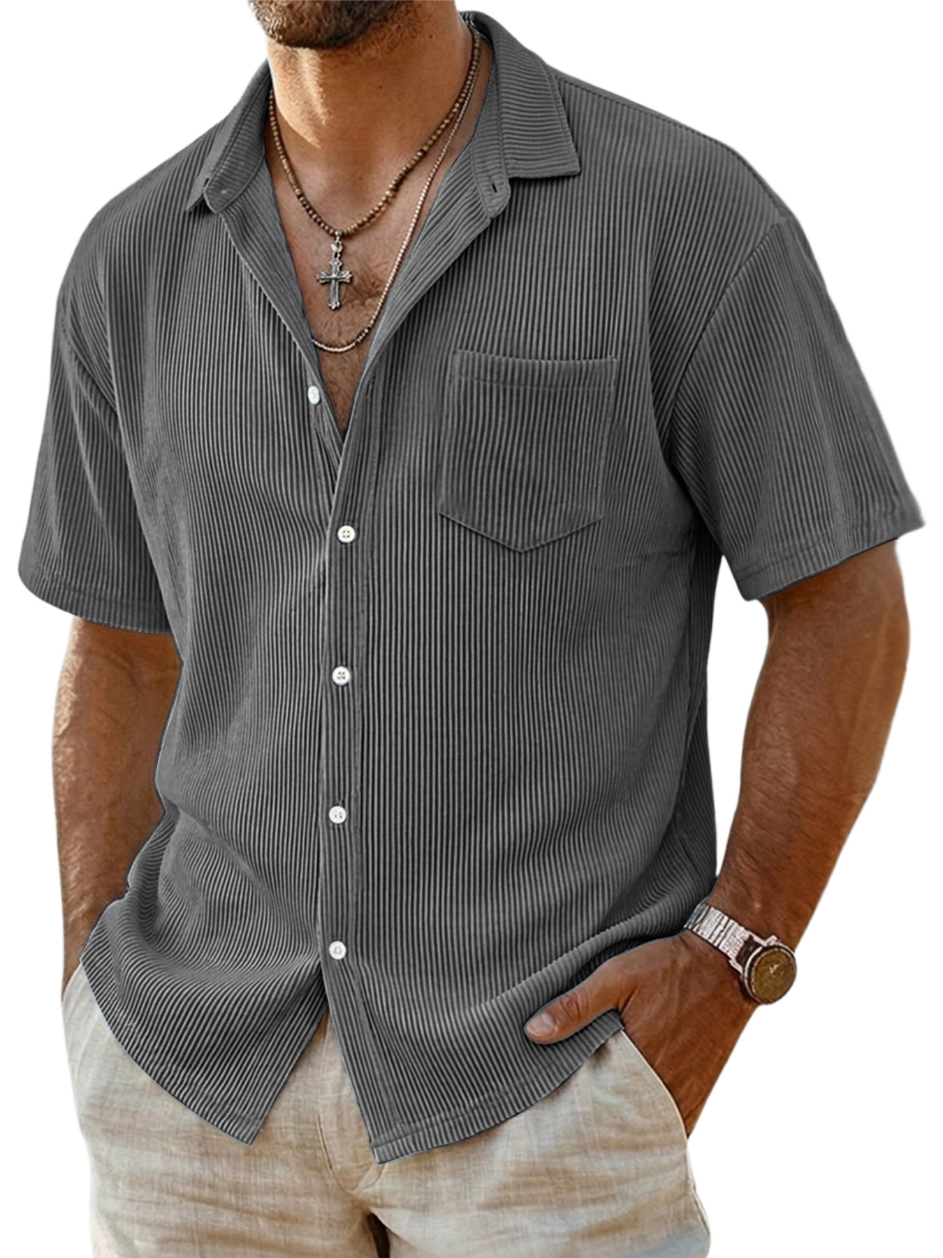 Men's Casual Ribbed Pocket Short-sleeved Shirt$37.99 USD -