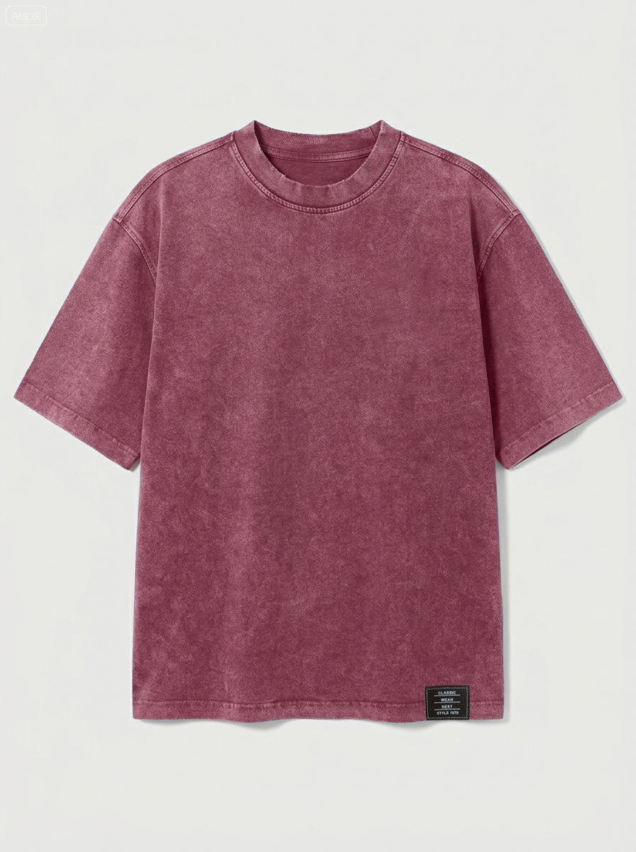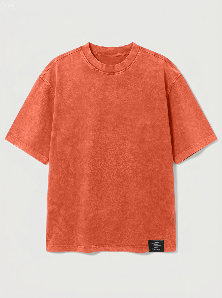 100% Cotton Vintage Casual Washed & Distressed Embroidered Logo Crew Neck Short-Sleeve T-Shirt
