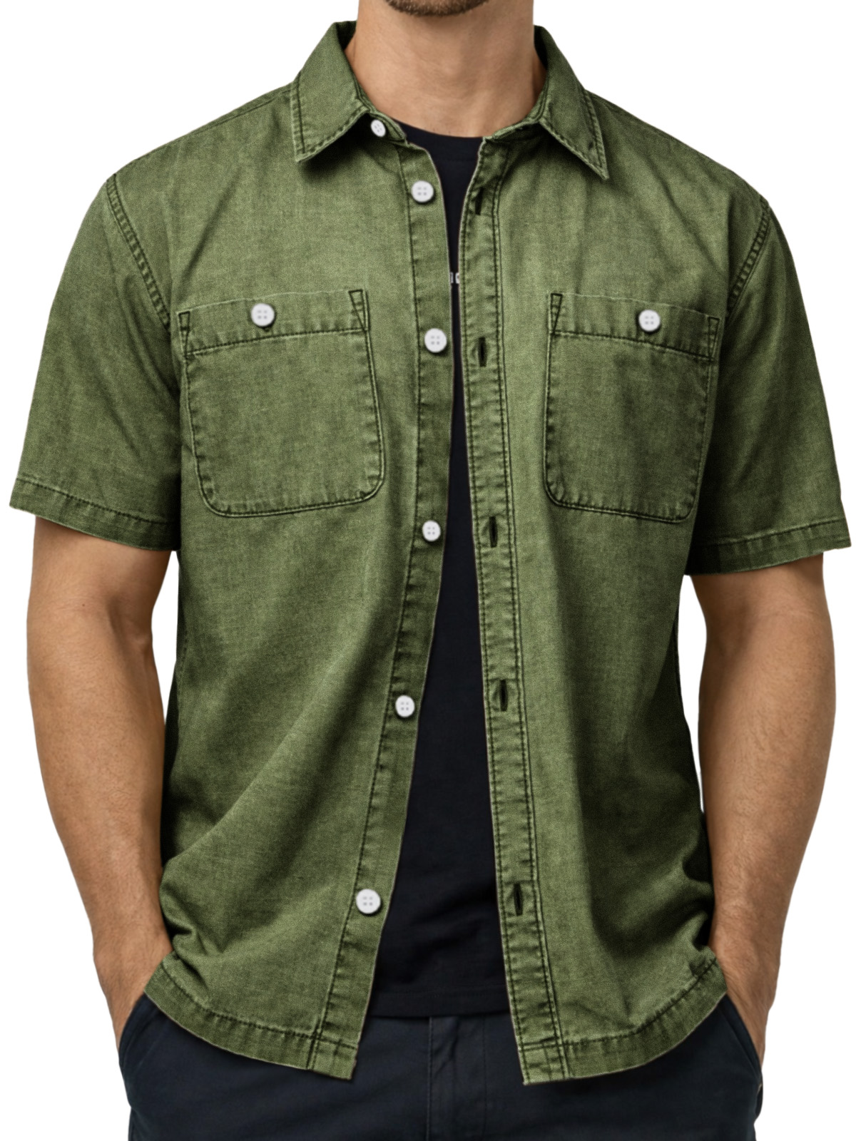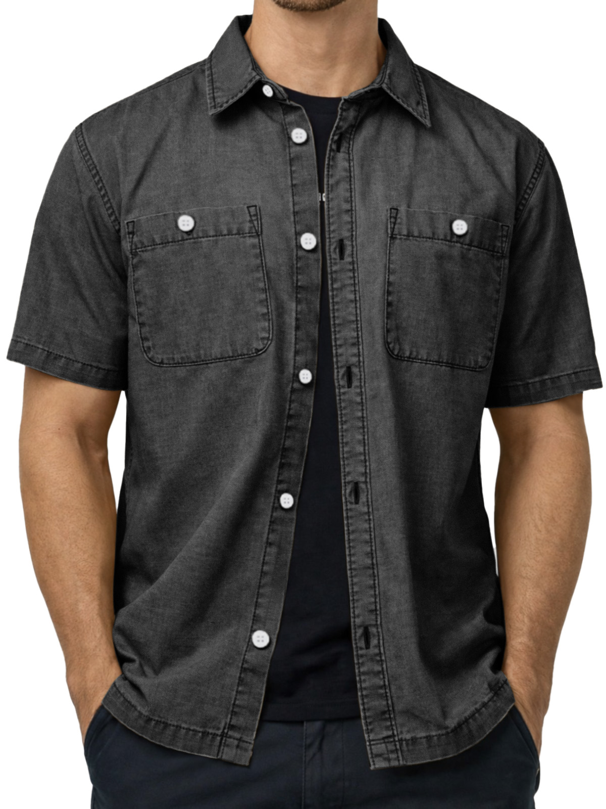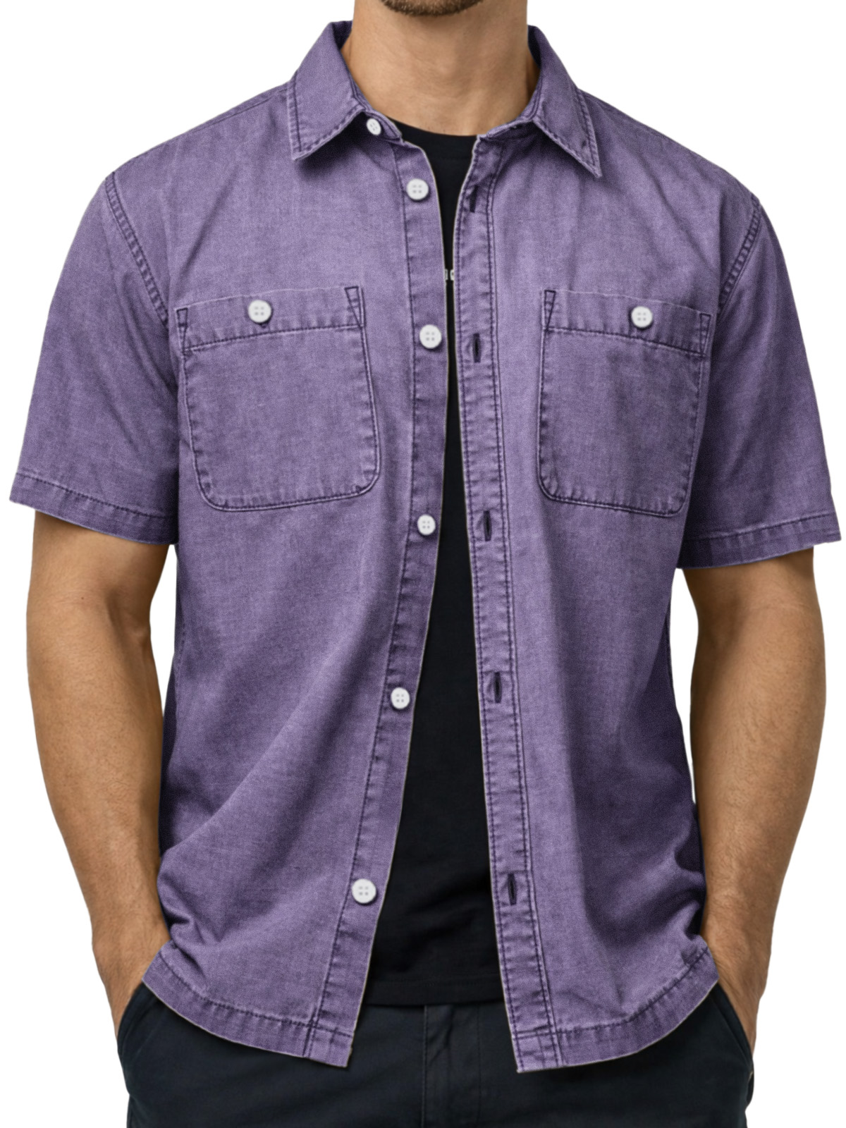 American retro double pocket solid color versatile lapel short-sleeved shirt