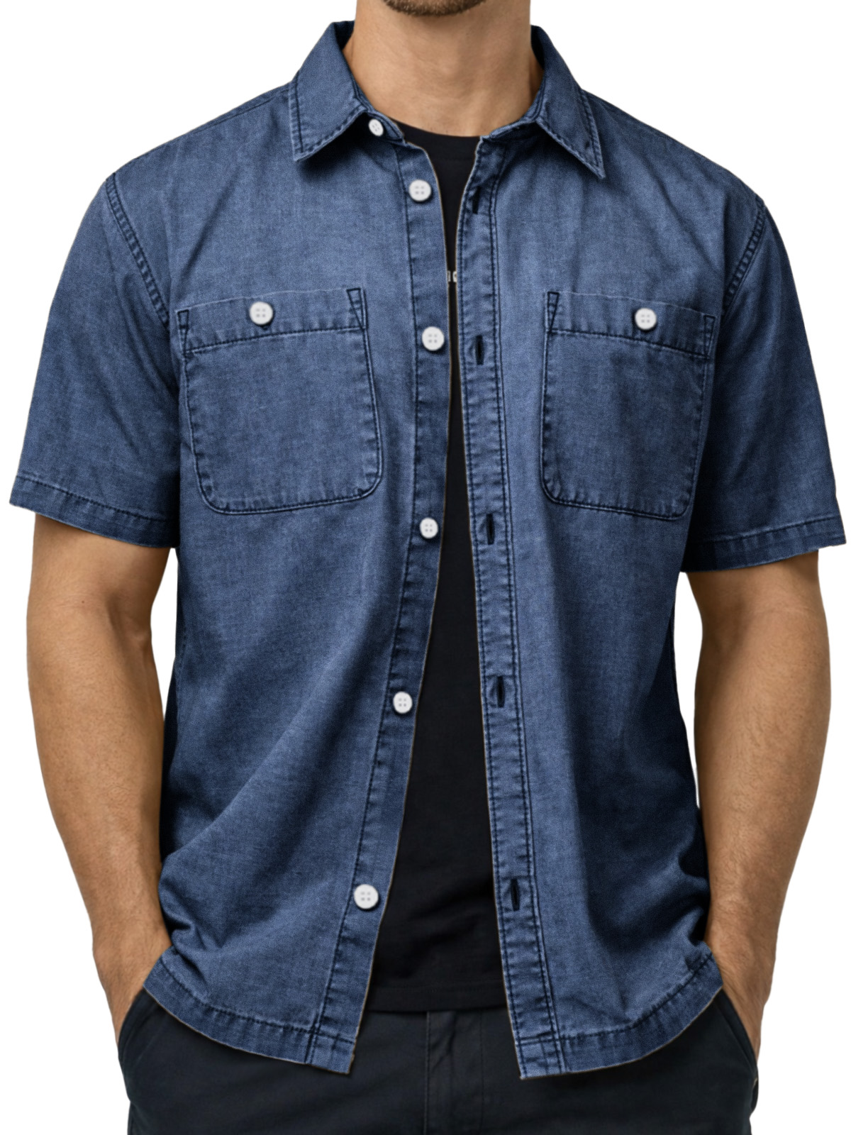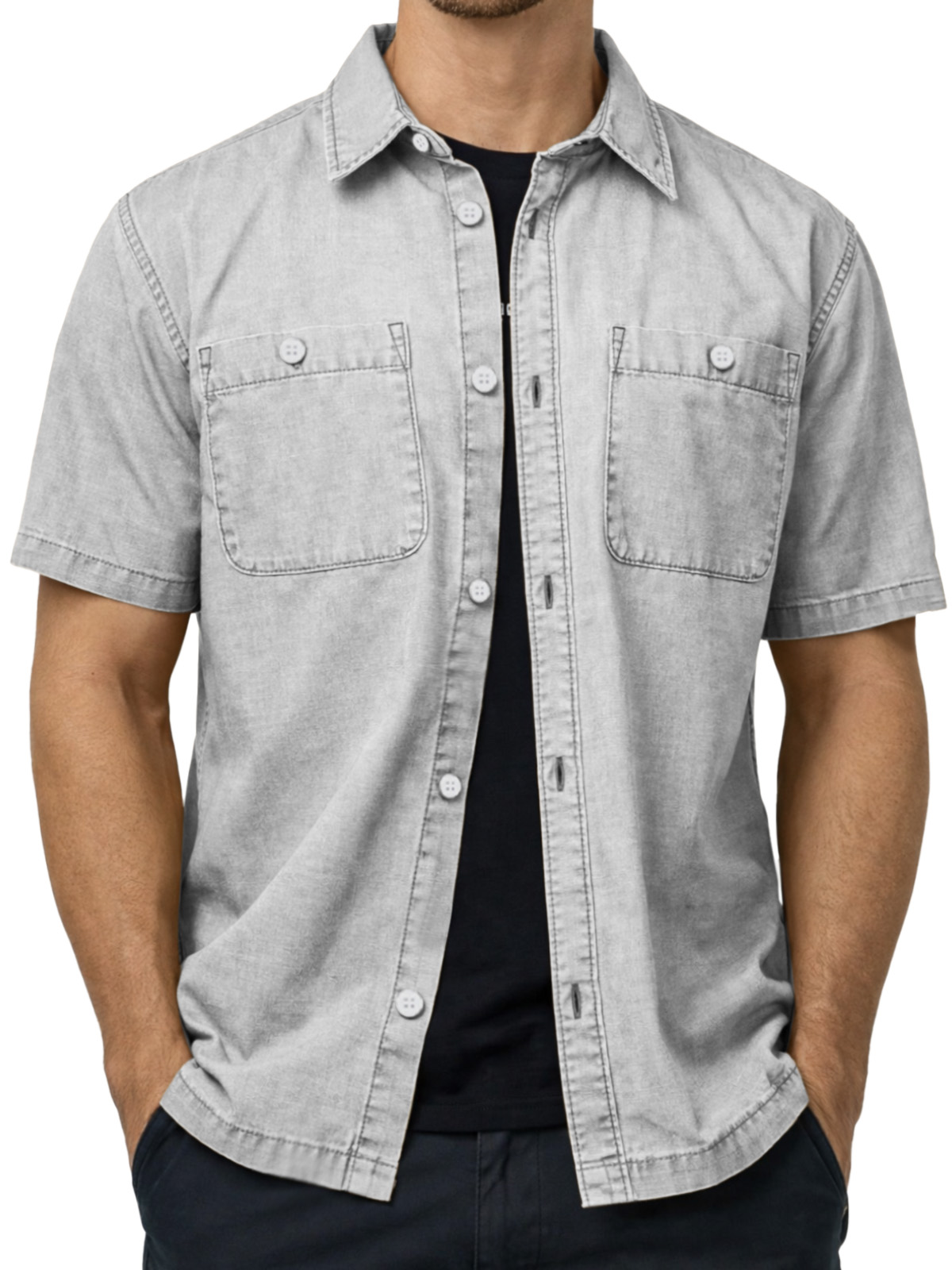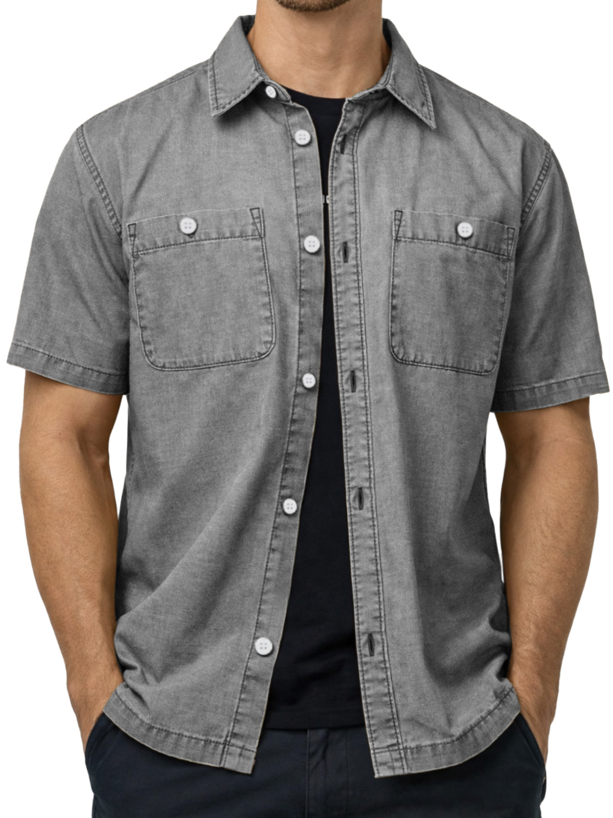 American retro double pocket solid color versatile lapel short-sleeved shirt