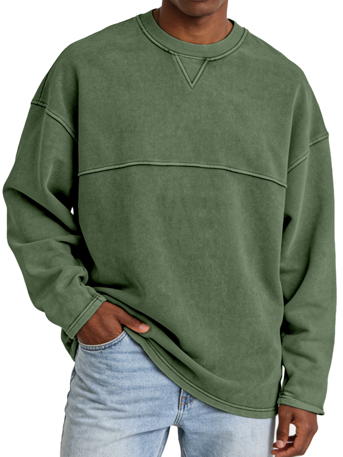 Basic Casual Inverted Triangle Panel Design Crew Neck Long-sleeved Sweatshirt