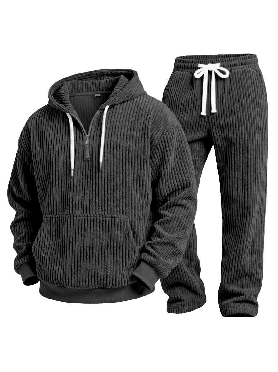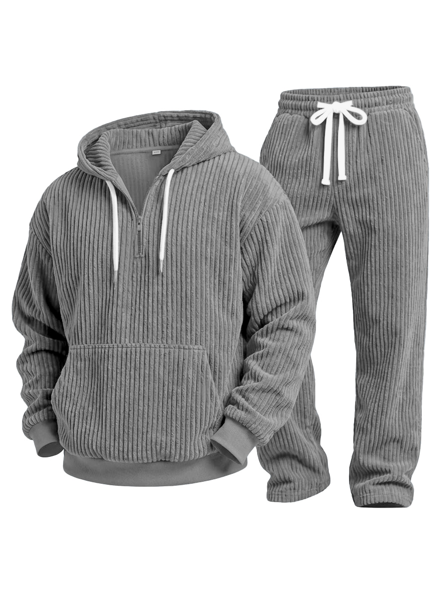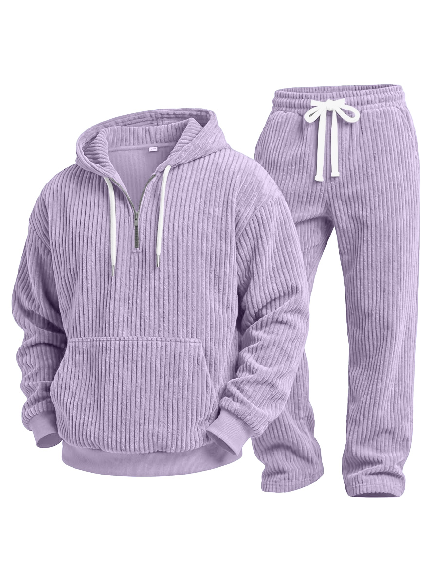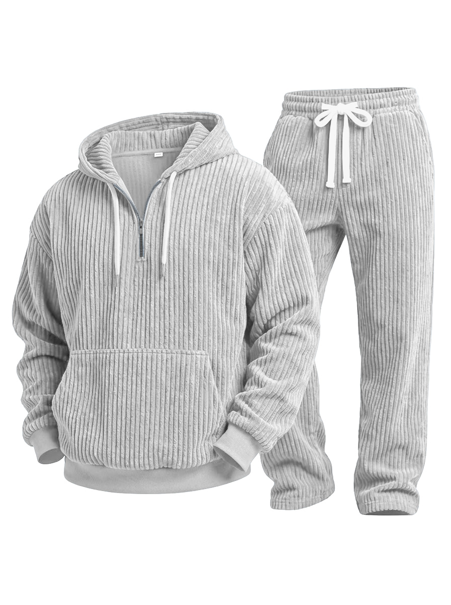 Casual Solid Color Corduroy Sweatshirt And Trousers Two-piece Set