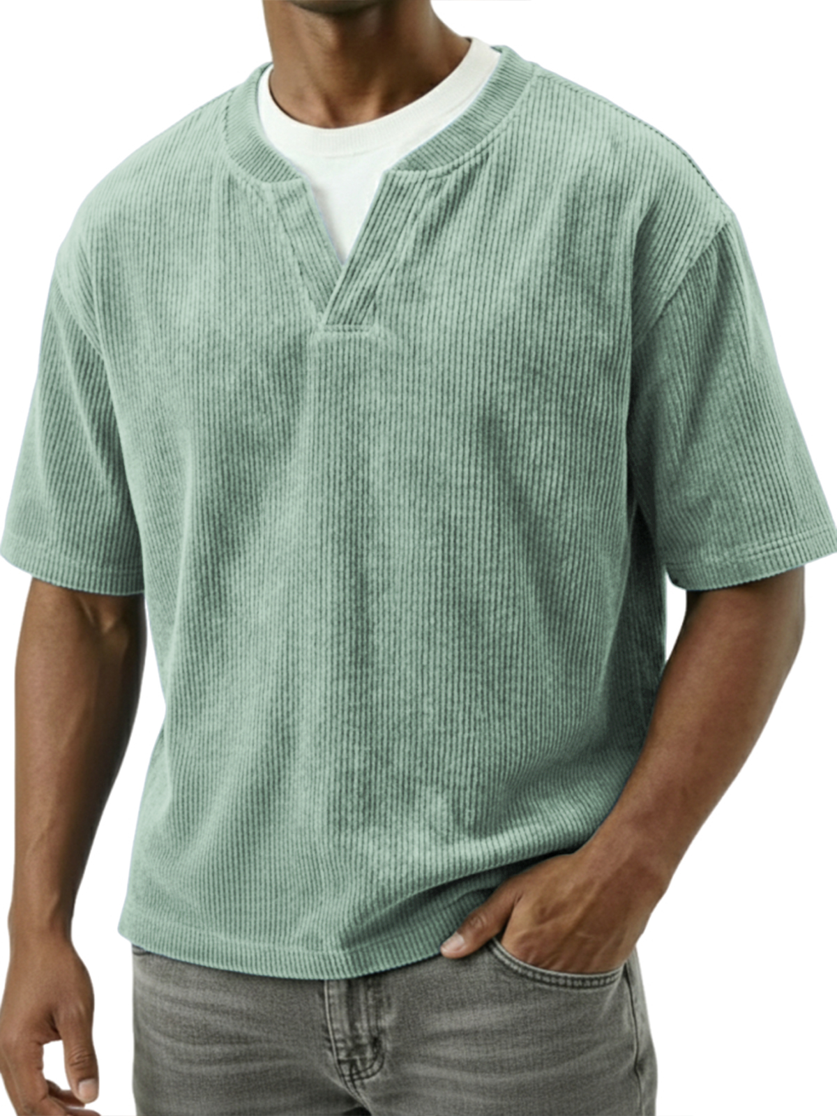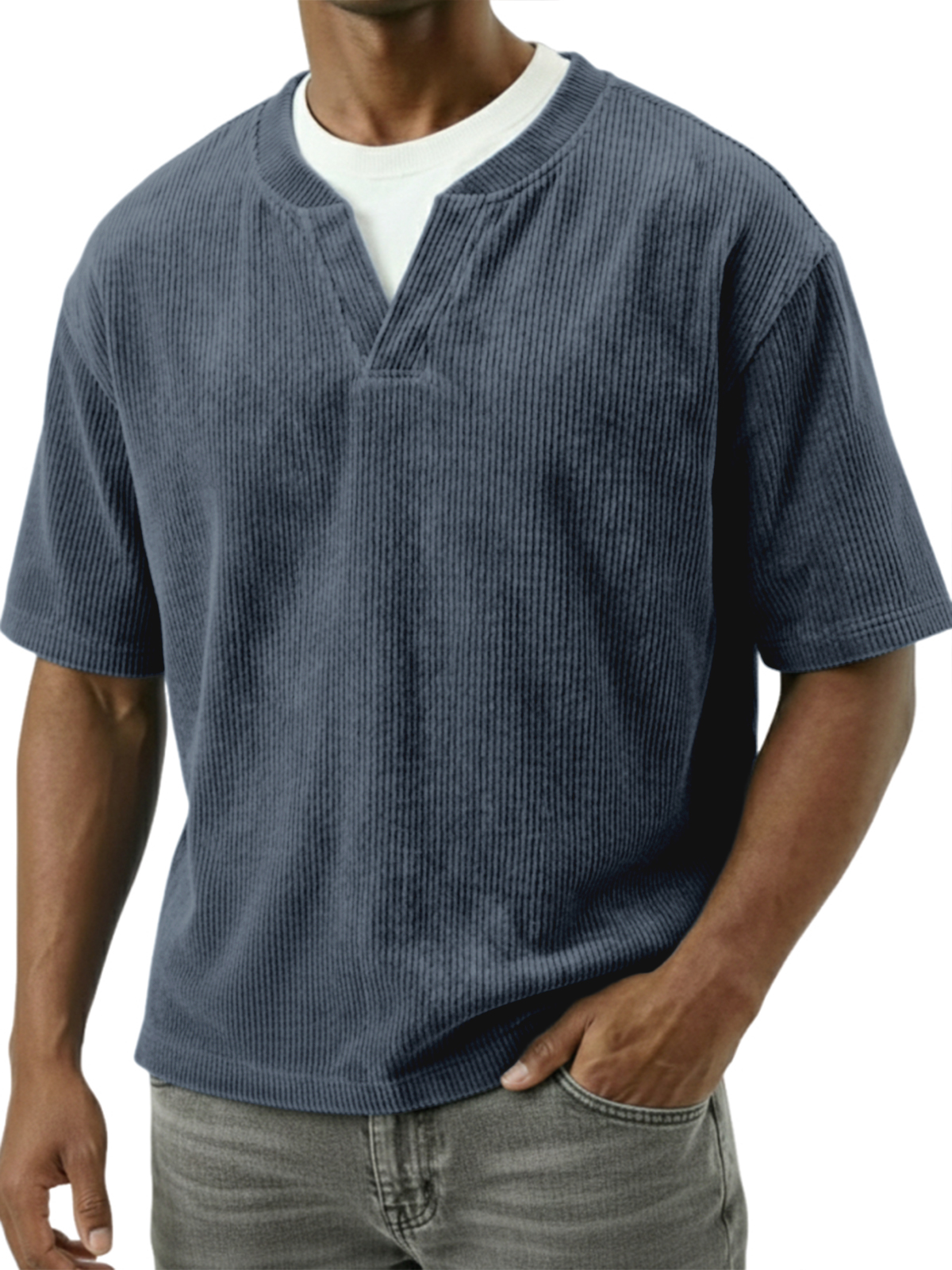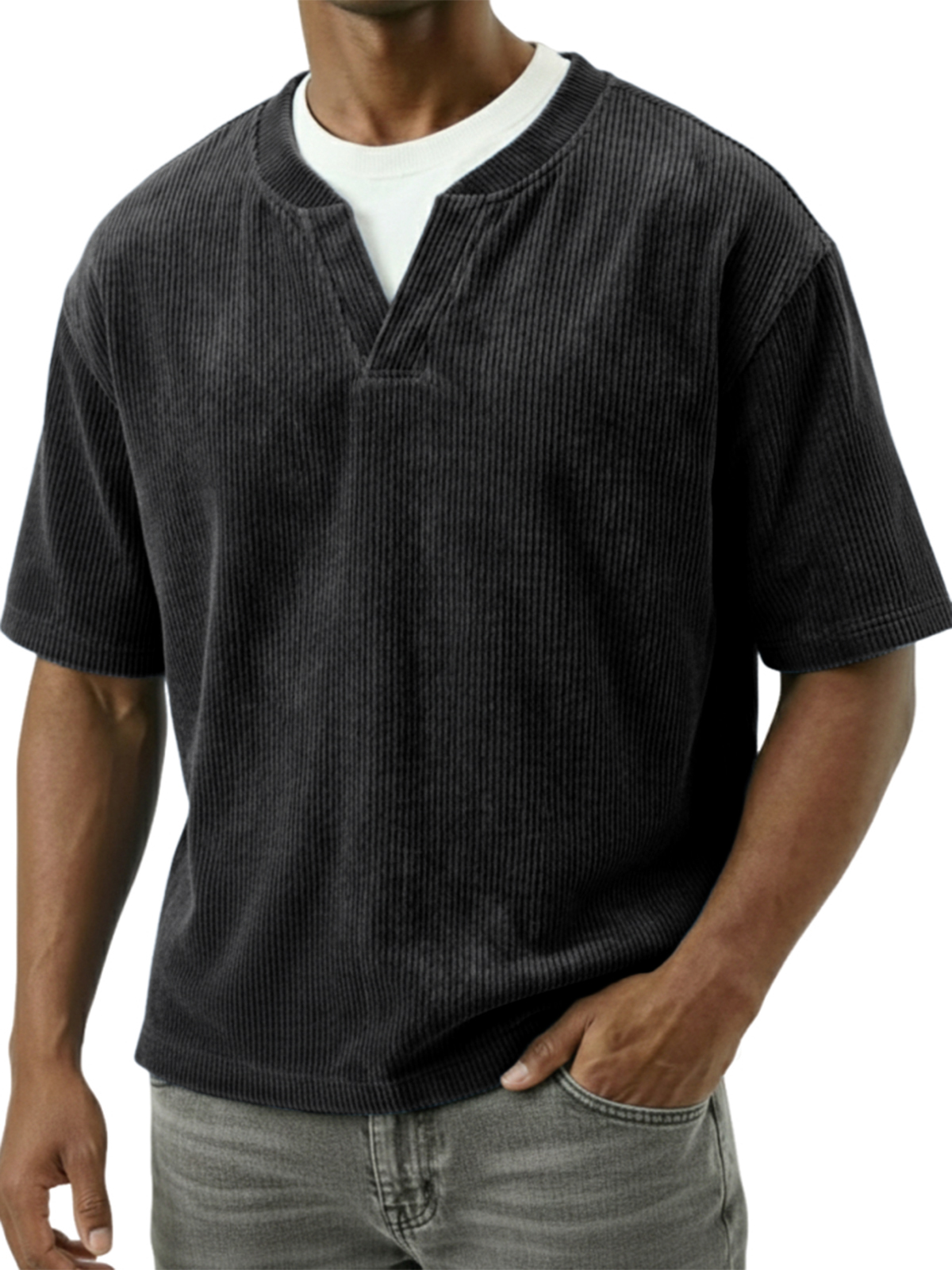 Corduroy Textured Faux Two-piece Top