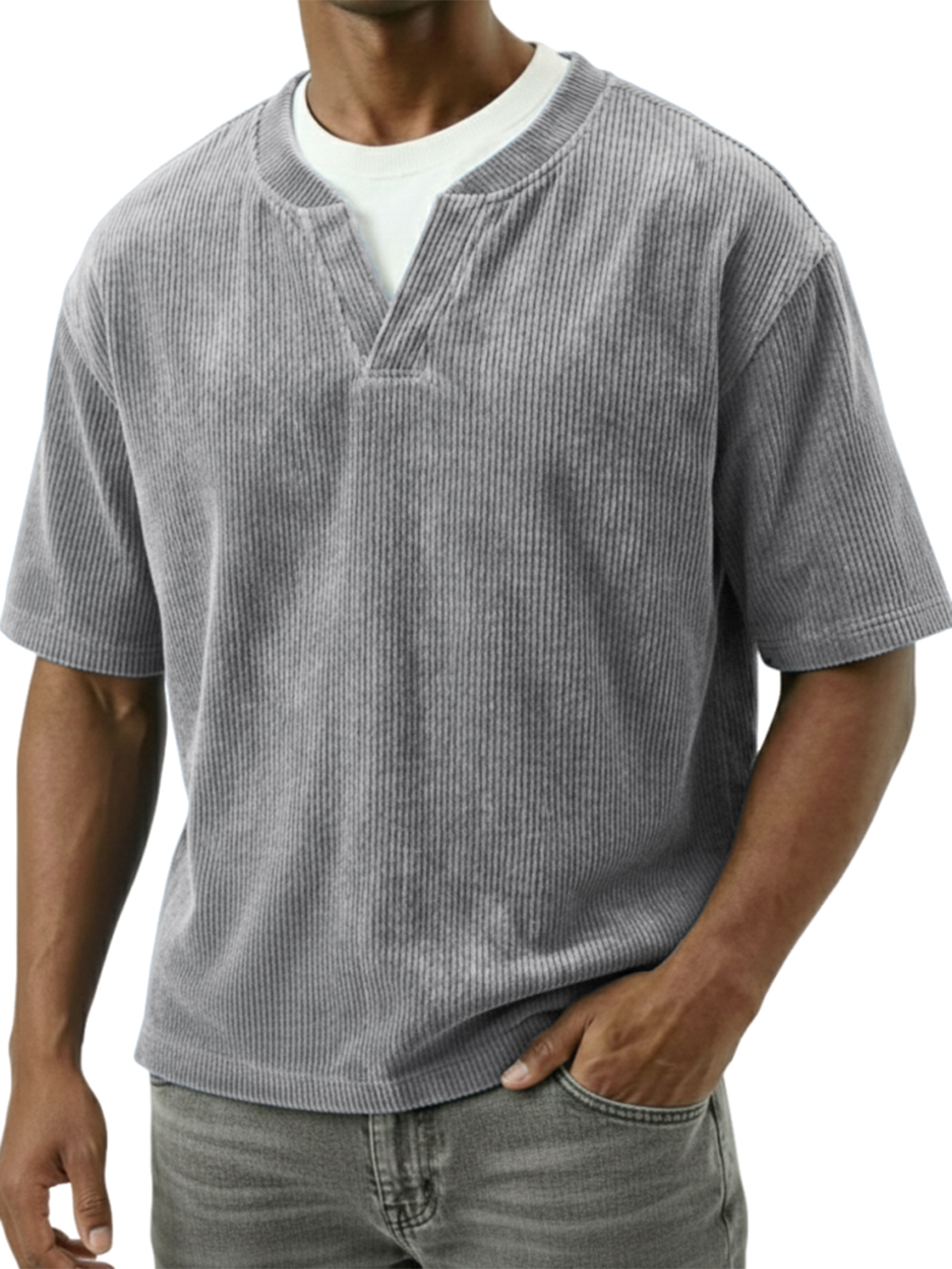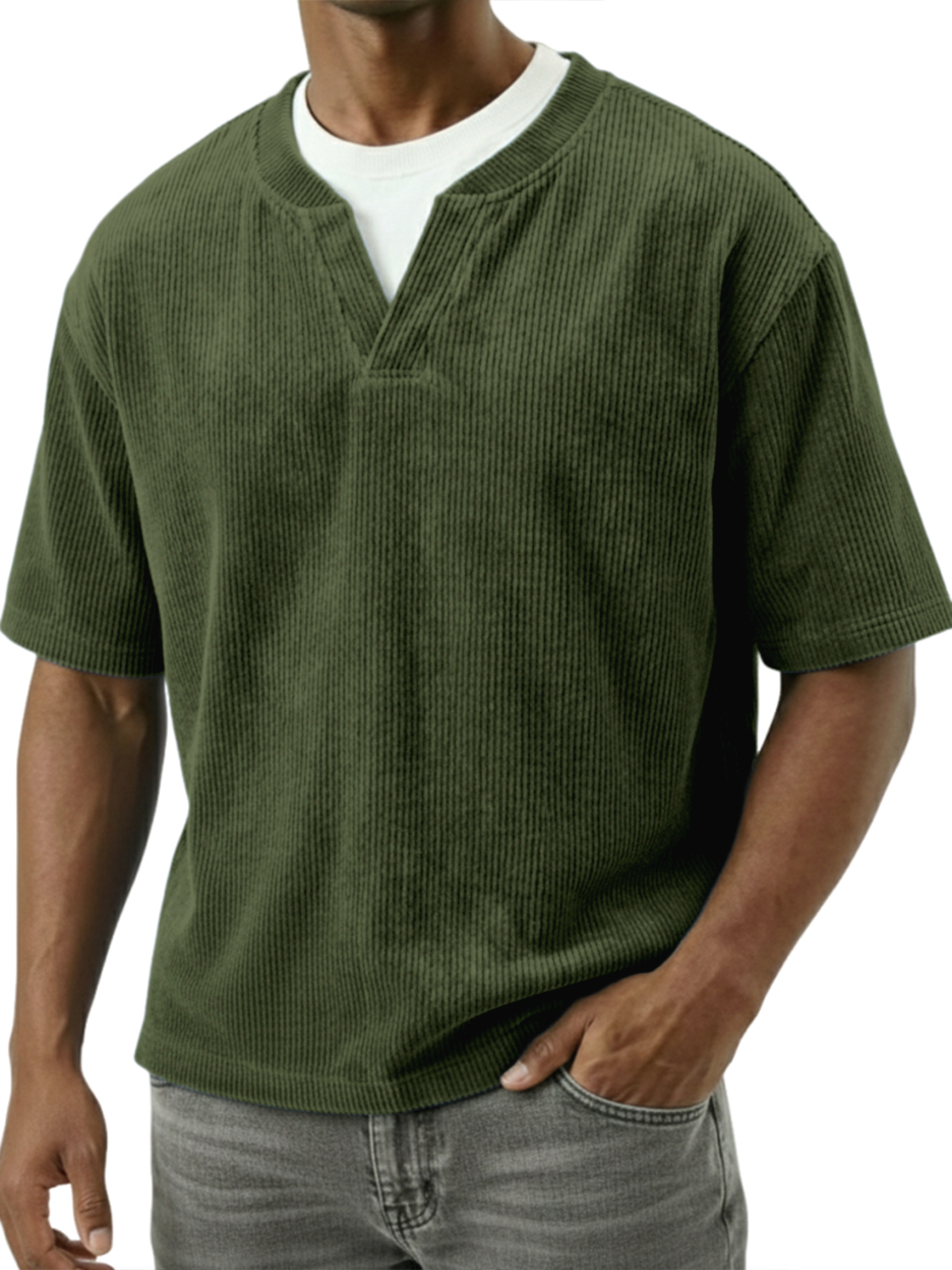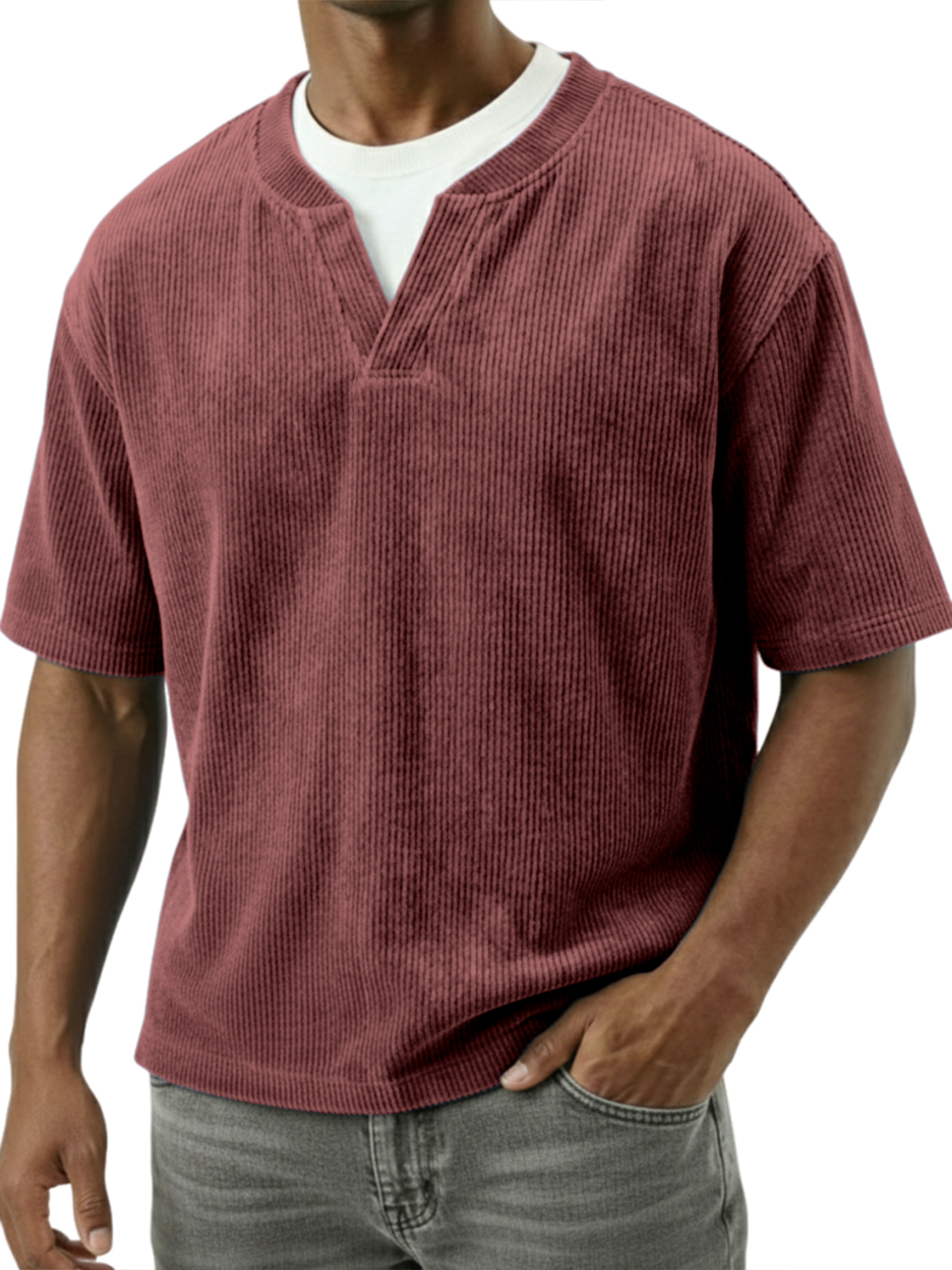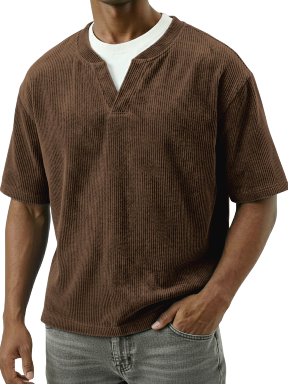 Corduroy Textured Faux Two-piece Top