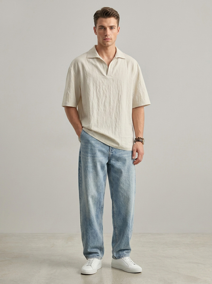 • Fit: Relaxed fit. Not too boxy and not too slim. Designed to be worn untucked. If you're between sizes we recommend sizing up