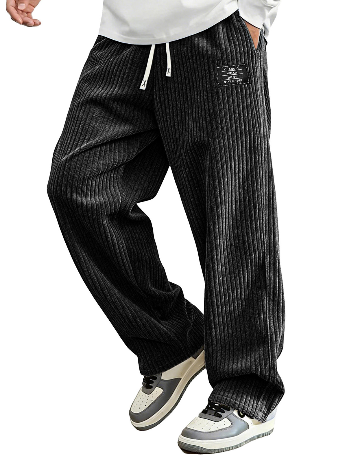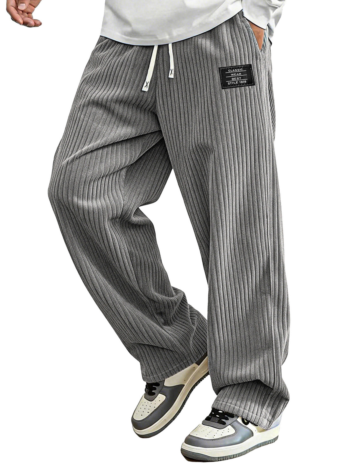 Fashionable Casual Loose Pit Strip Fabric Pocket Tether Pants