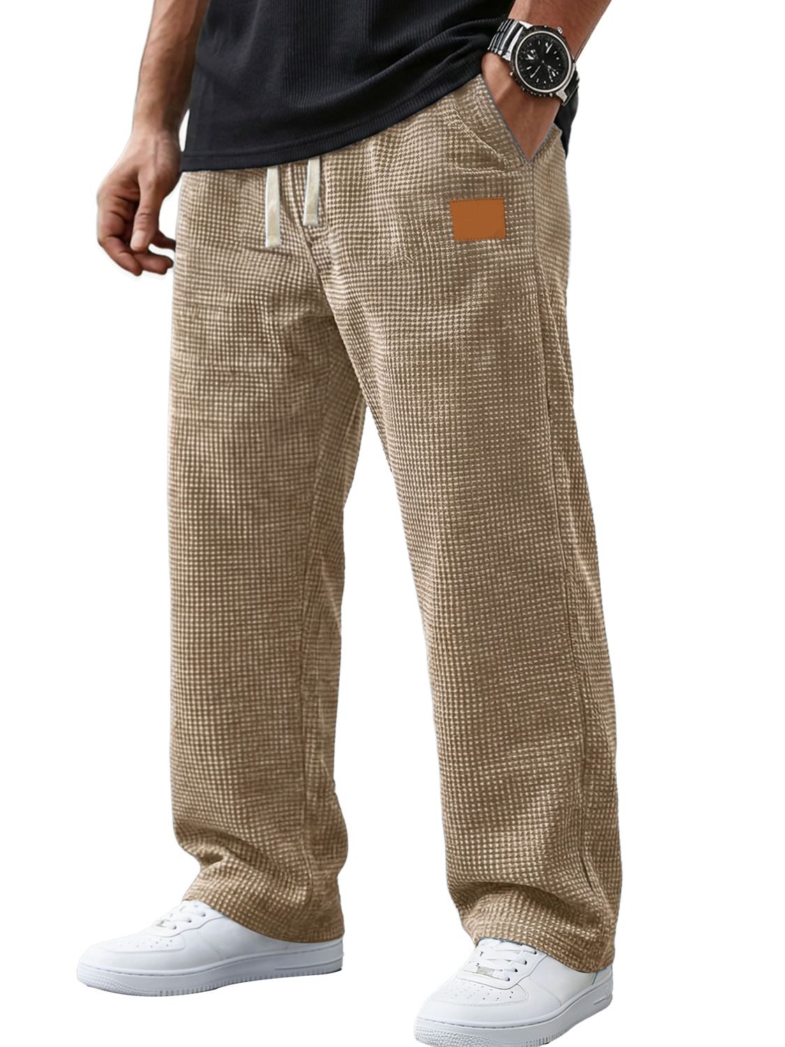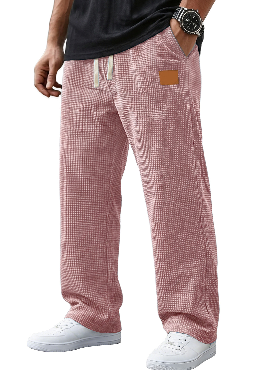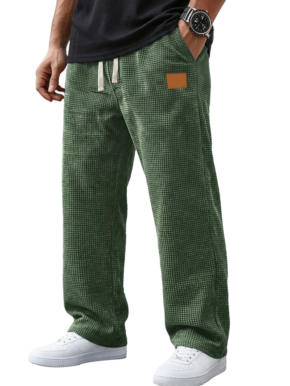 Men's Vintage Corduroy Waffle-weave Embroidered Leather Label Casual Trousers