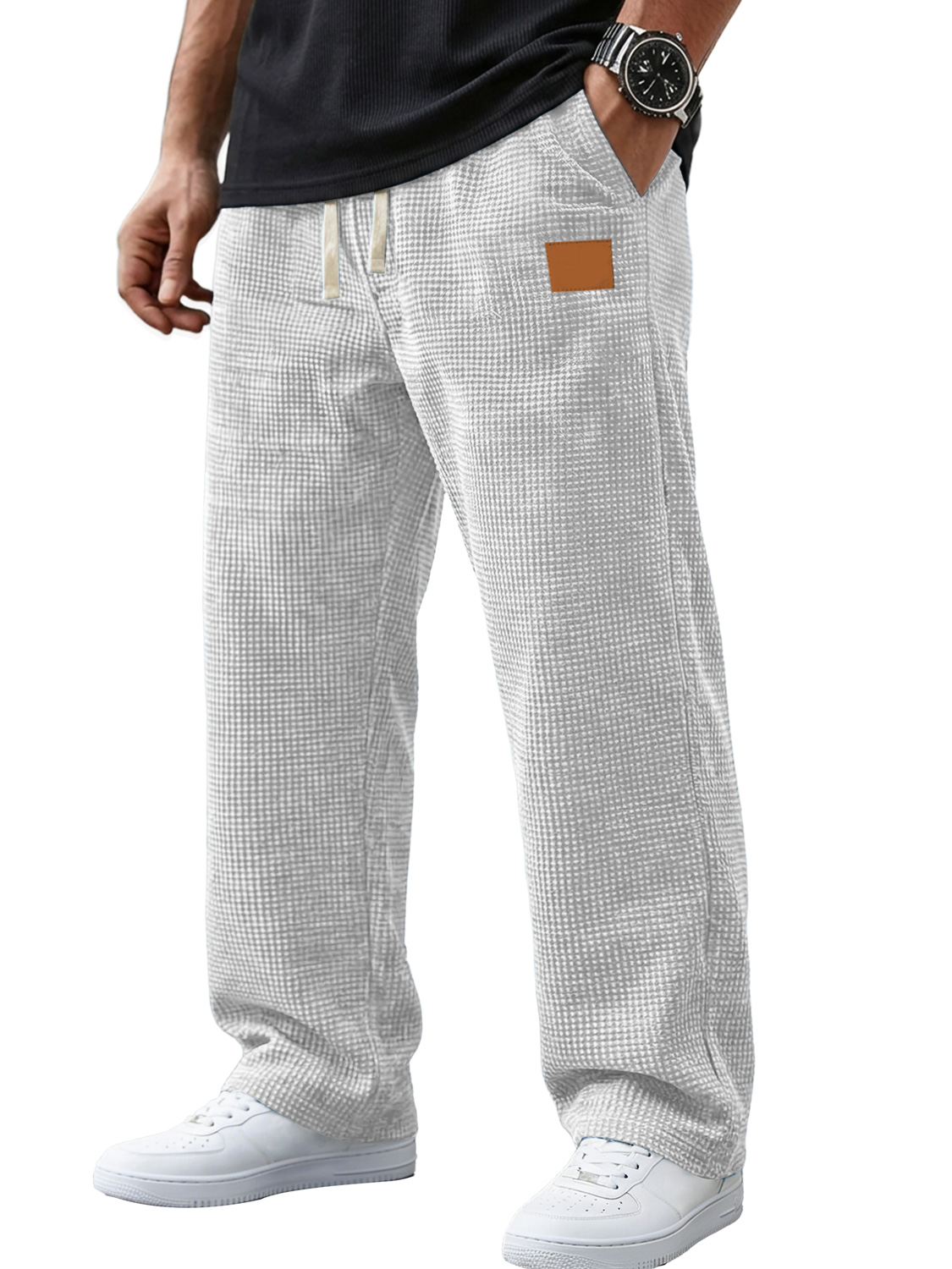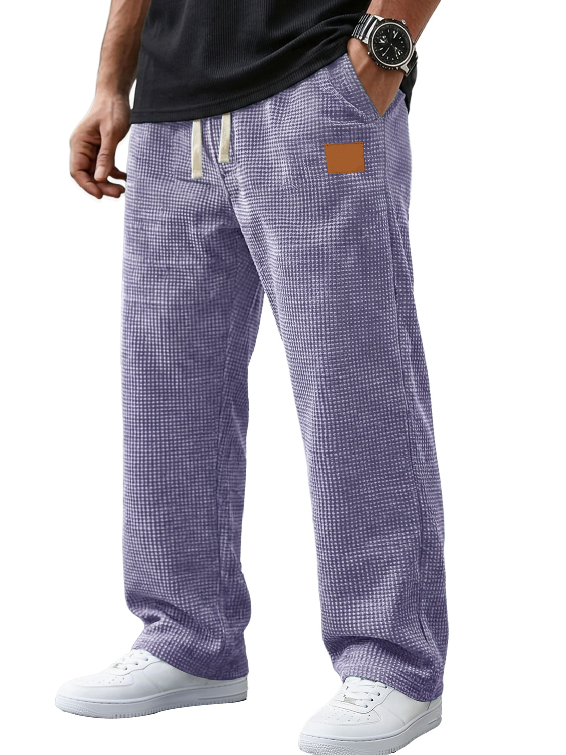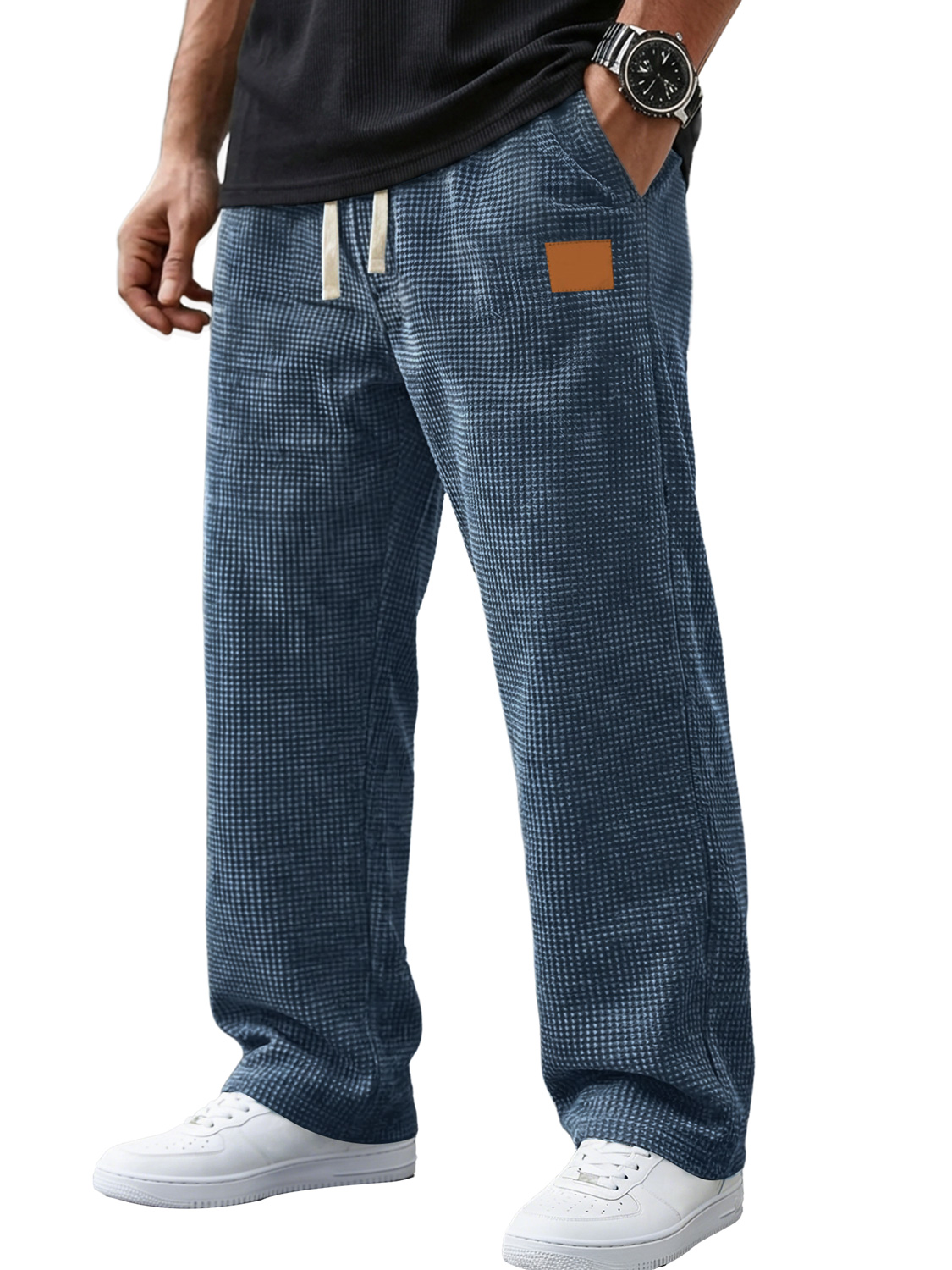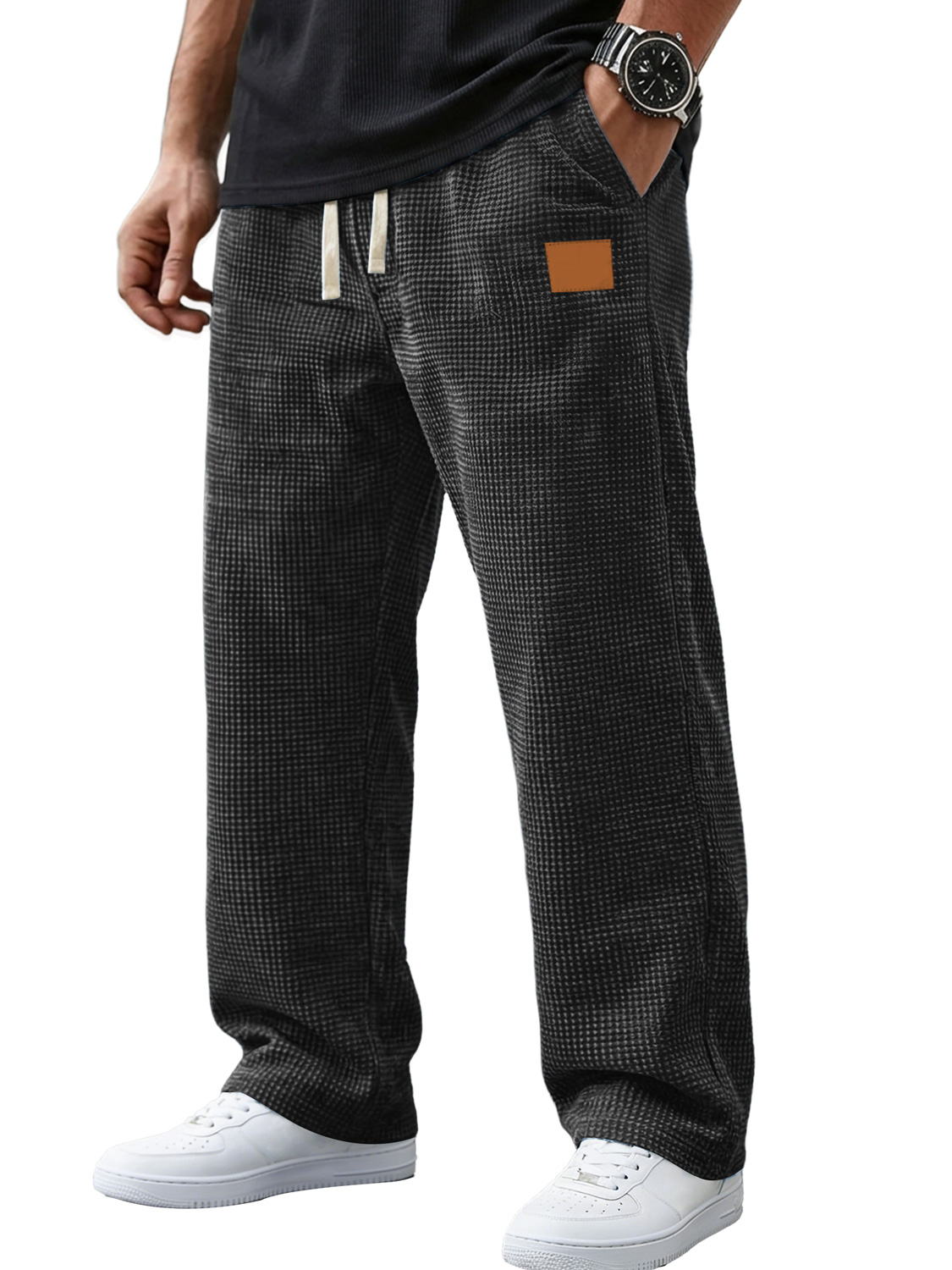 Men's Vintage Corduroy Waffle-weave Embroidered Leather Label Casual Trousers
