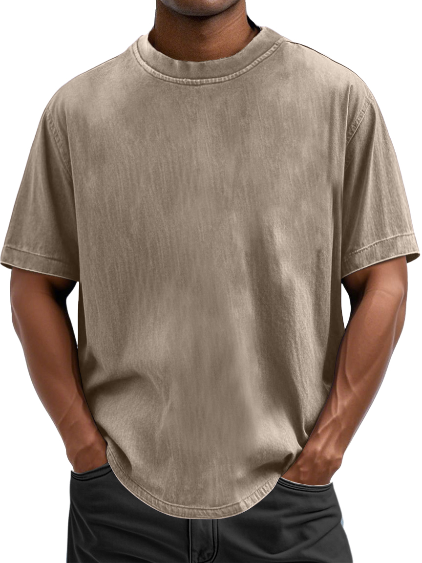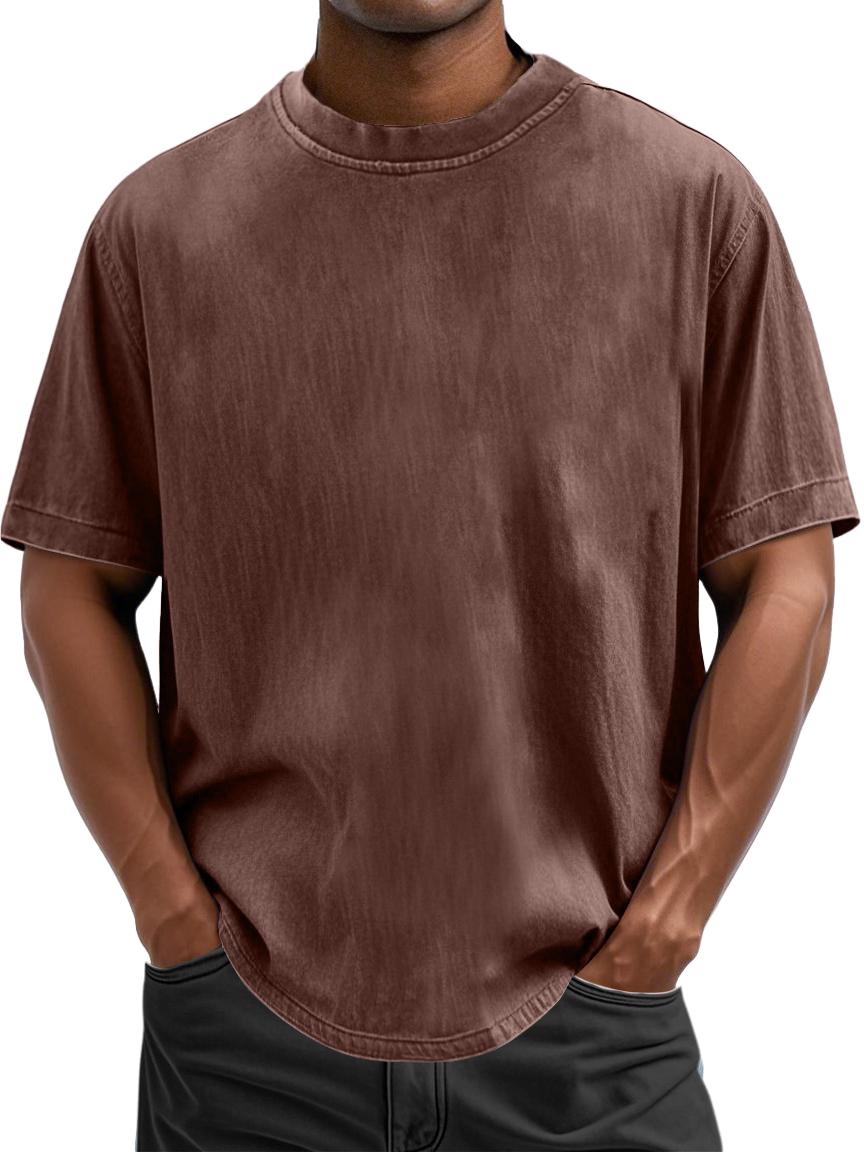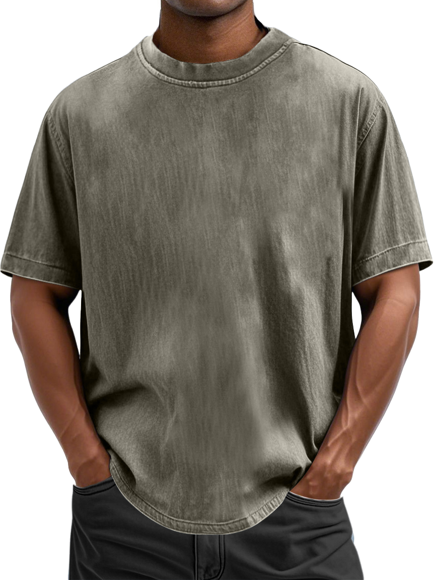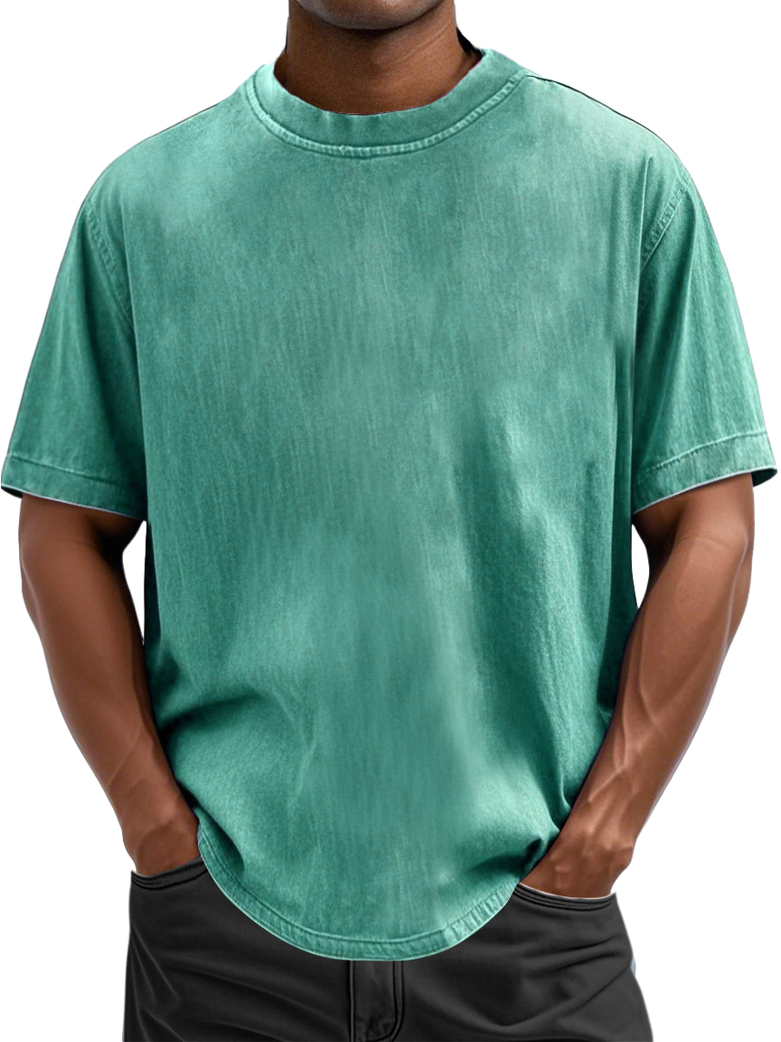 Men's 100% Cotton Casual Basic Versatile Washed Distressed Retro Short-sleeved T-shirt