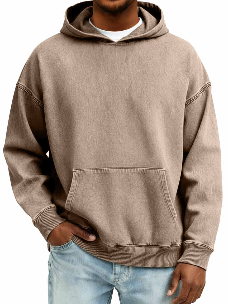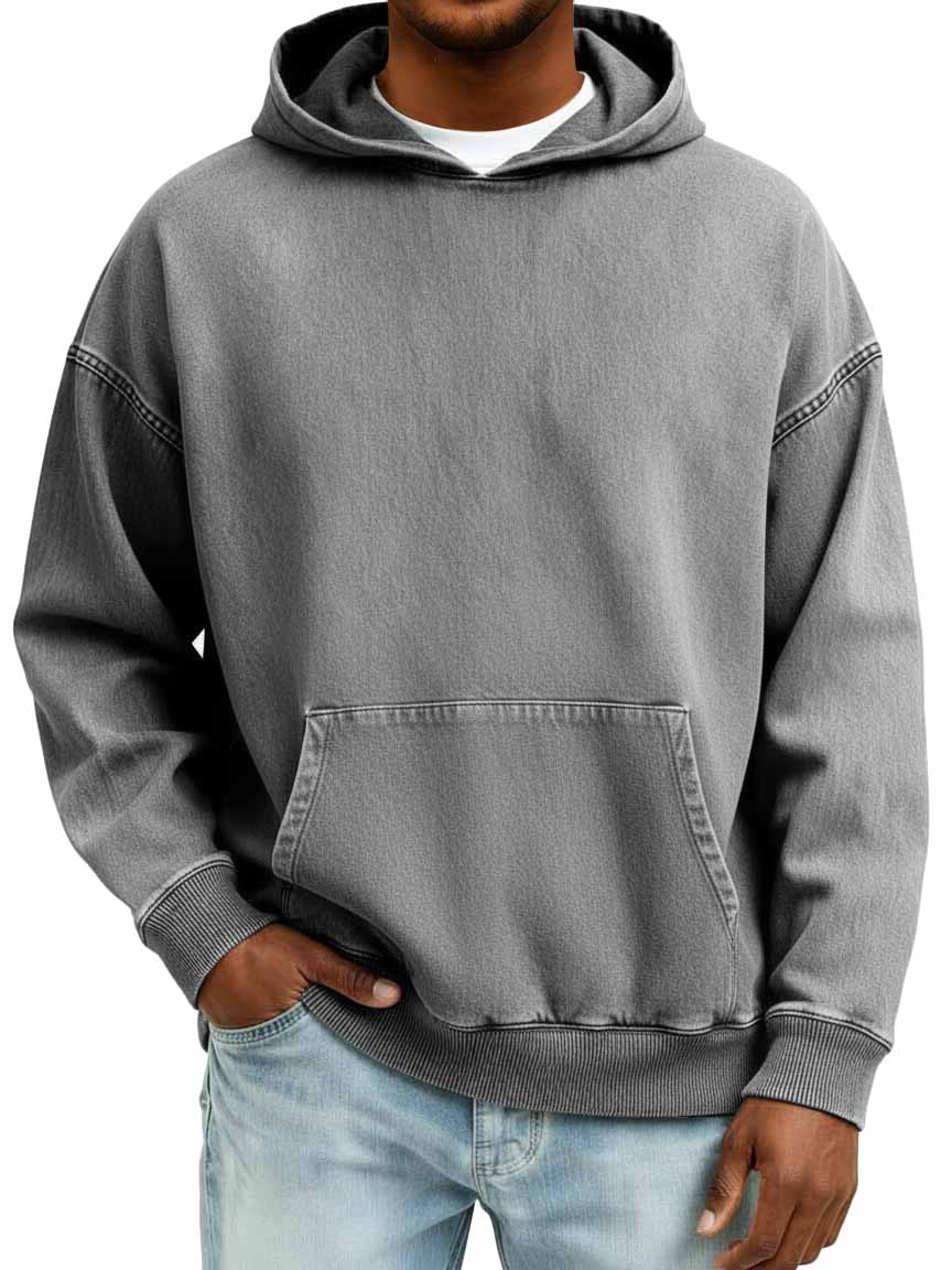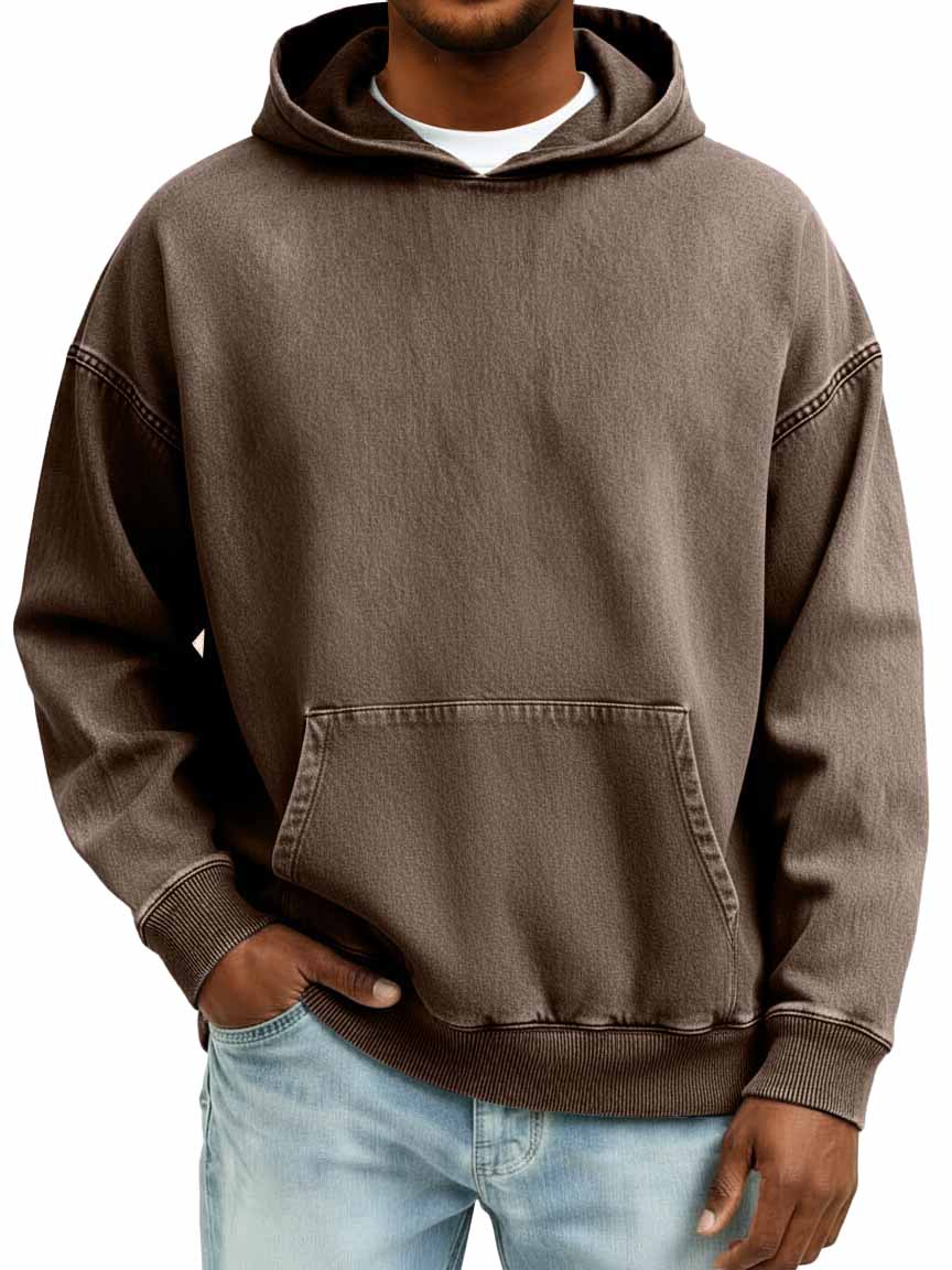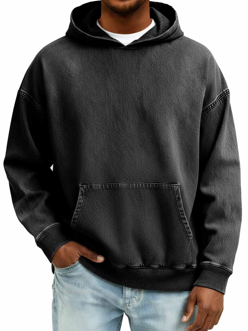 Men's 100% Cotton Retro Casual Washed Distressed Hooded Sweatshirt