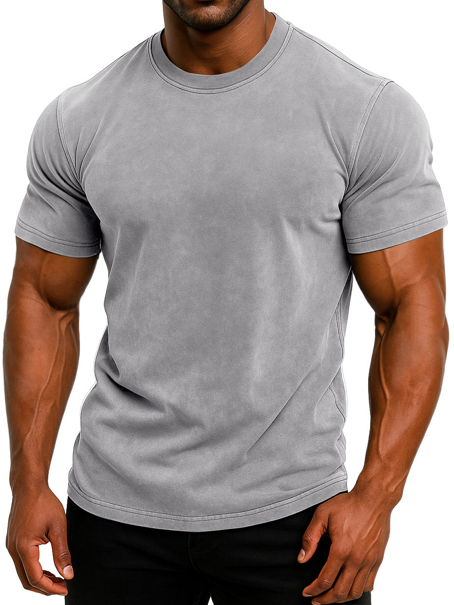 Men's 100% Cotton Retro Washed And Distressed Daily Slim Fit Short-sleeved T-shirt