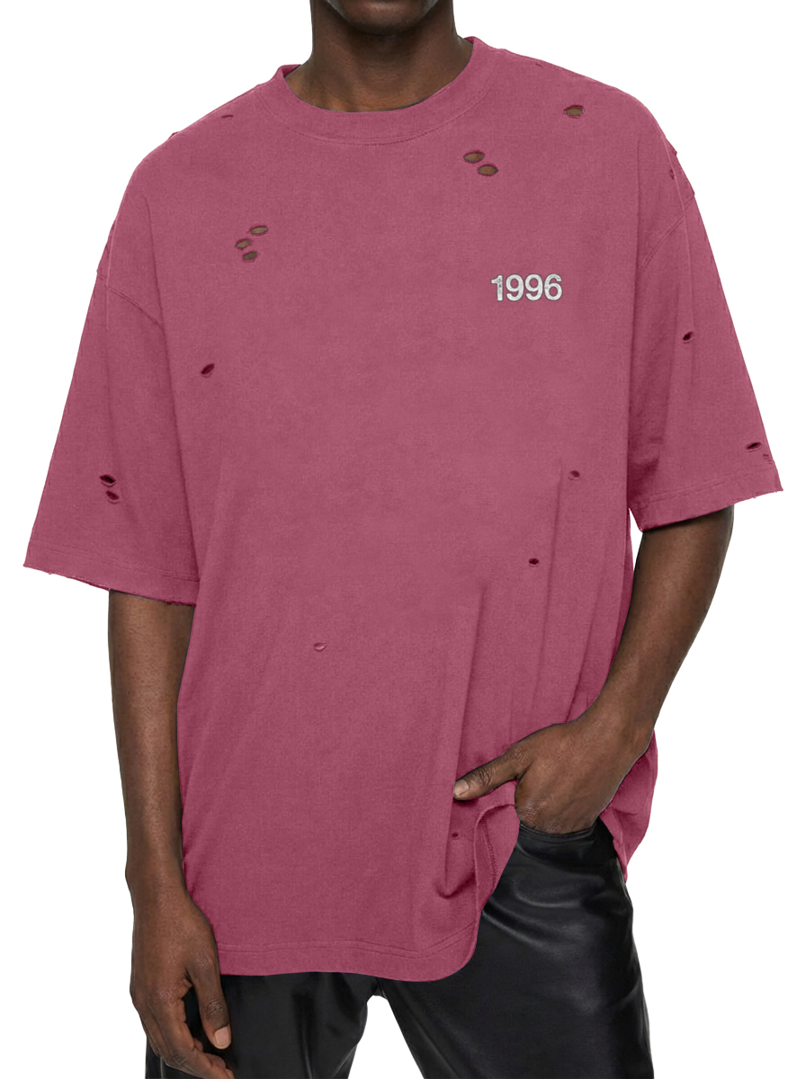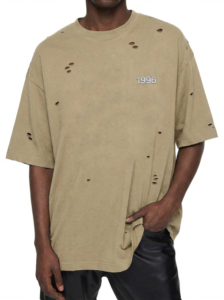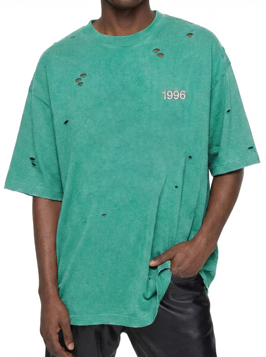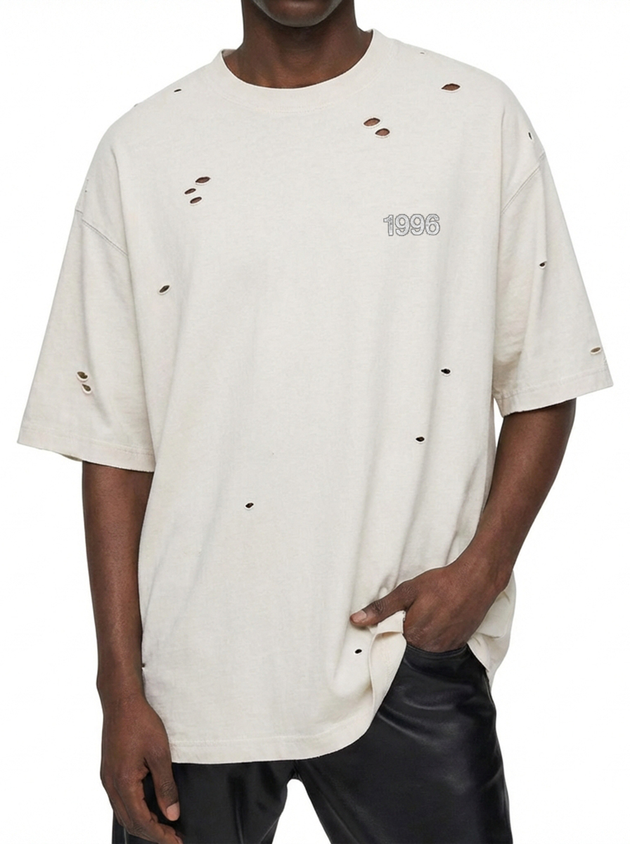 Men's 100% Vintage Distressed Ripped Punk Style Crew Neck Short-Sleeved T-shirt