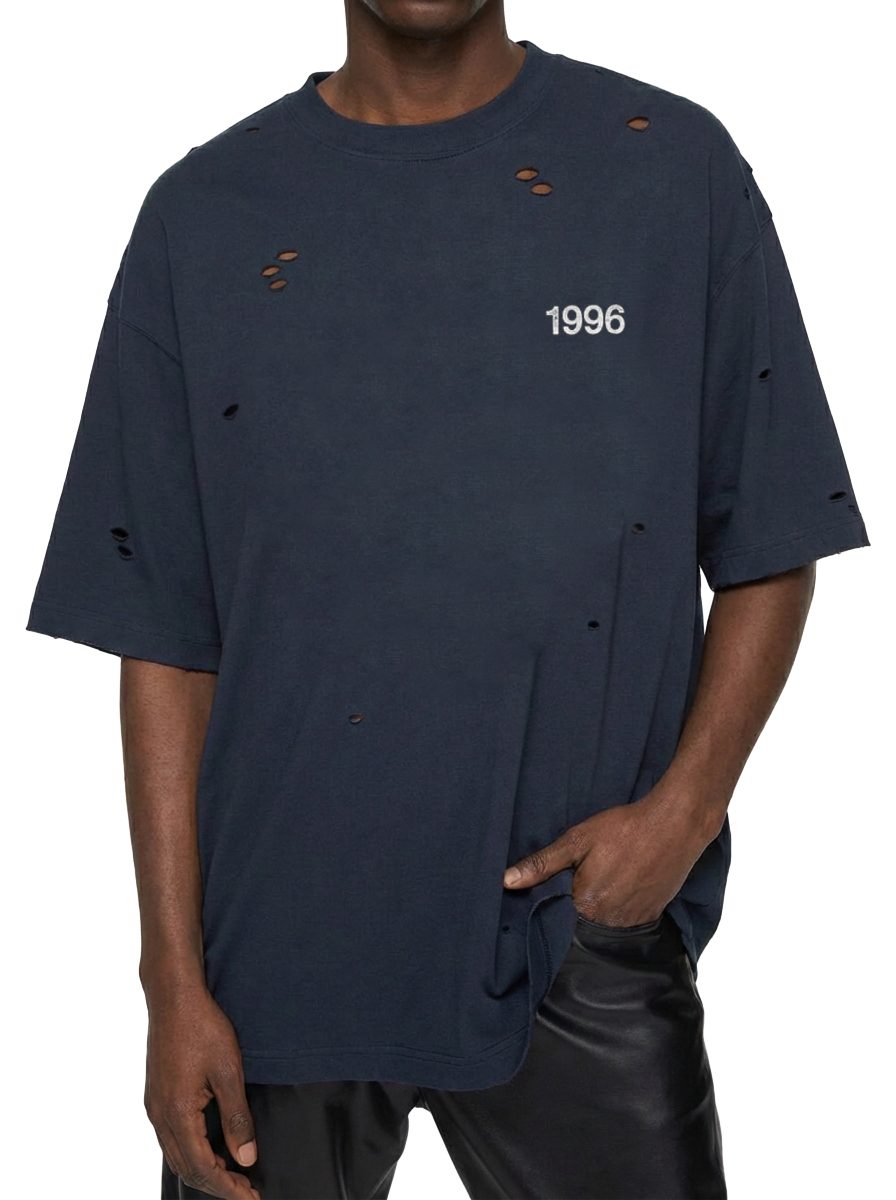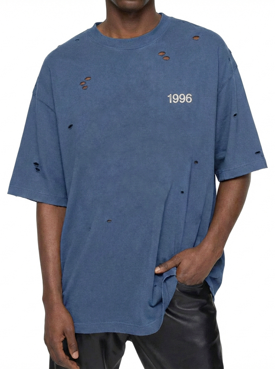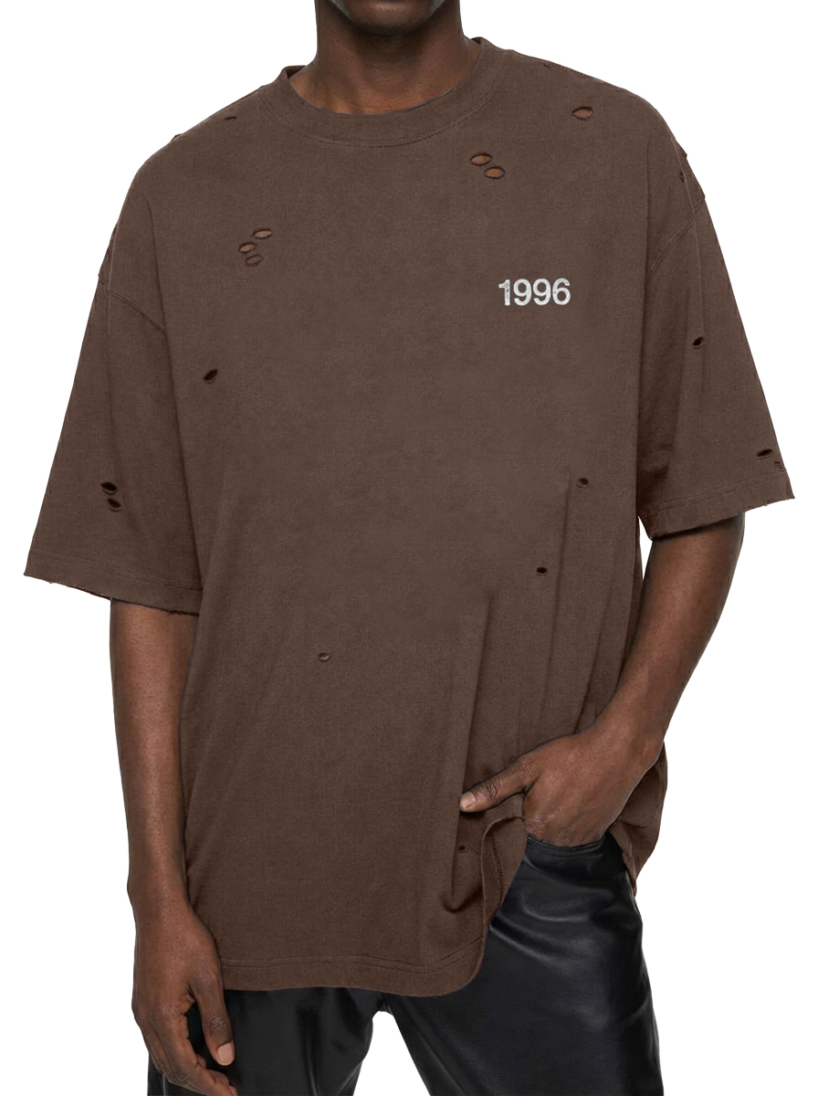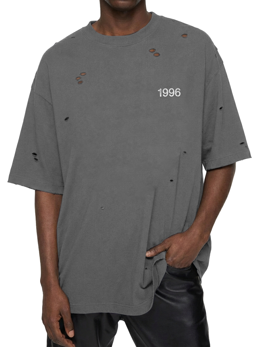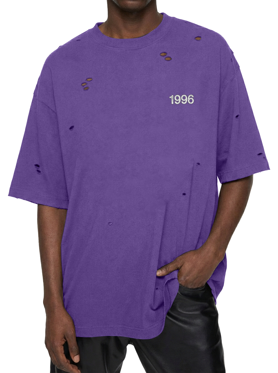 Men's 100% Vintage Distressed Ripped Punk Style Crew Neck Short-Sleeved T-shirt