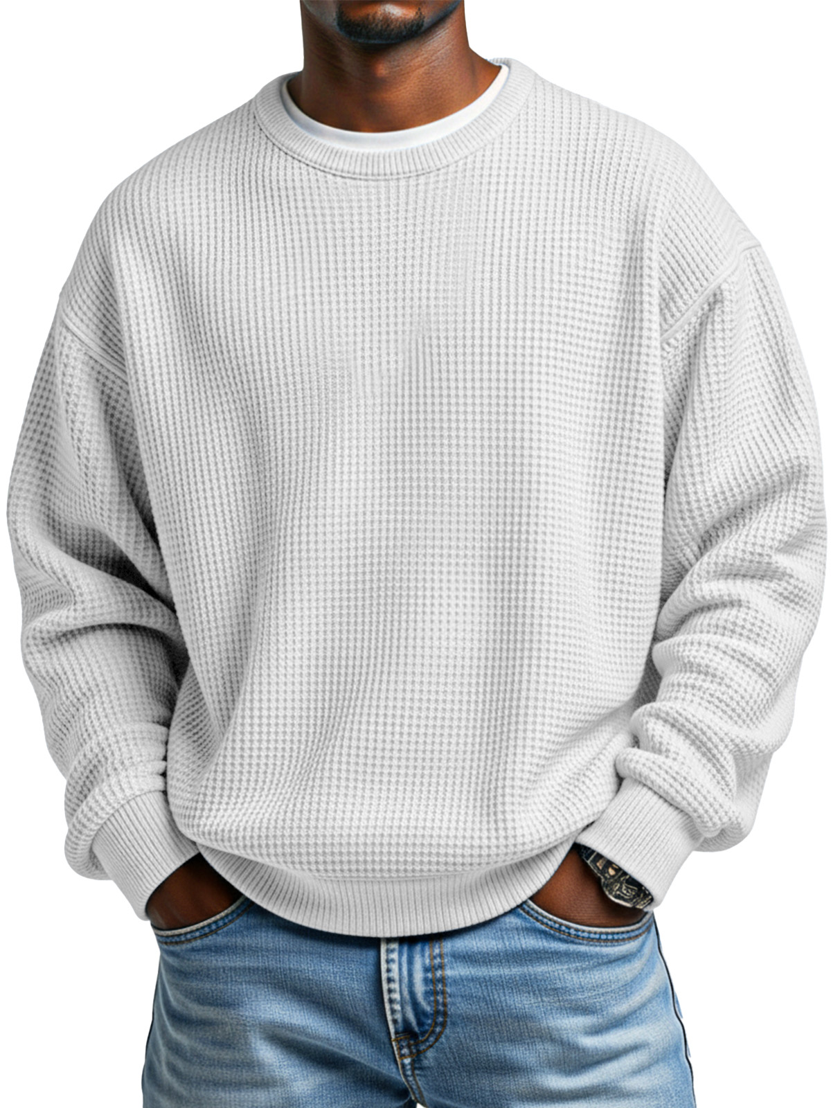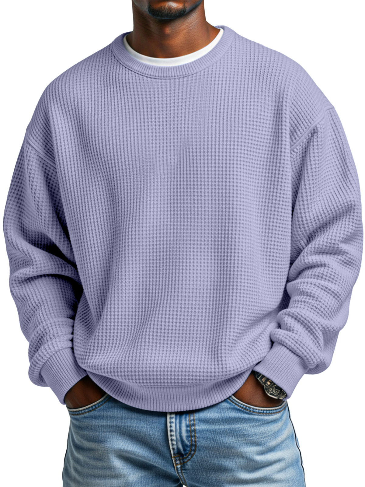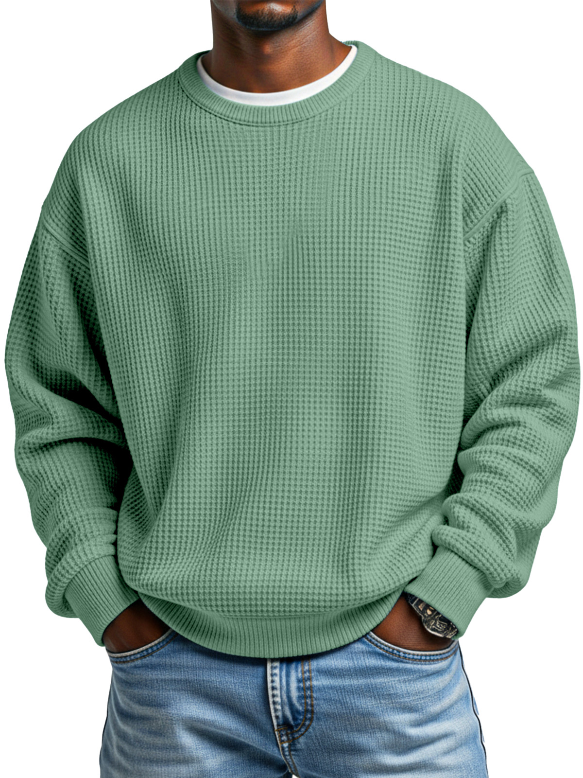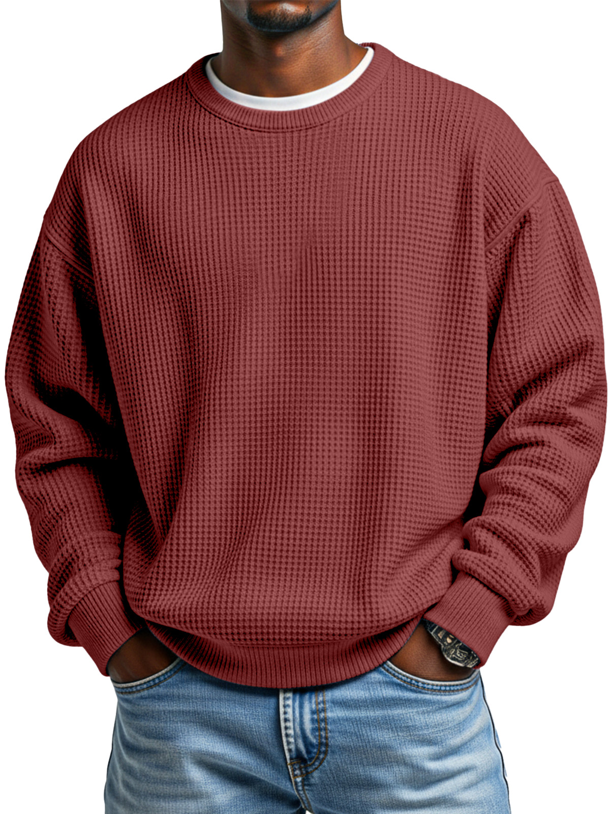 Men's Autumn Simple Waffle Neck Long Sleeve Sweater