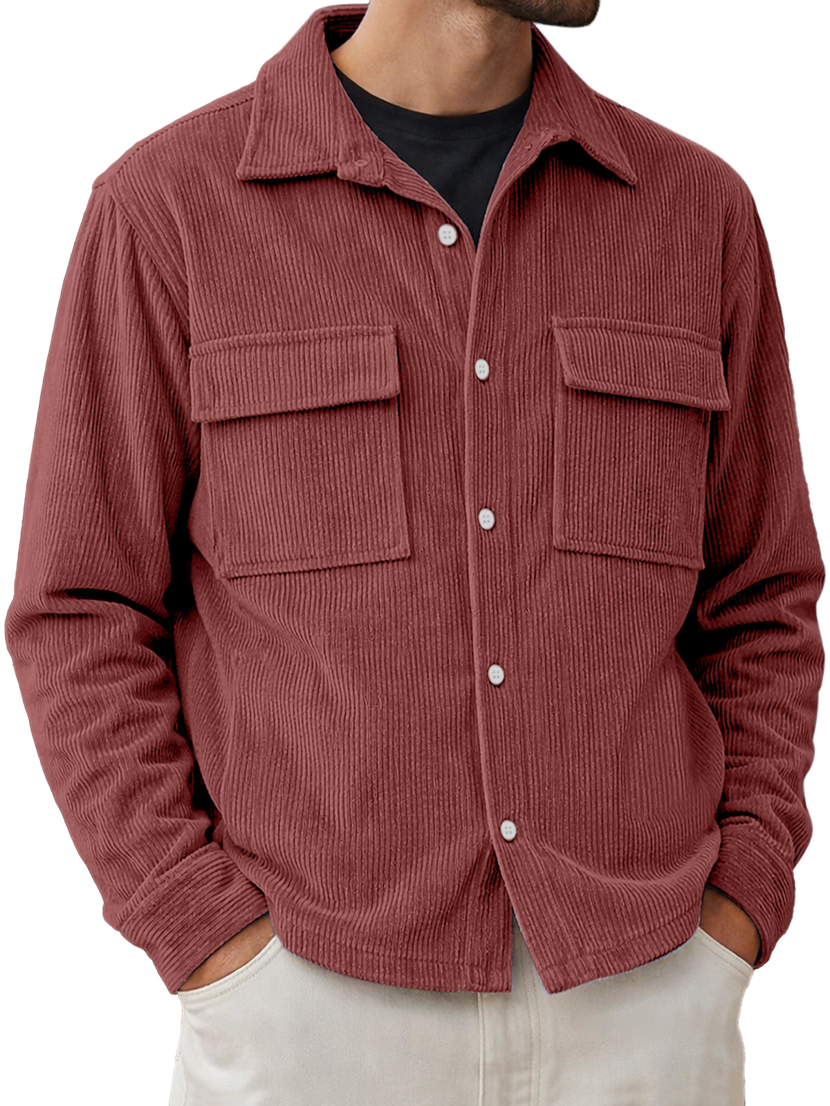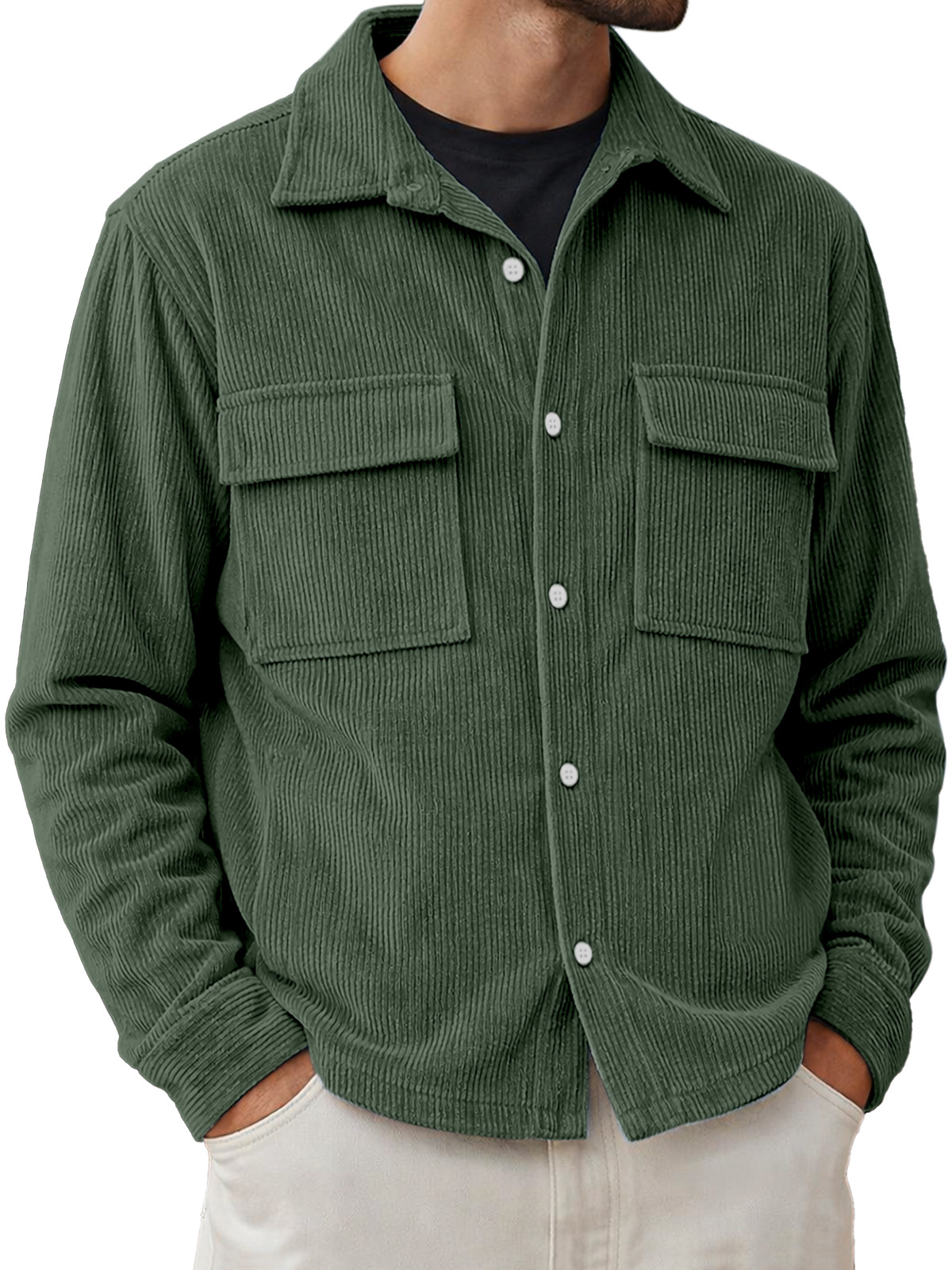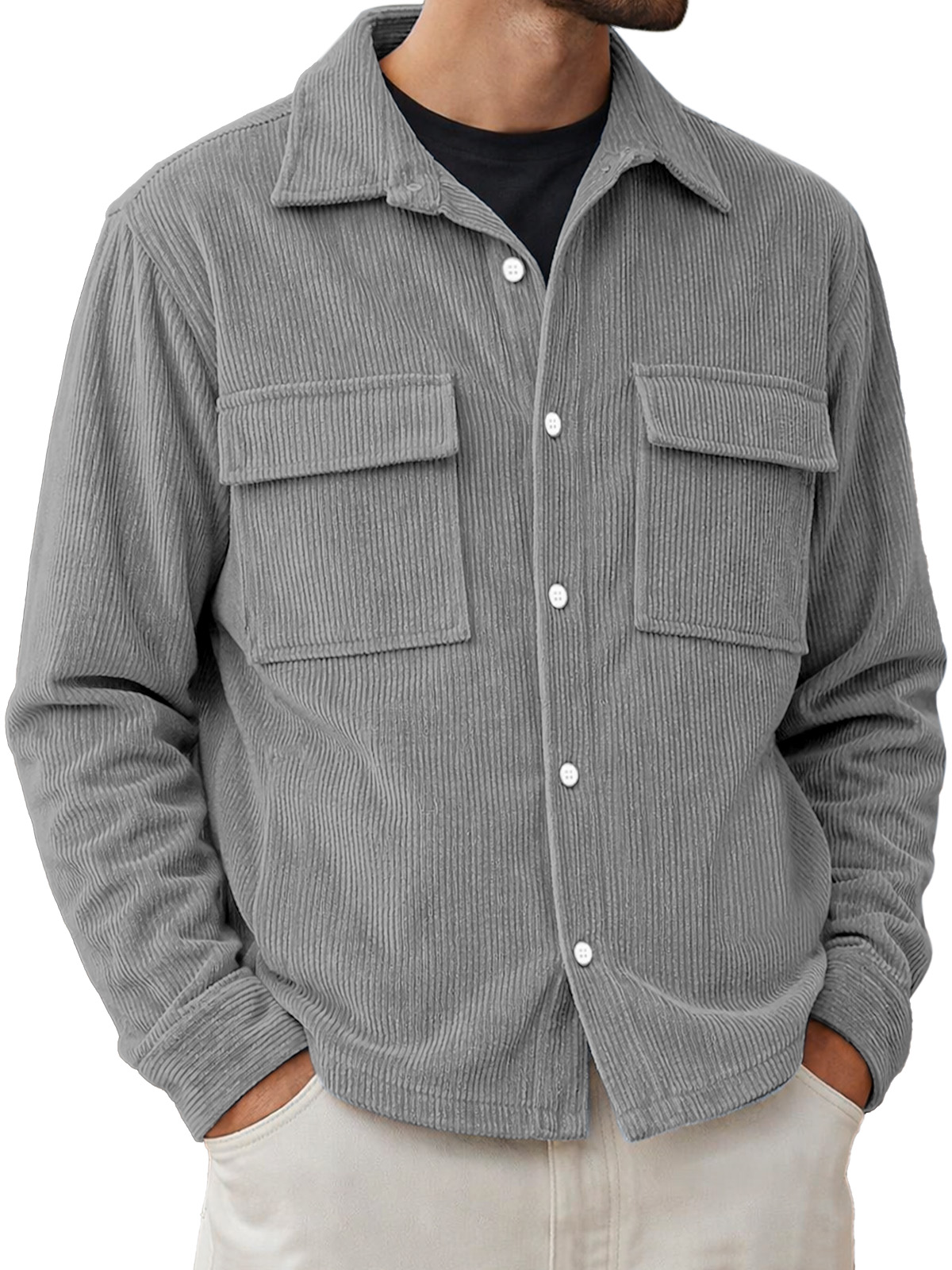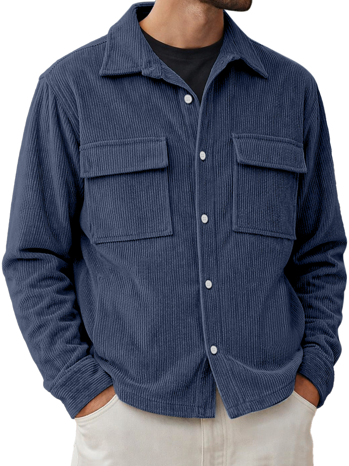 Men's Basic Double-pocket Corduroy Button-down Long-sleeved Shirt