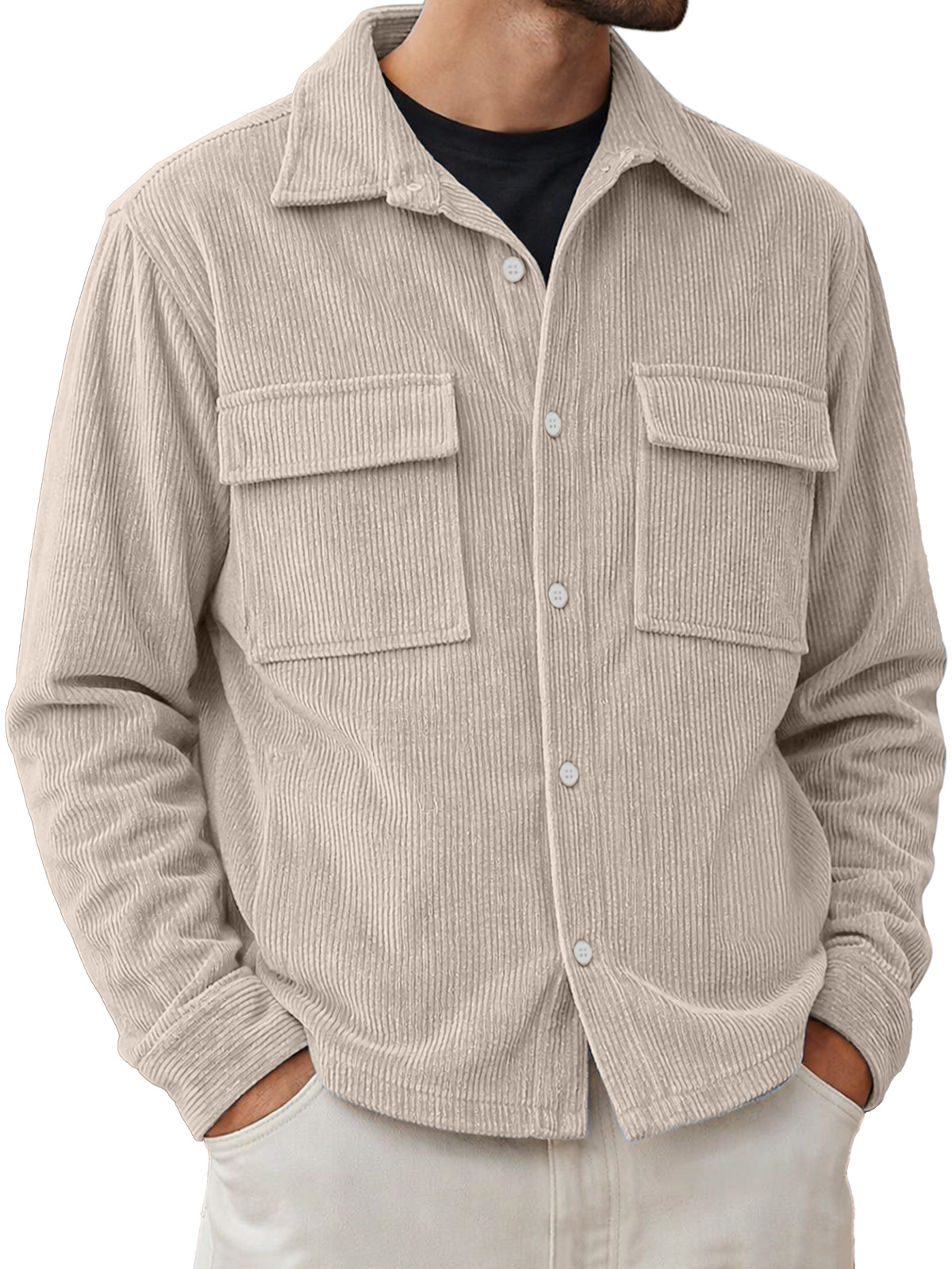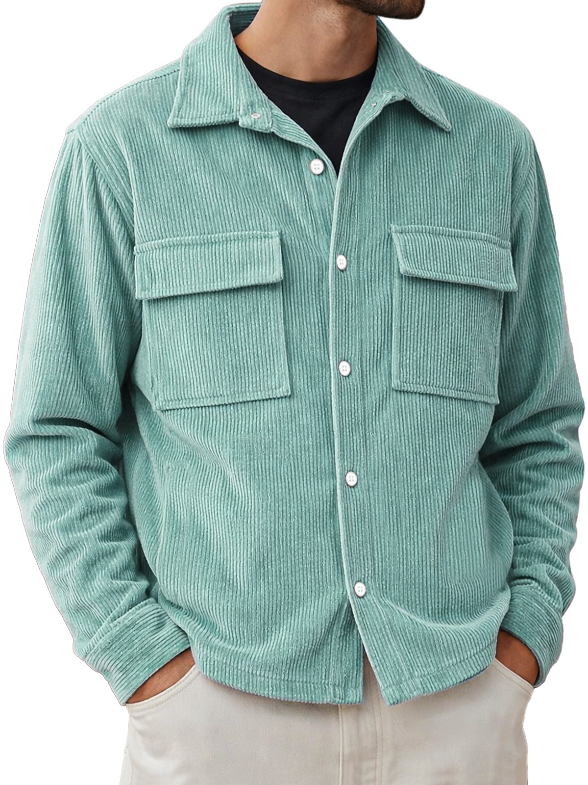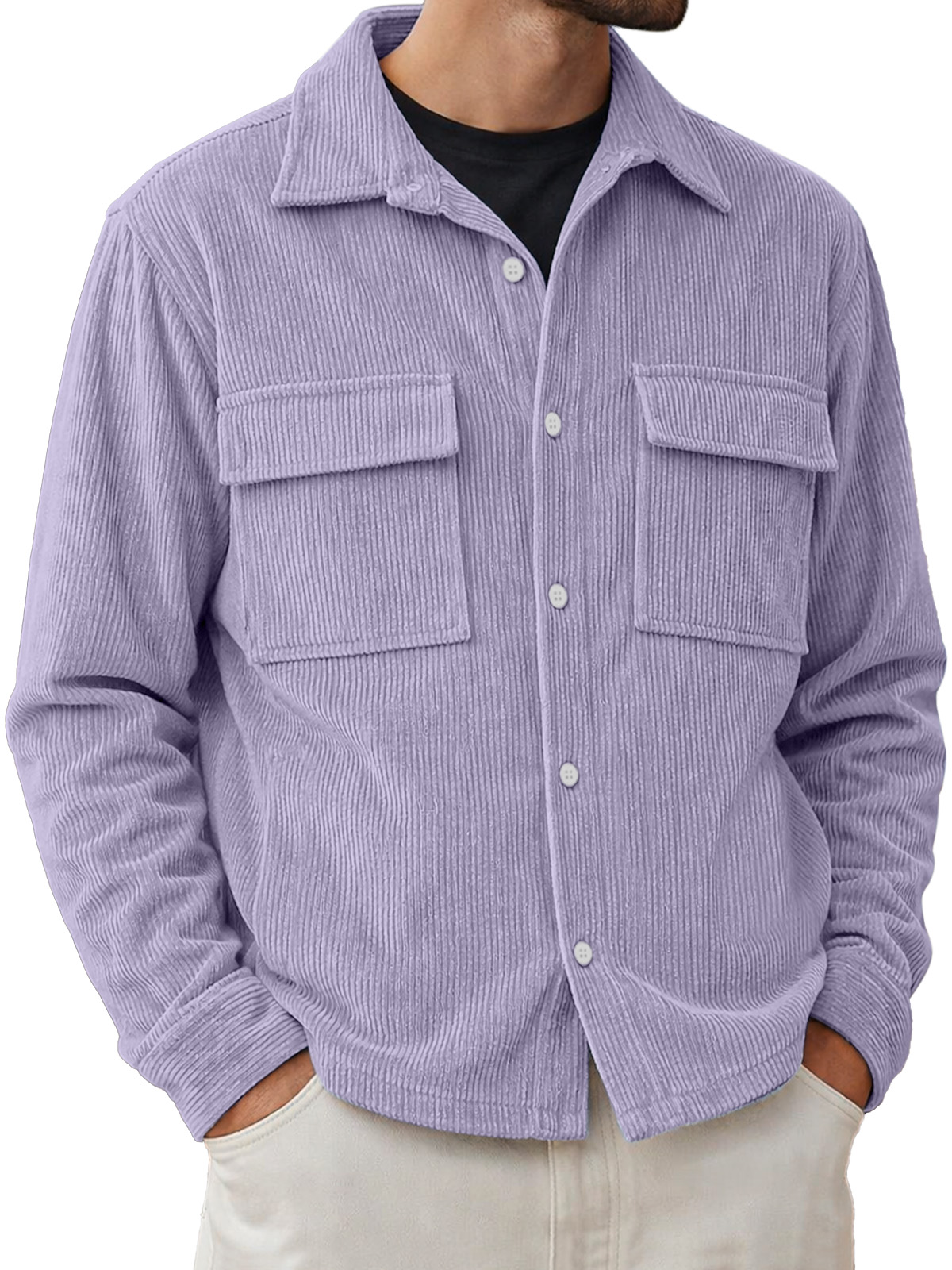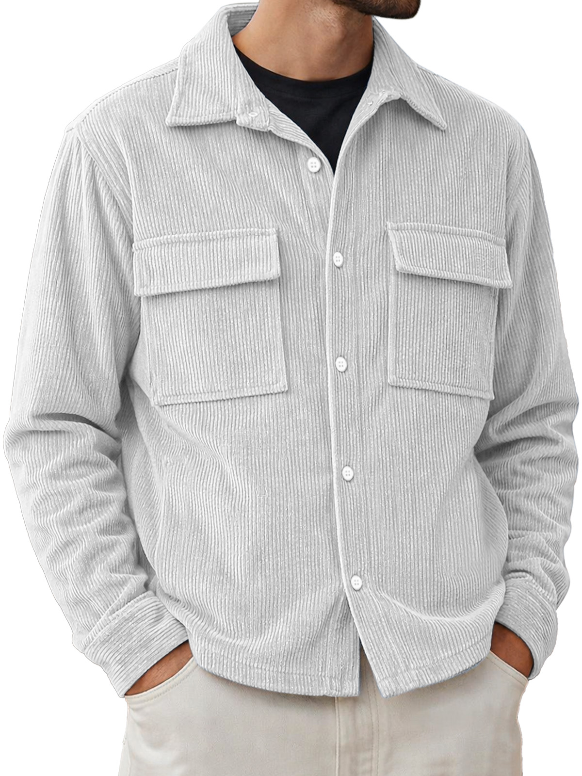 Men's Basic Double-pocket Corduroy Button-down Long-sleeved Shirt