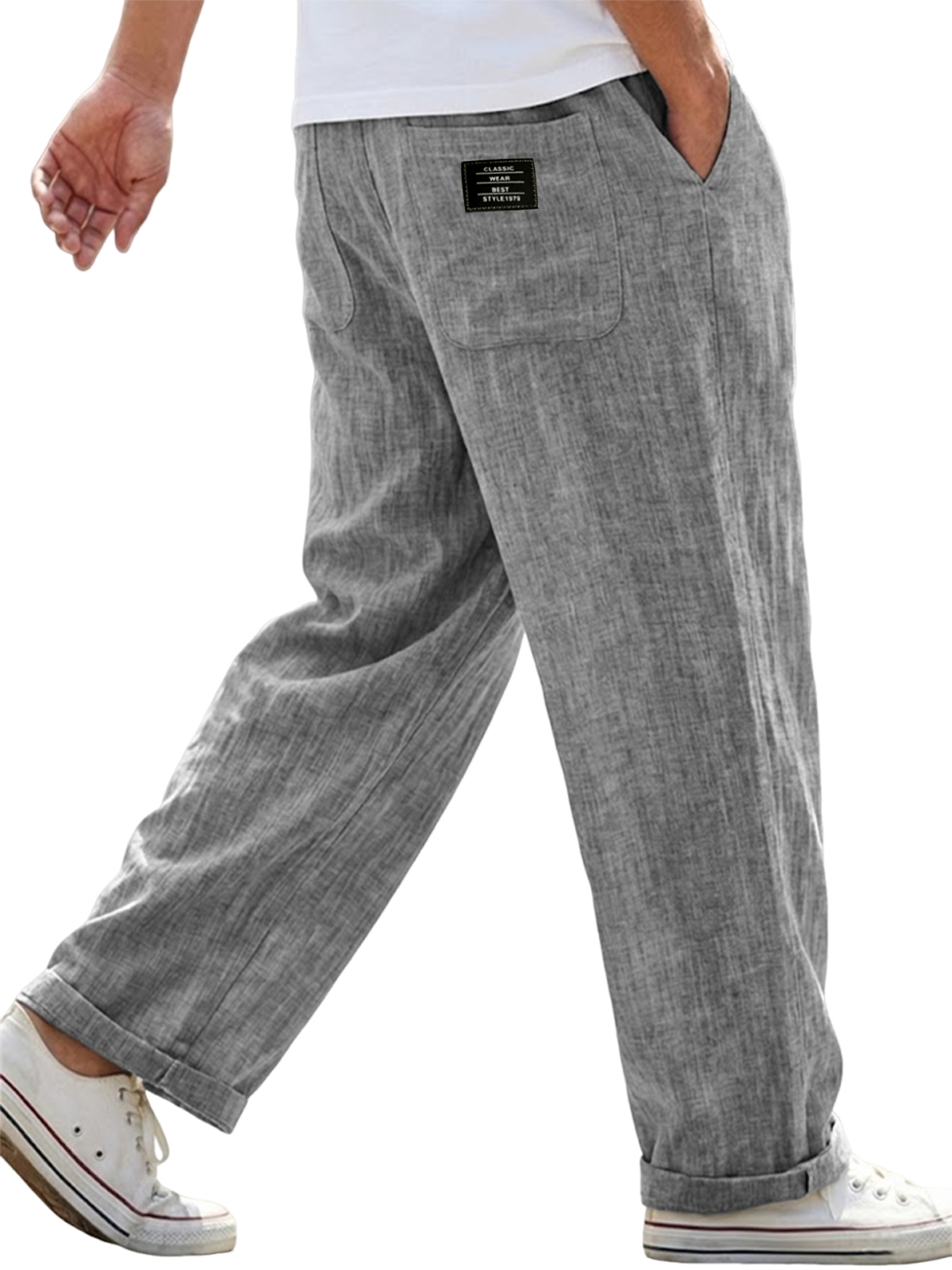 Men's Breathable Linen Vintage Multi-pocket Casual Embroidered Patchwork Trousers