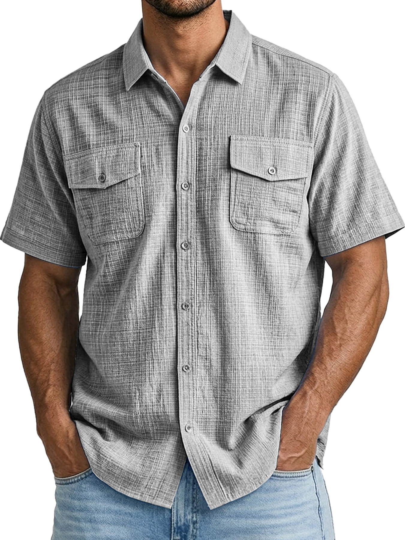 Men's Casual Bamboo-Style Linen Multi-Pocket Work Shirt