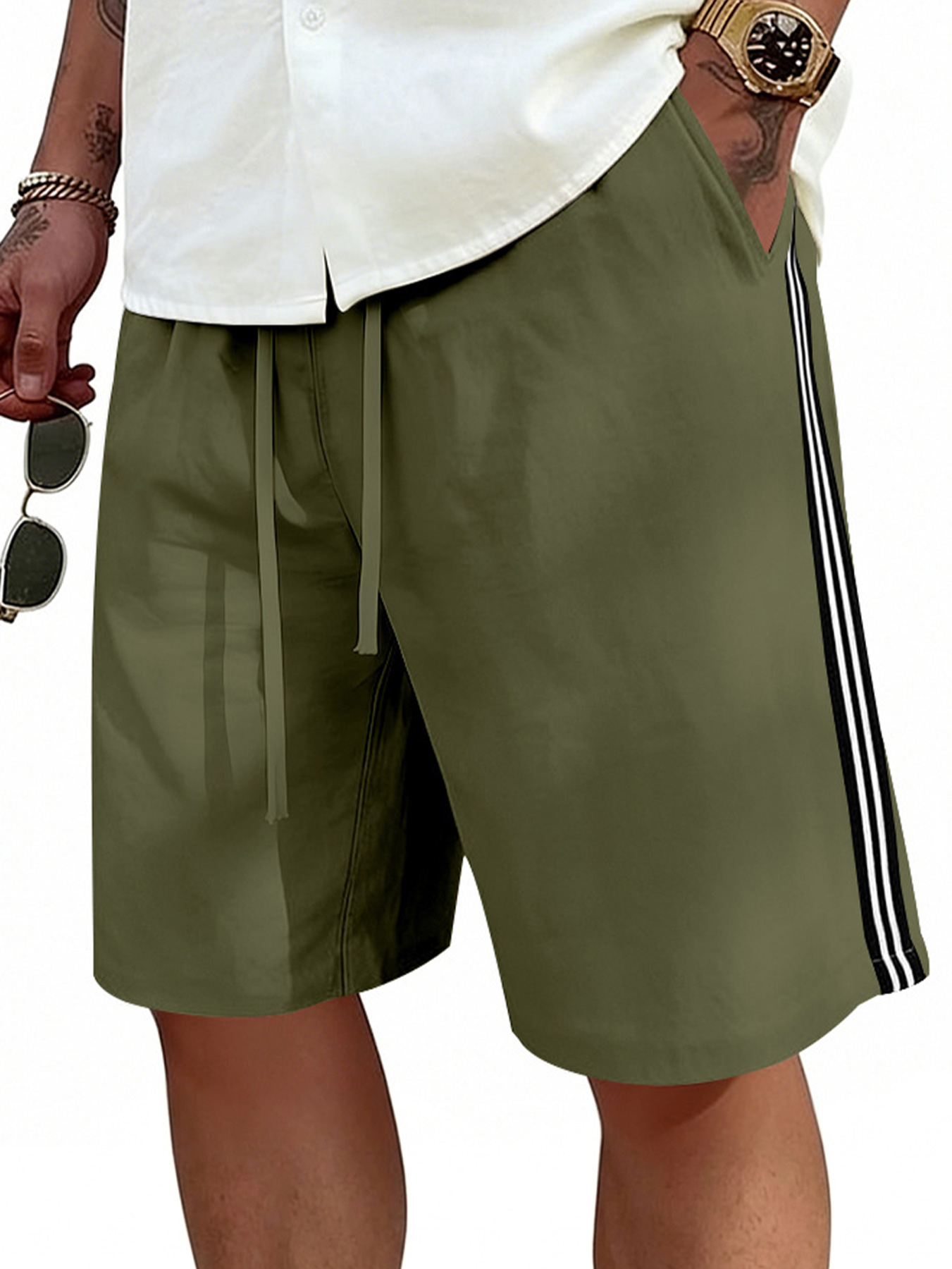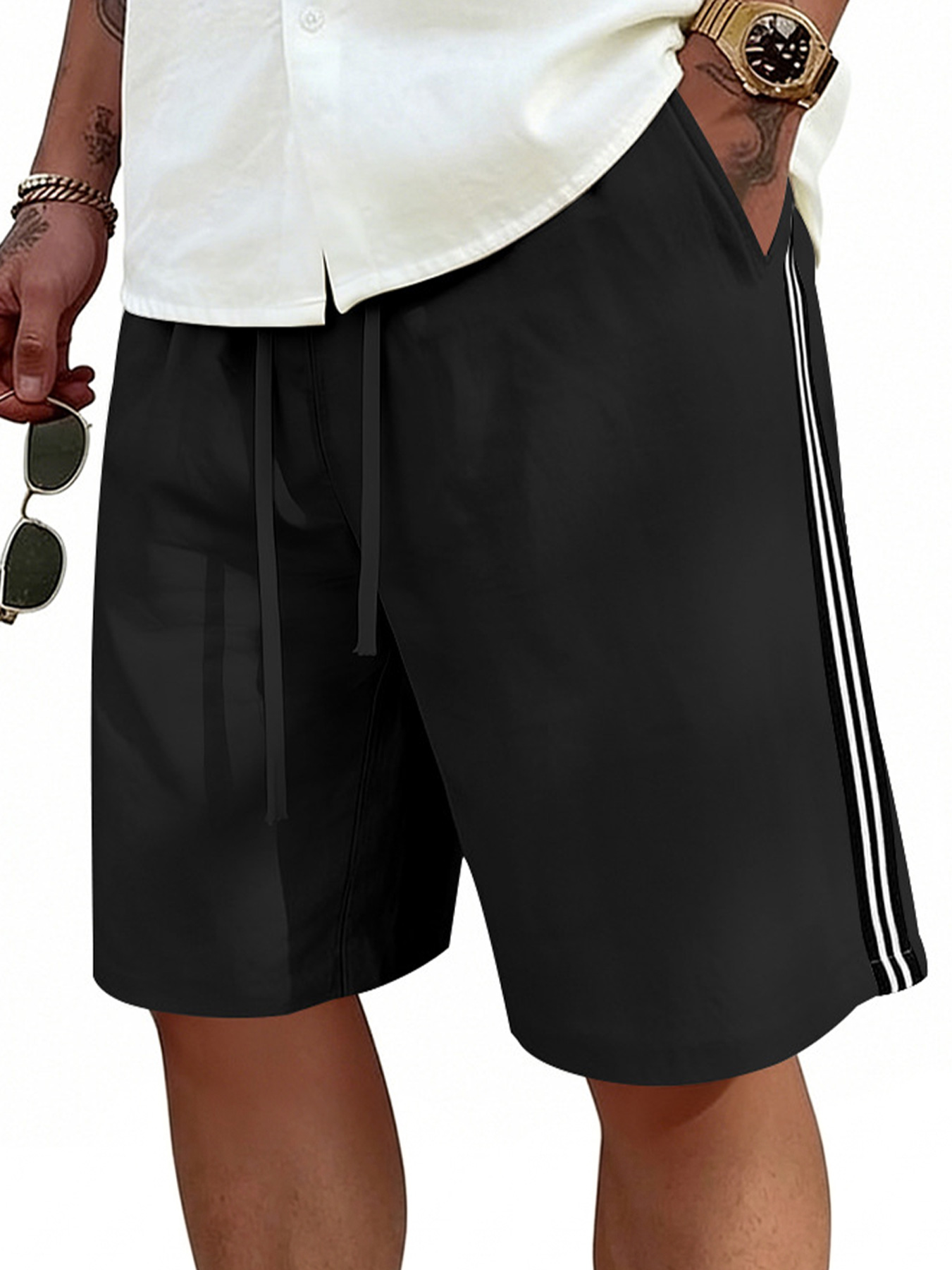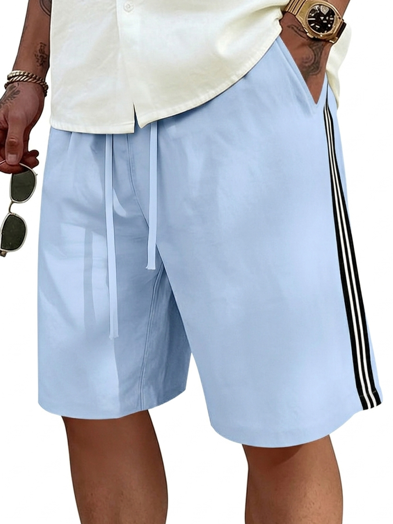 Men's Casual Beach Shorts Simple Striped and Drawstring