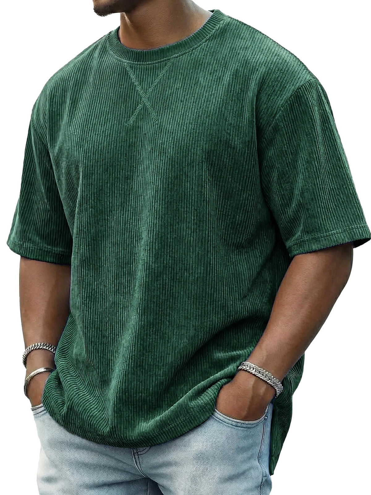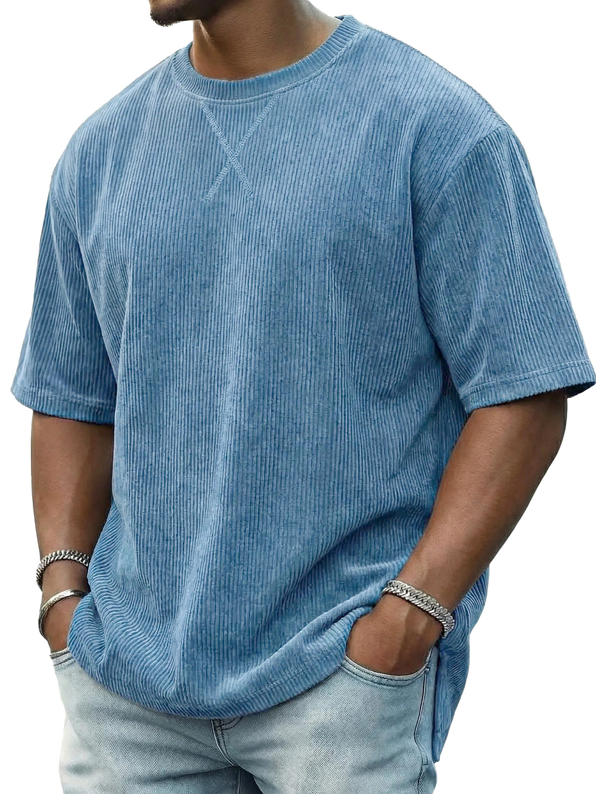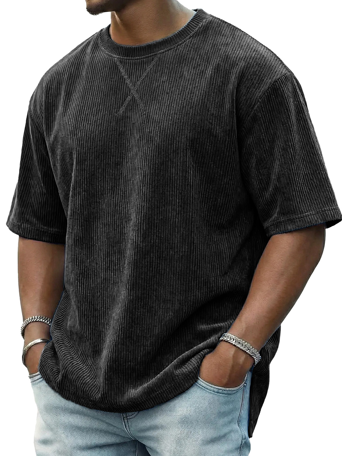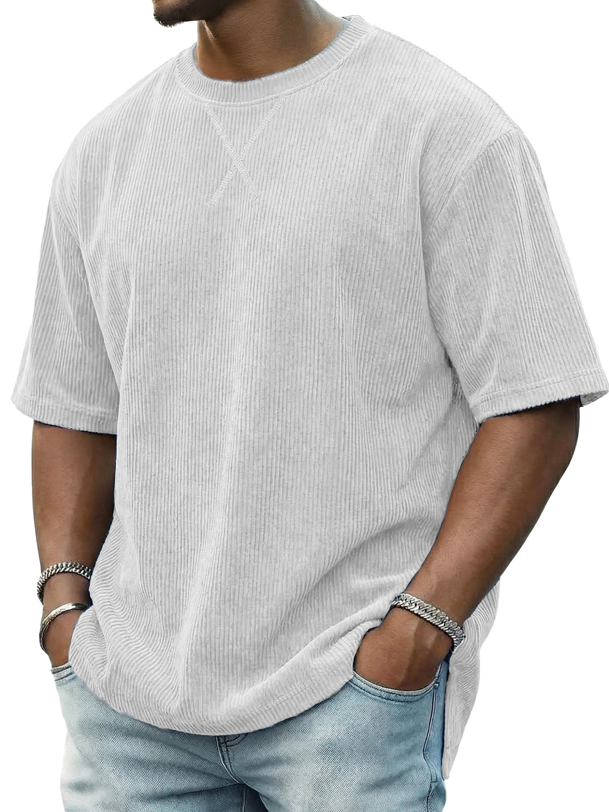 Men's Casual Fashionable Ribbed Crew Neck Short-Sleeve T-Shirt