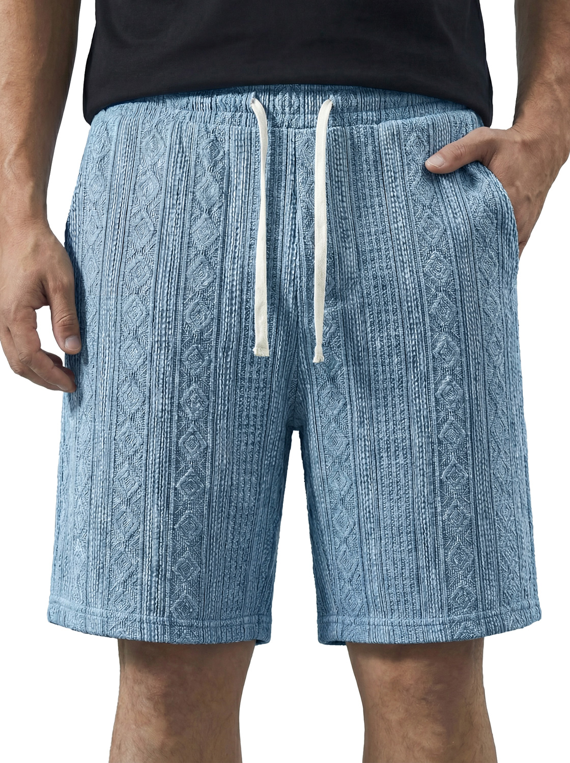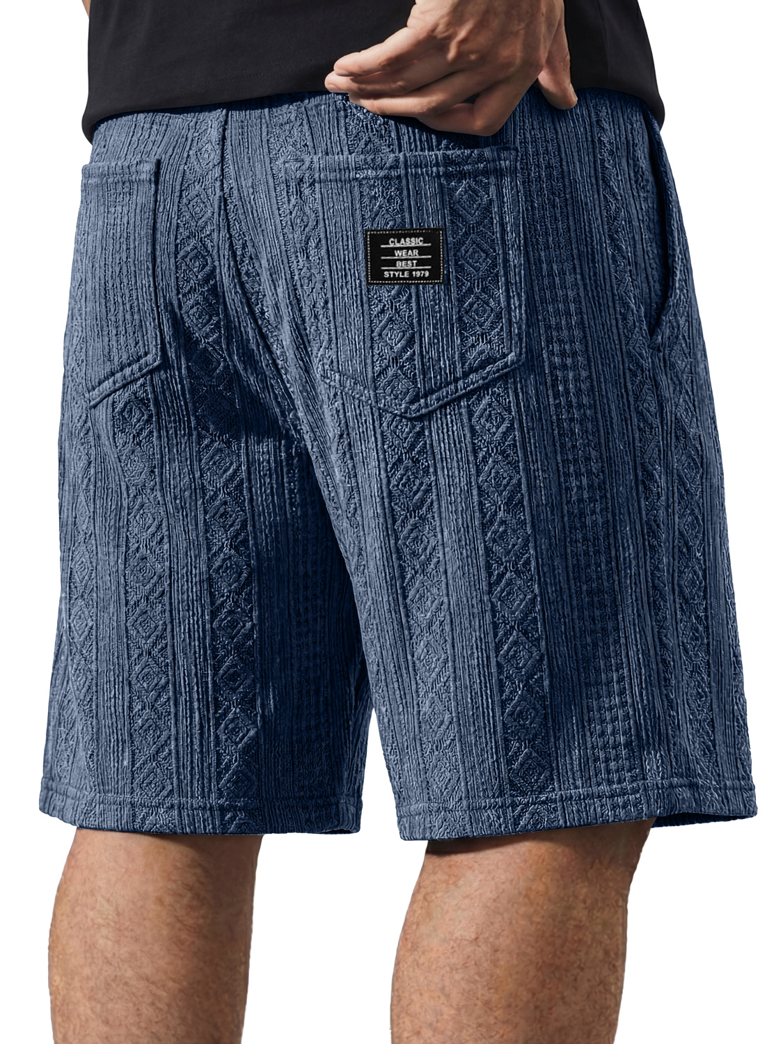 Men's Casual Jacquard Textured Embroidered Logo Shorts