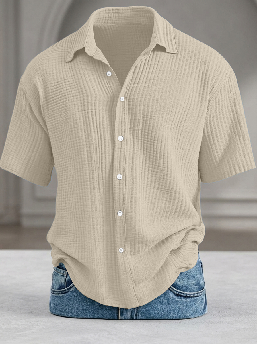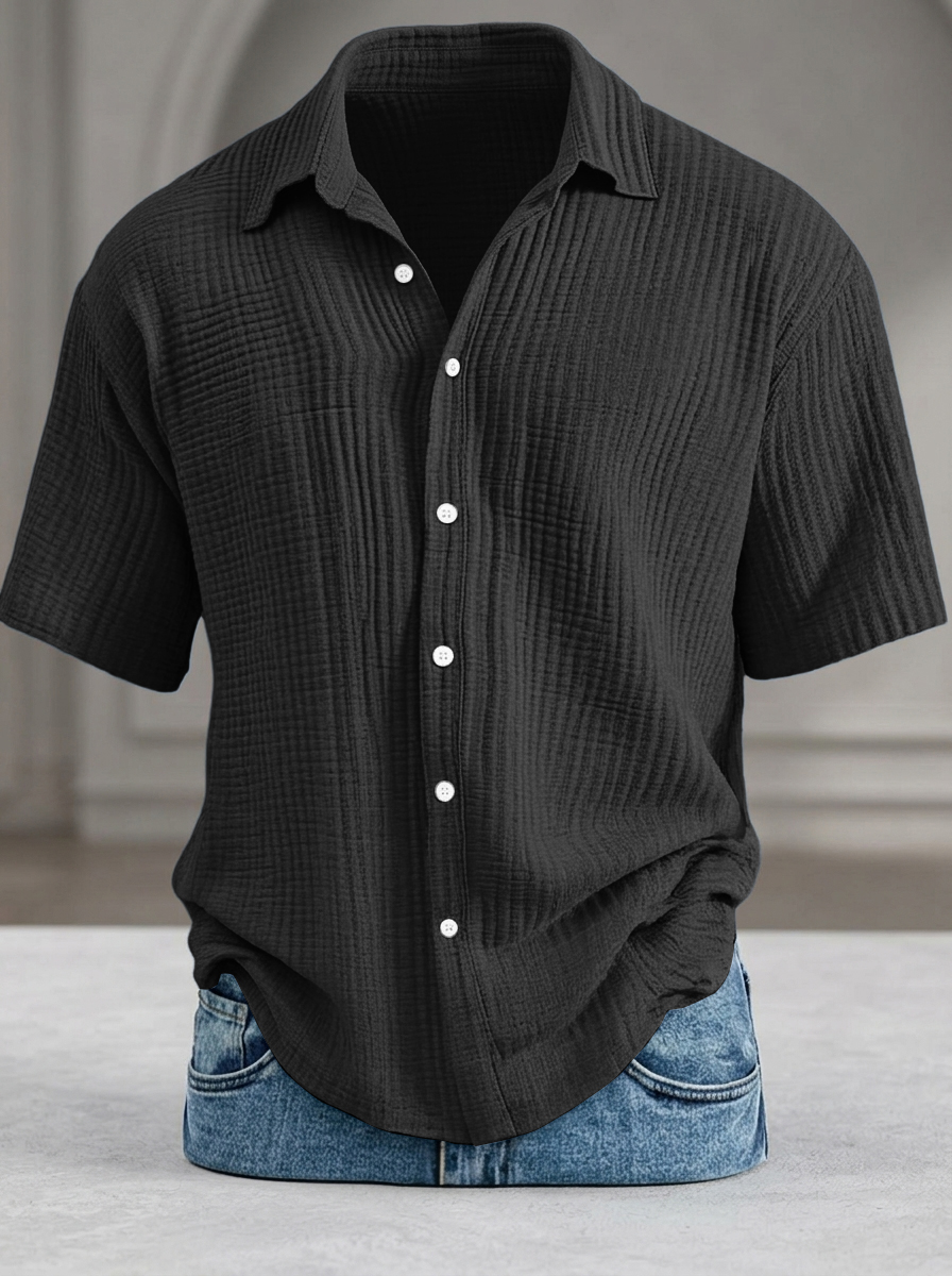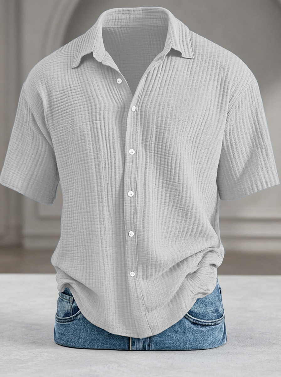 Men's Casual Loose-Fit Textured Short-Sleeve Shirt