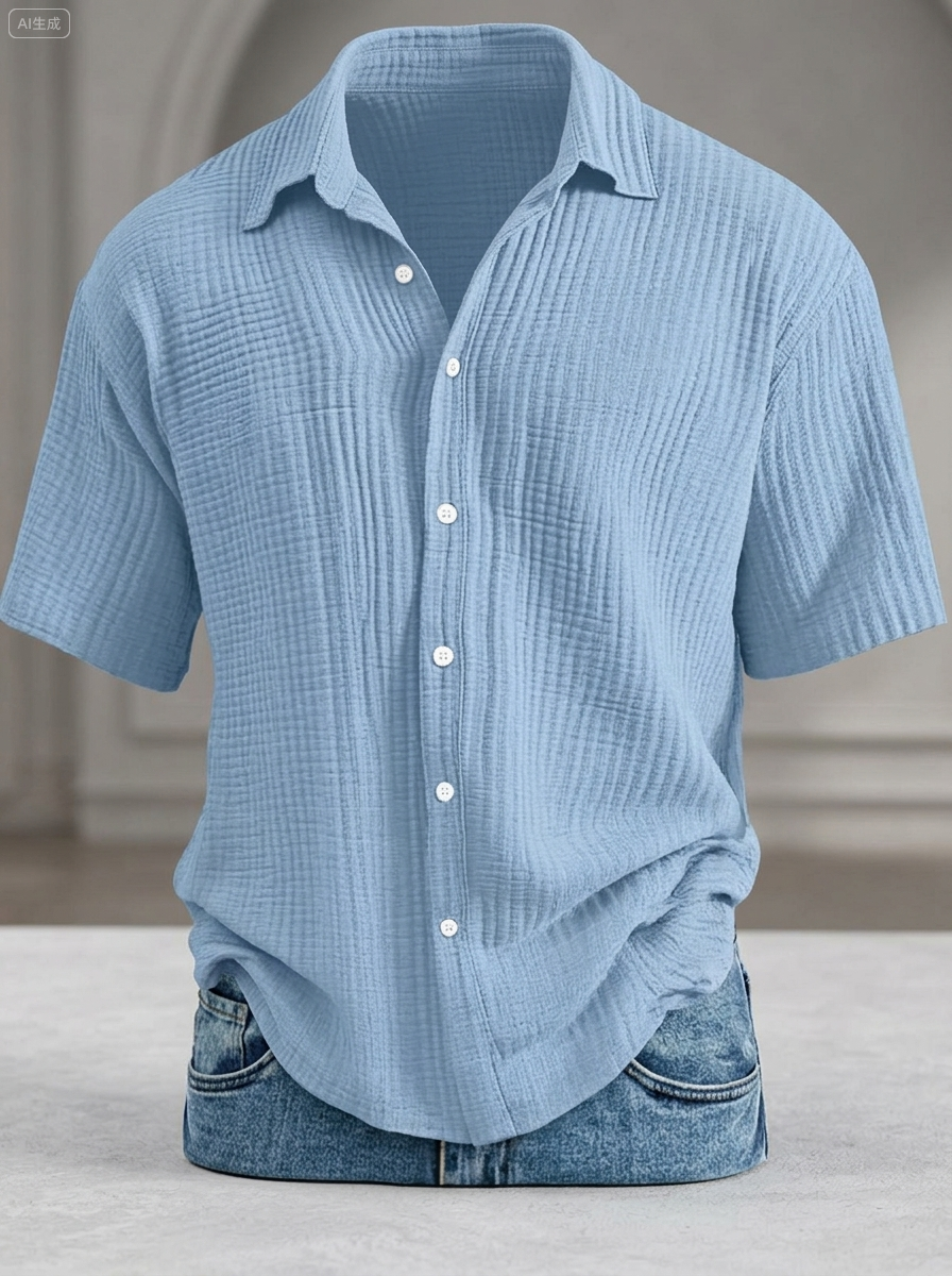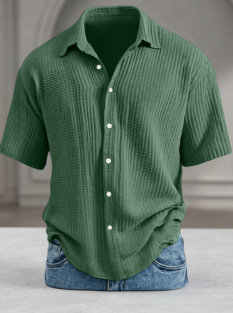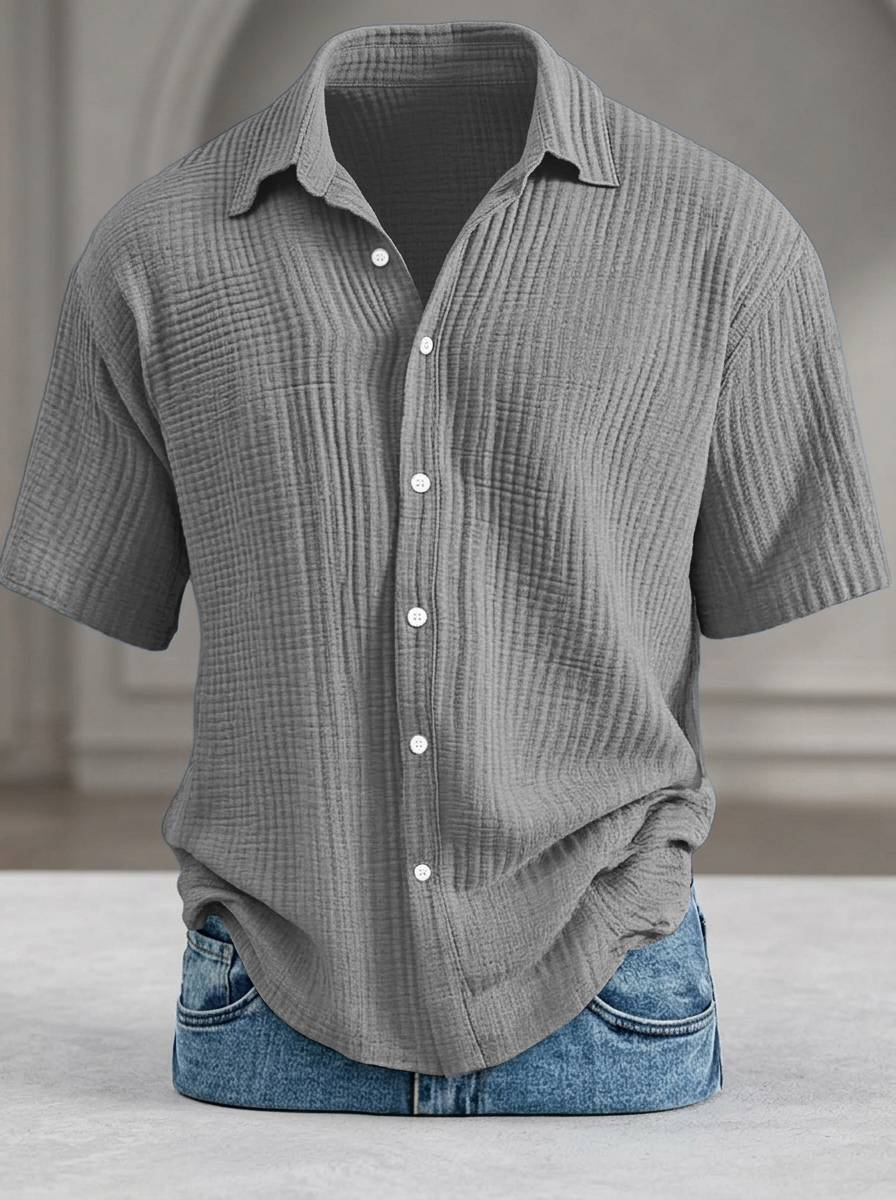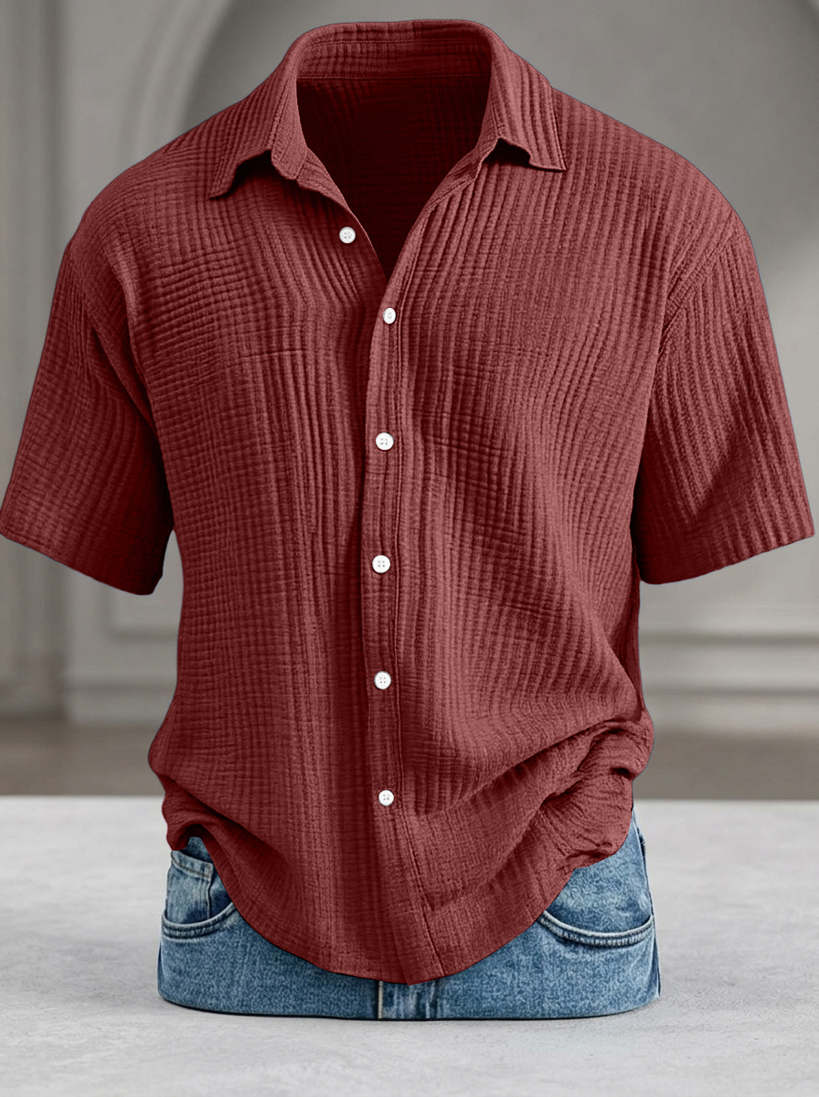 Men's Casual Loose-Fit Textured Short-Sleeve Shirt