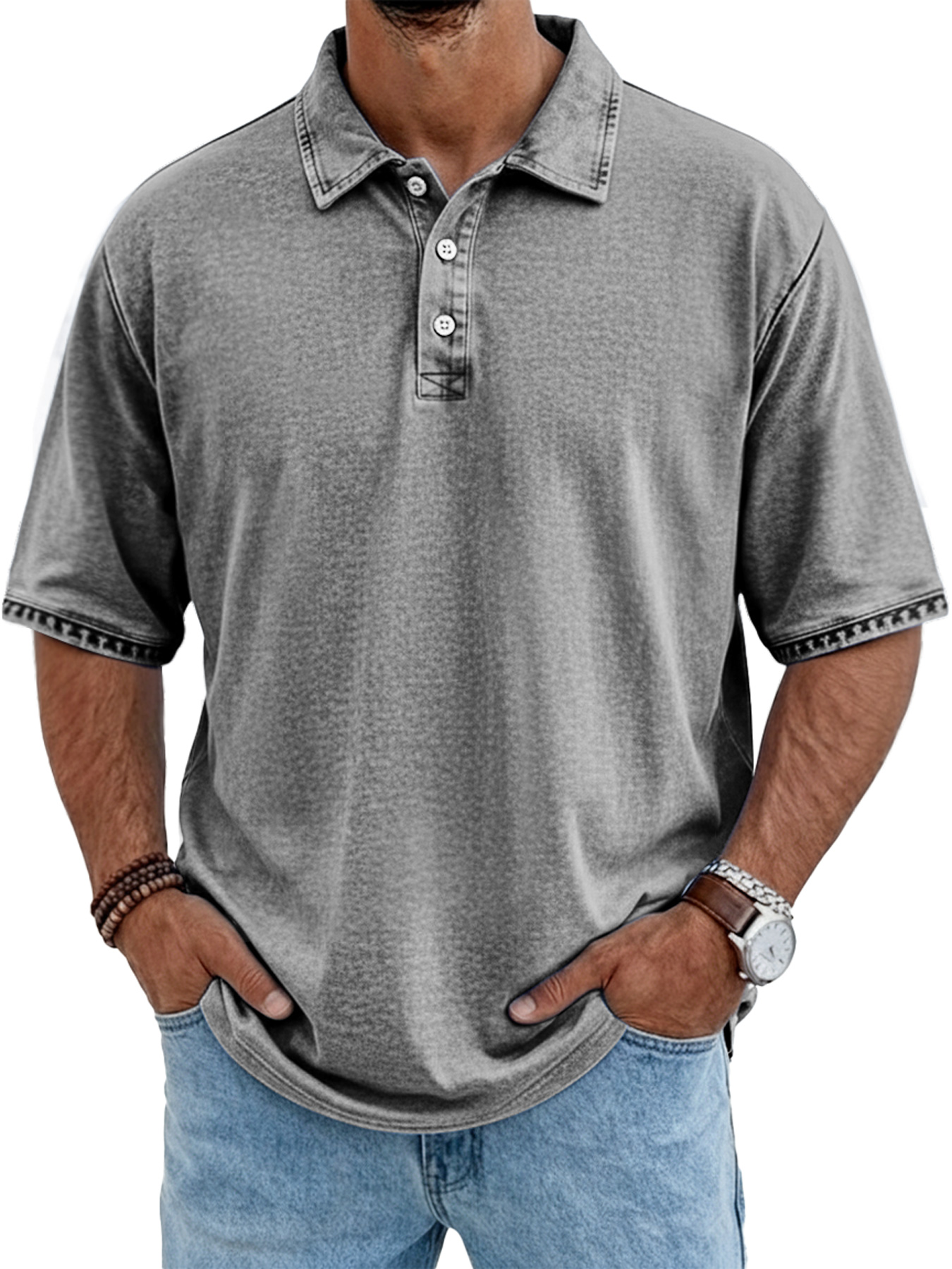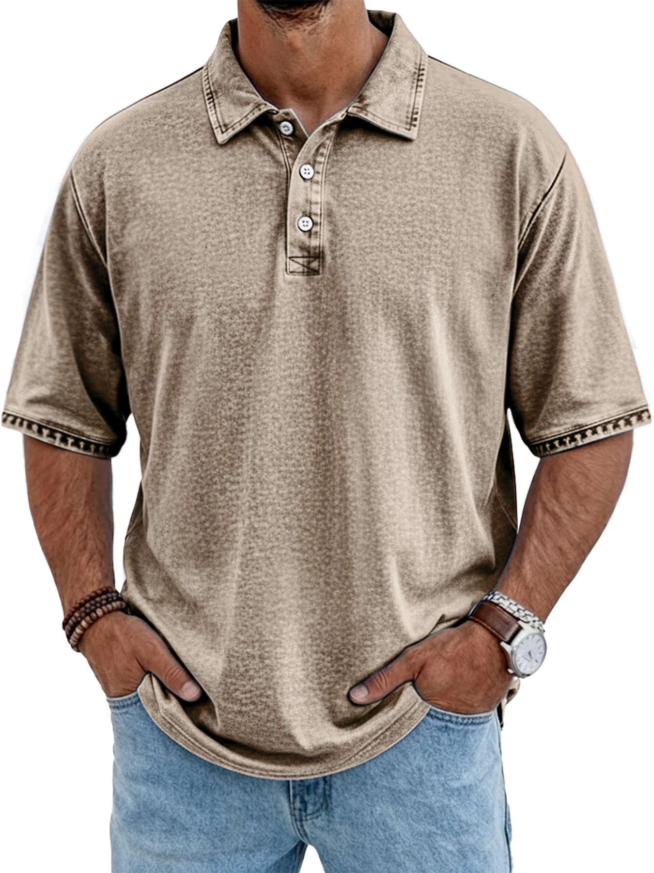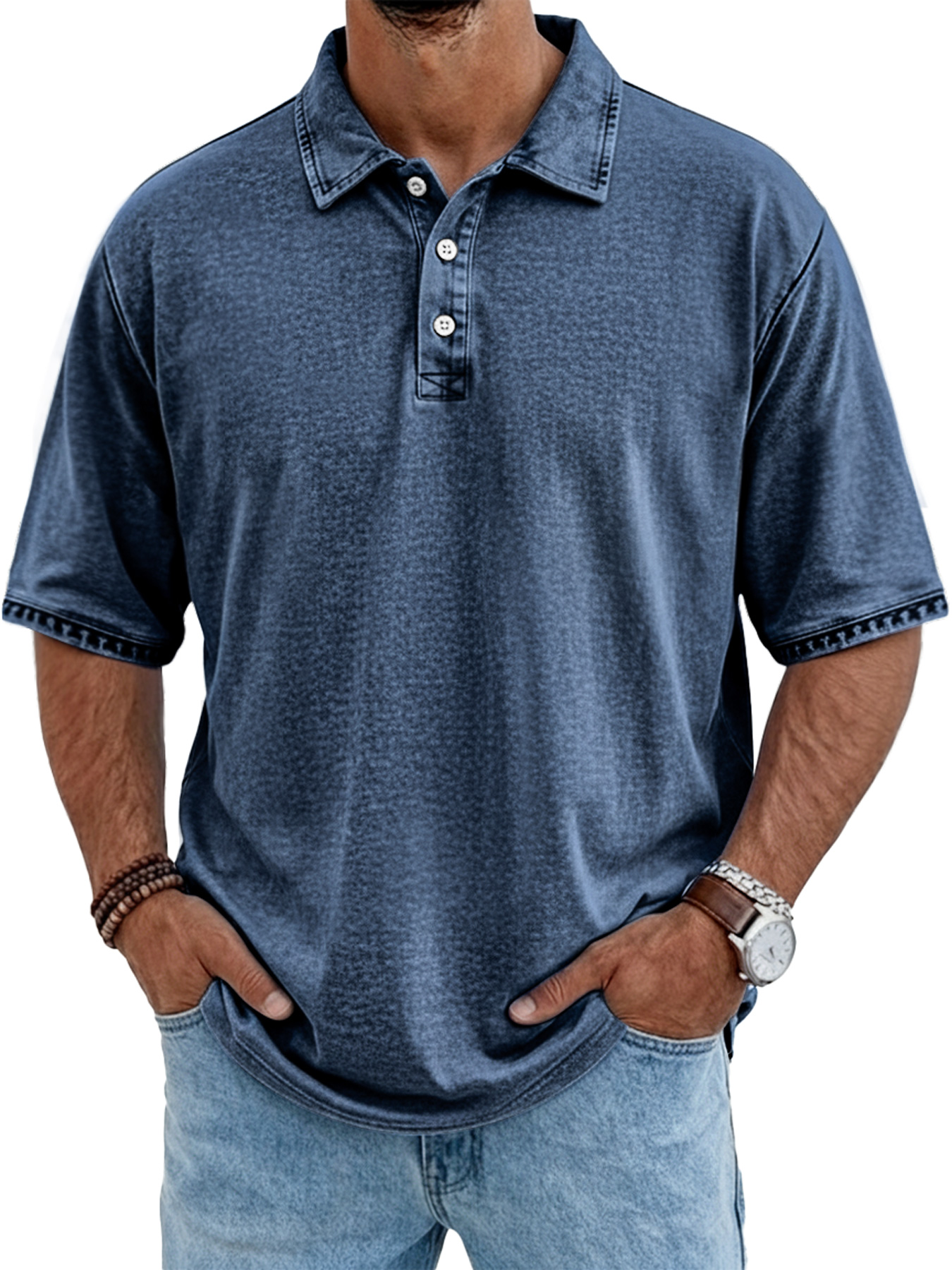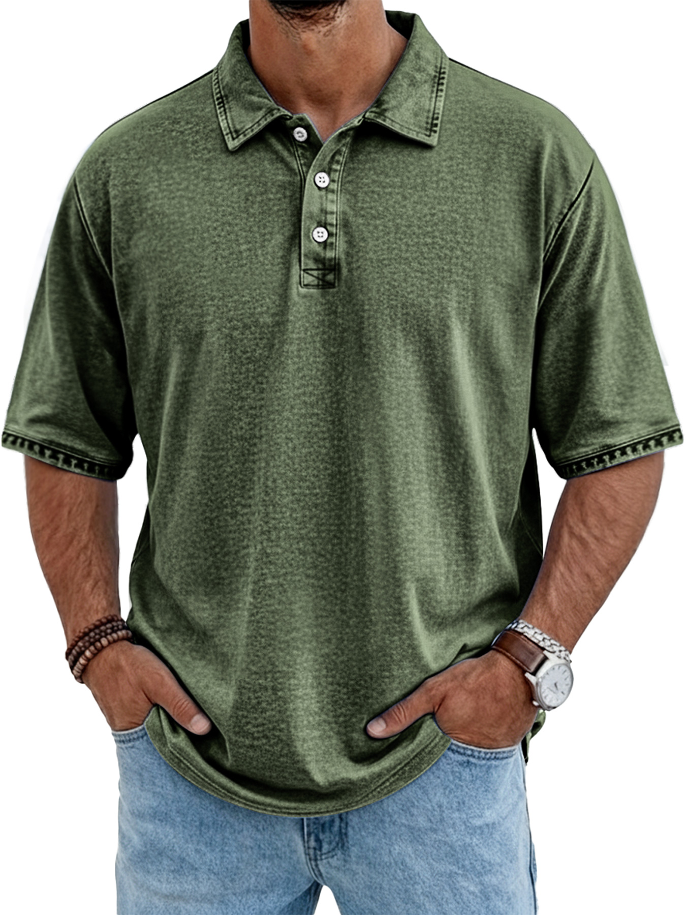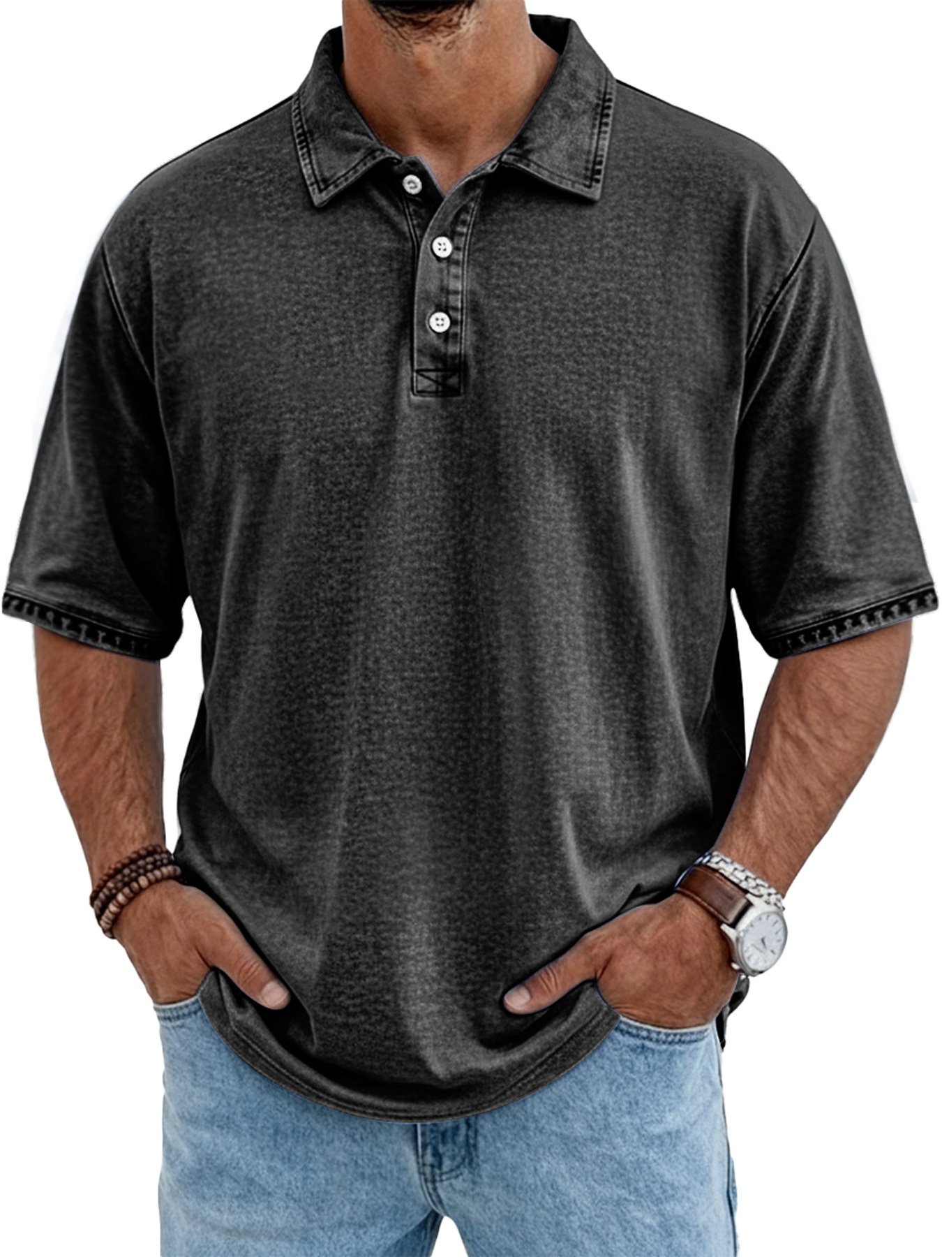Men's Casual Retro Collar Button-Down Short-Sleeve Polo Shirt