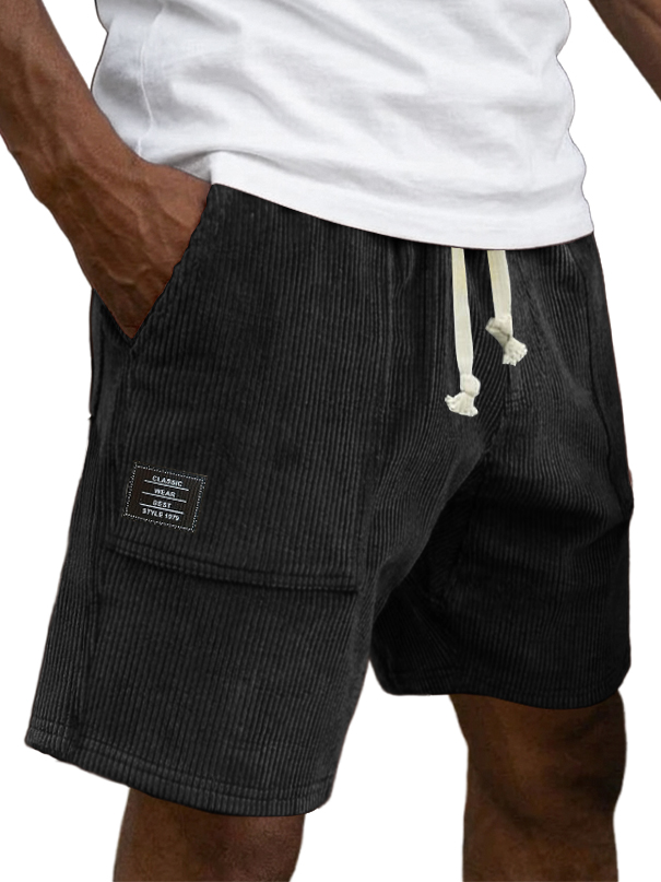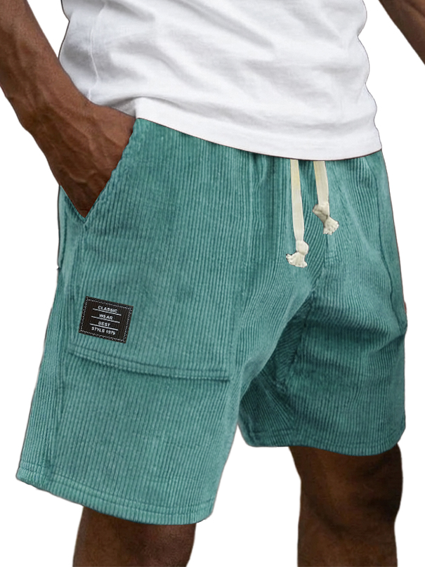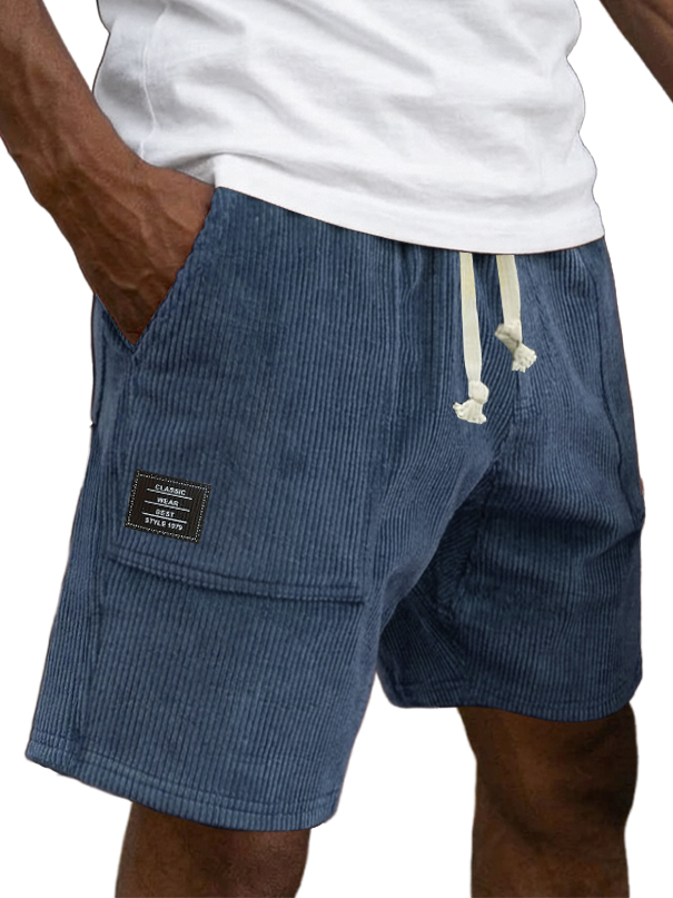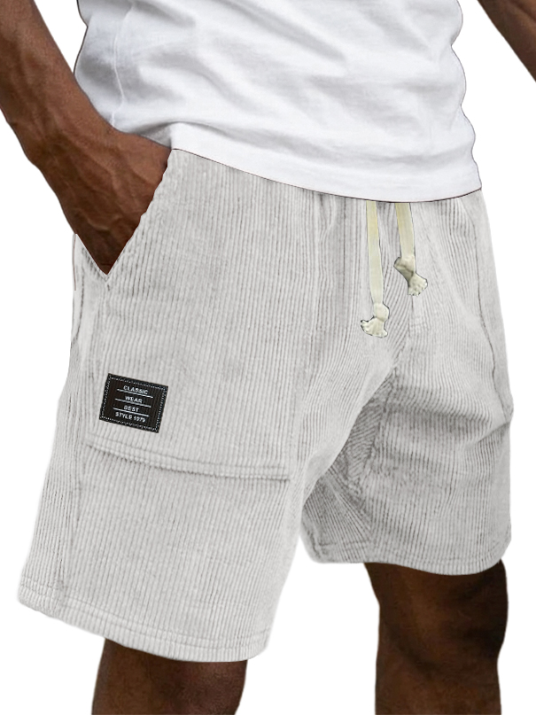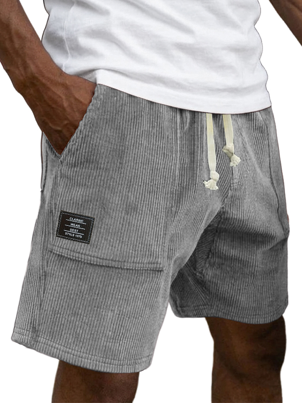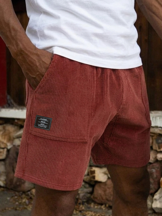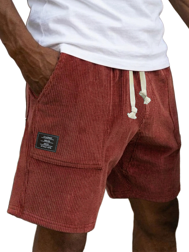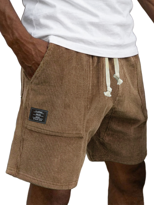 Men's Casual Retro Corduroy Embroidered Logo Loose-fitting Casual Shorts