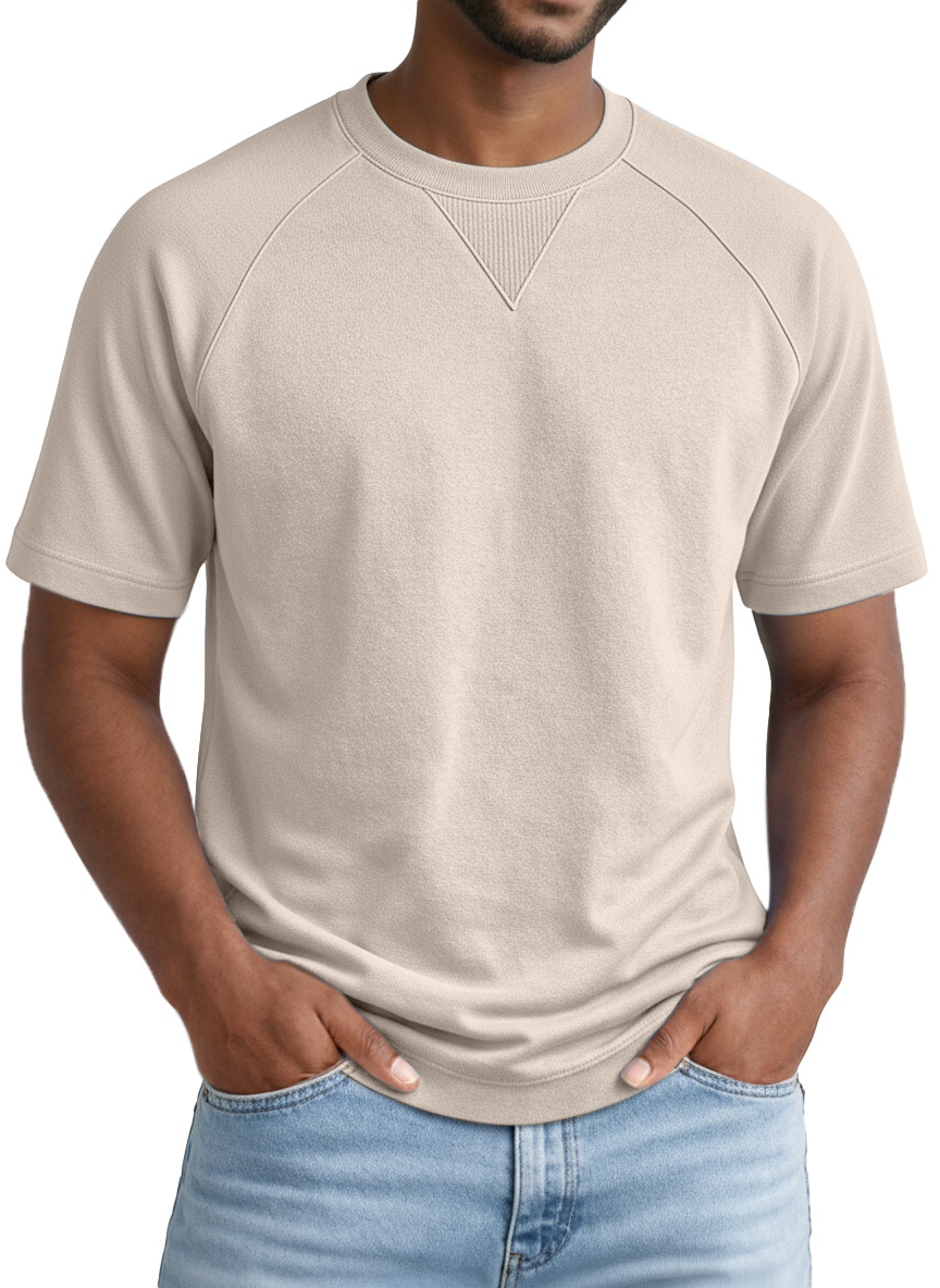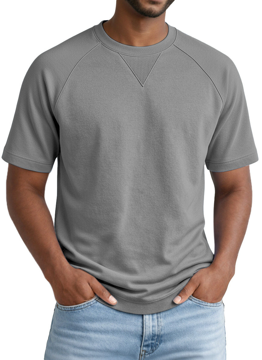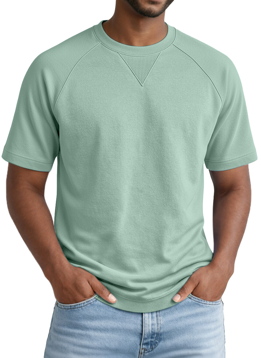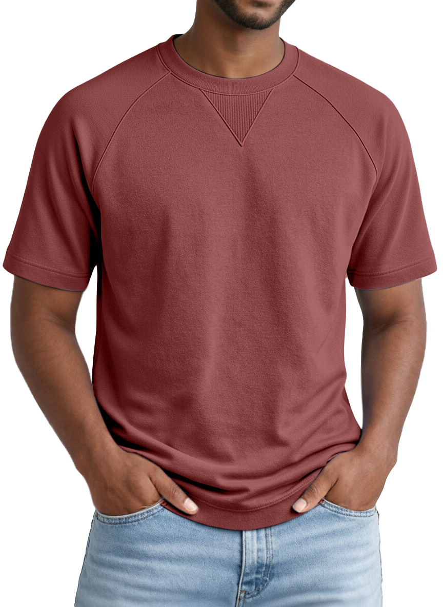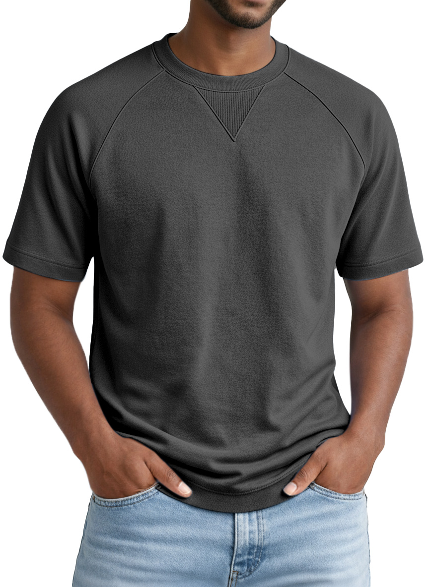 Men's Casual Solid-color Inverted Triangle Design Raglan Short-sleeved Crew Neck T-shirt