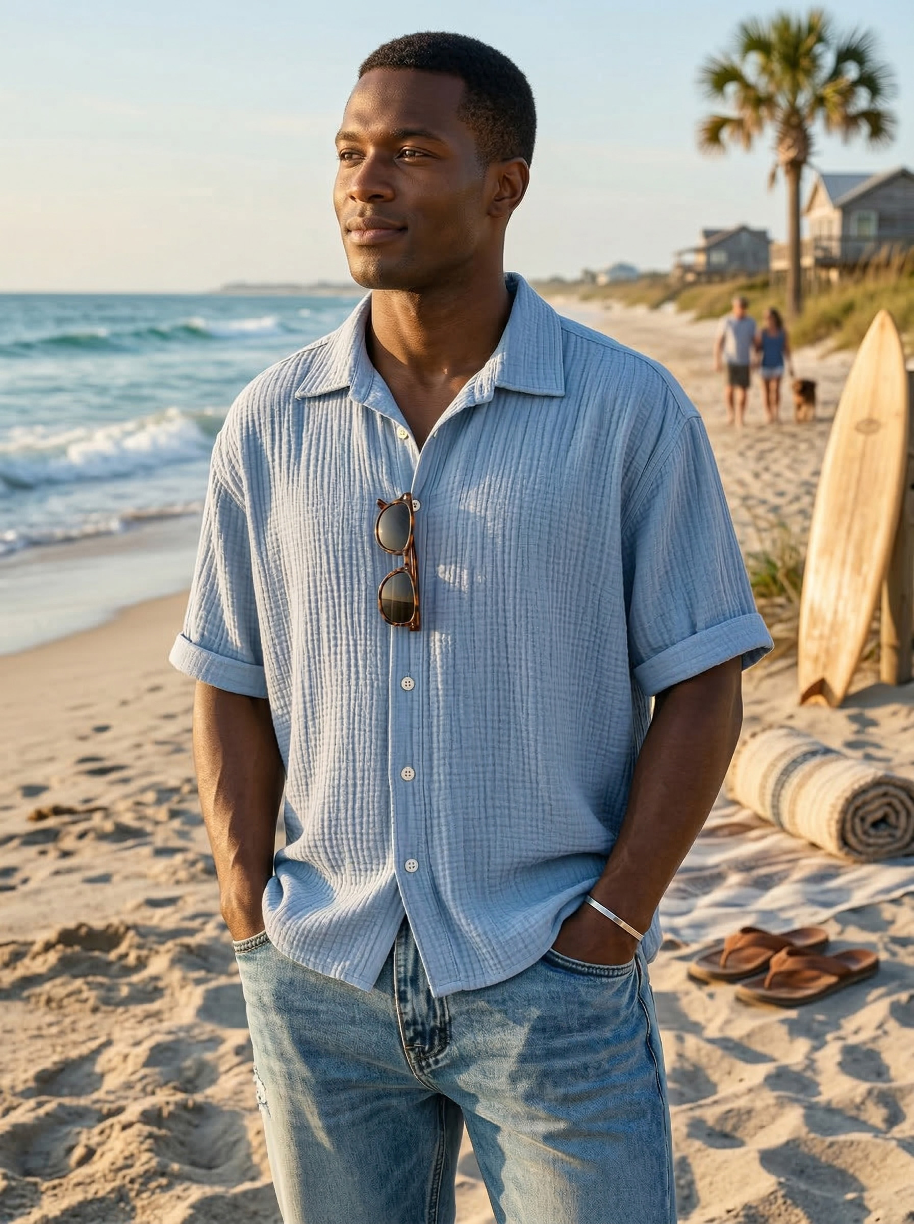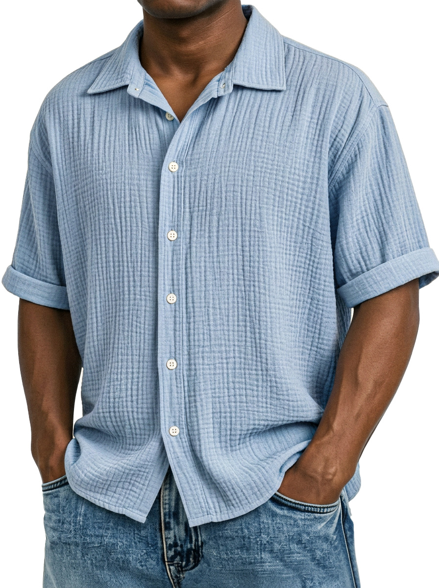 Men's Casual Vacation Breathable And Comfortable Pleated Short-sleeved Shirt