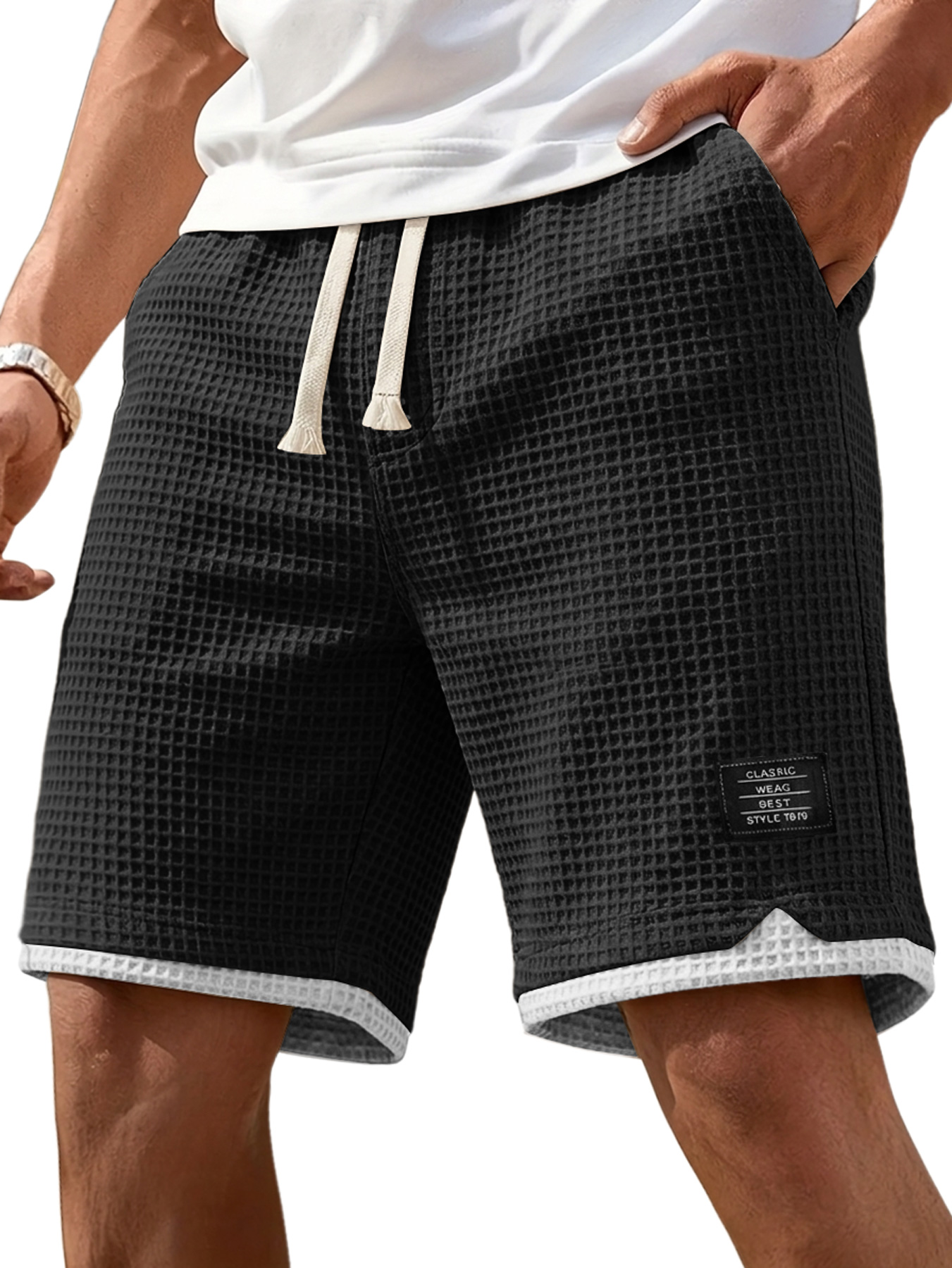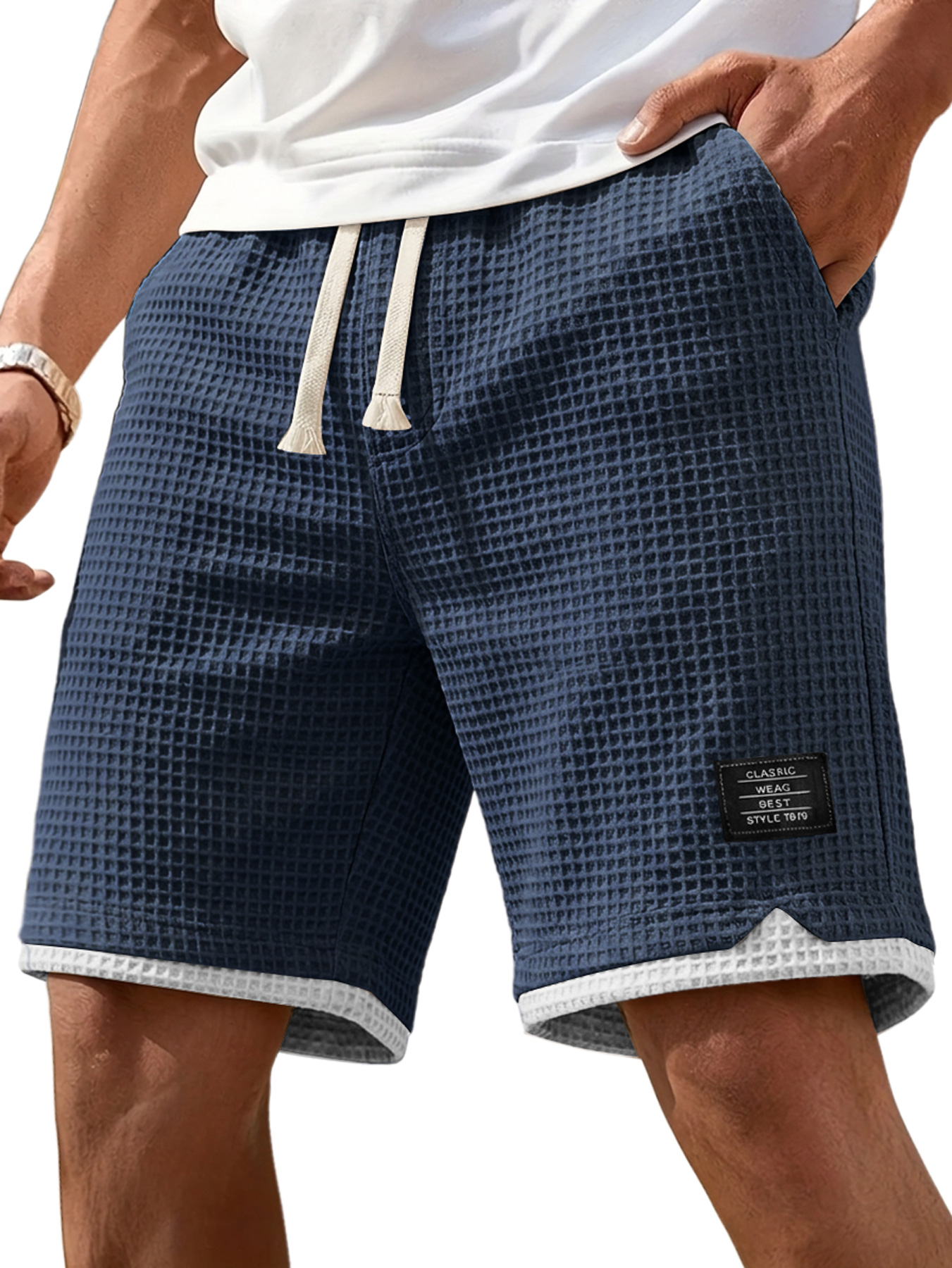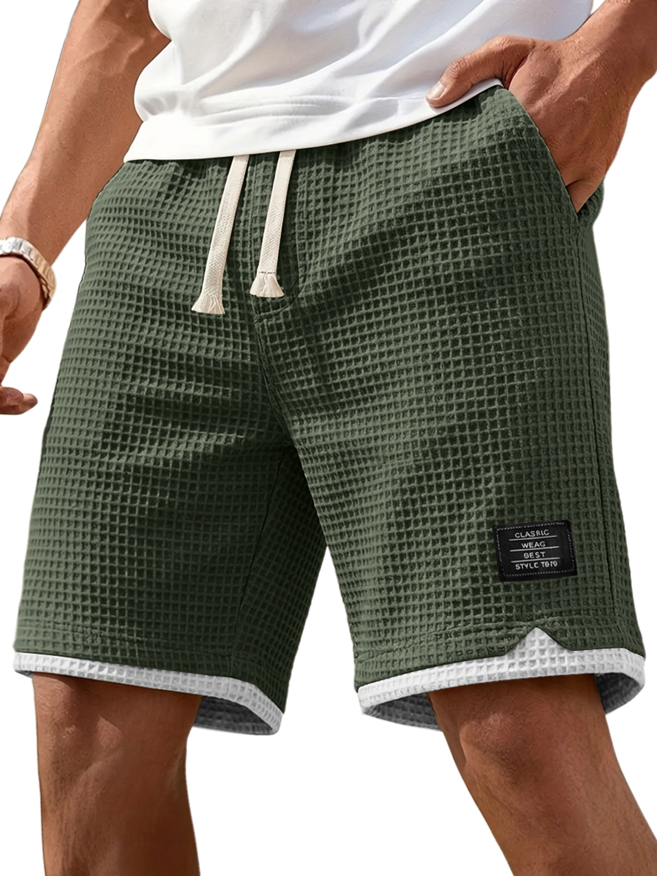 Men's Casual Waffle Color Block Embroidered Logo Loose Shorts