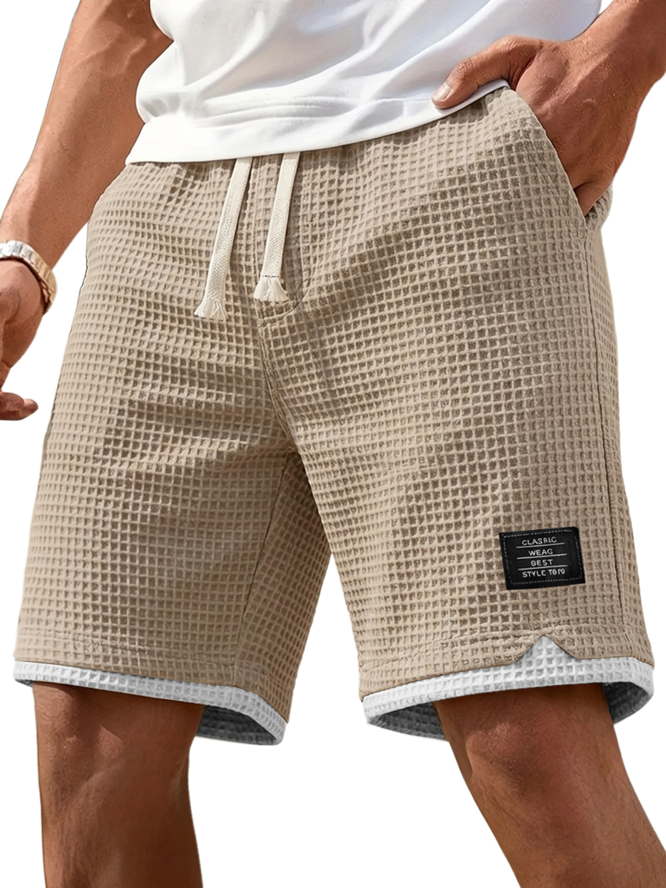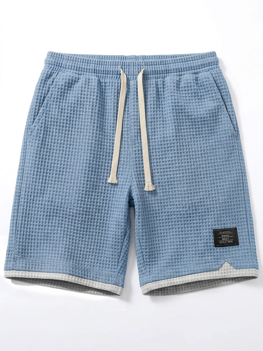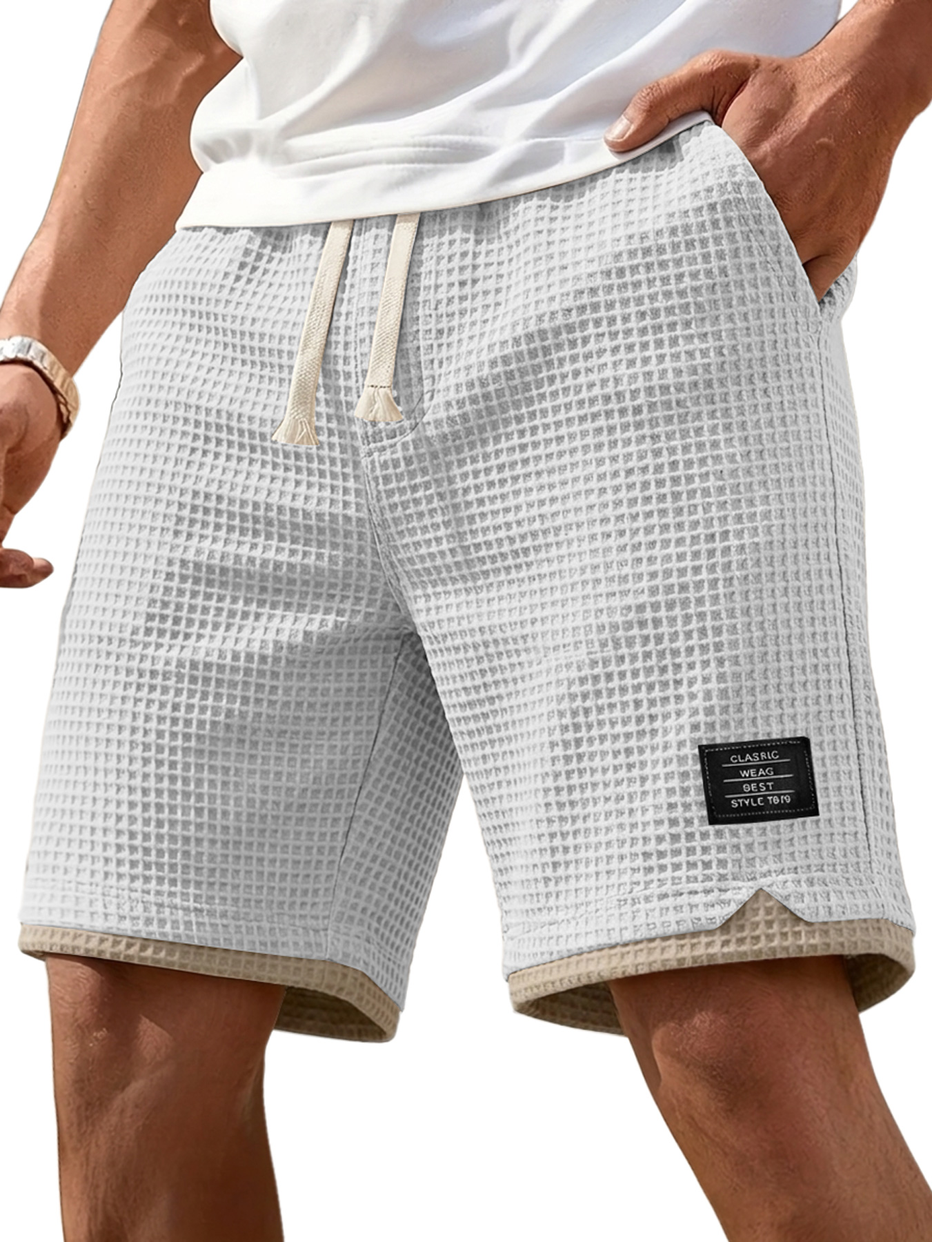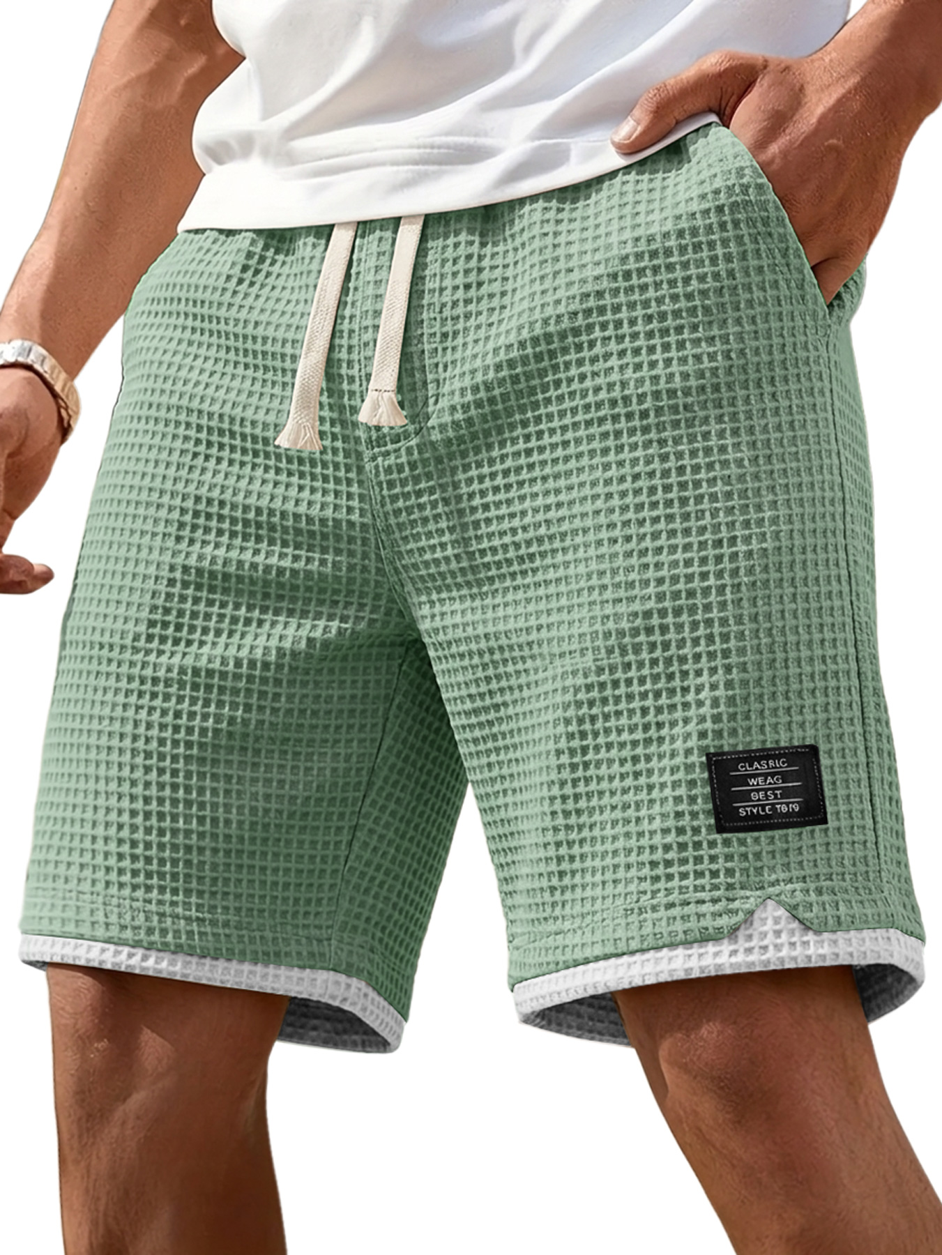 Men's Casual Waffle Color Block Embroidered Logo Loose Shorts