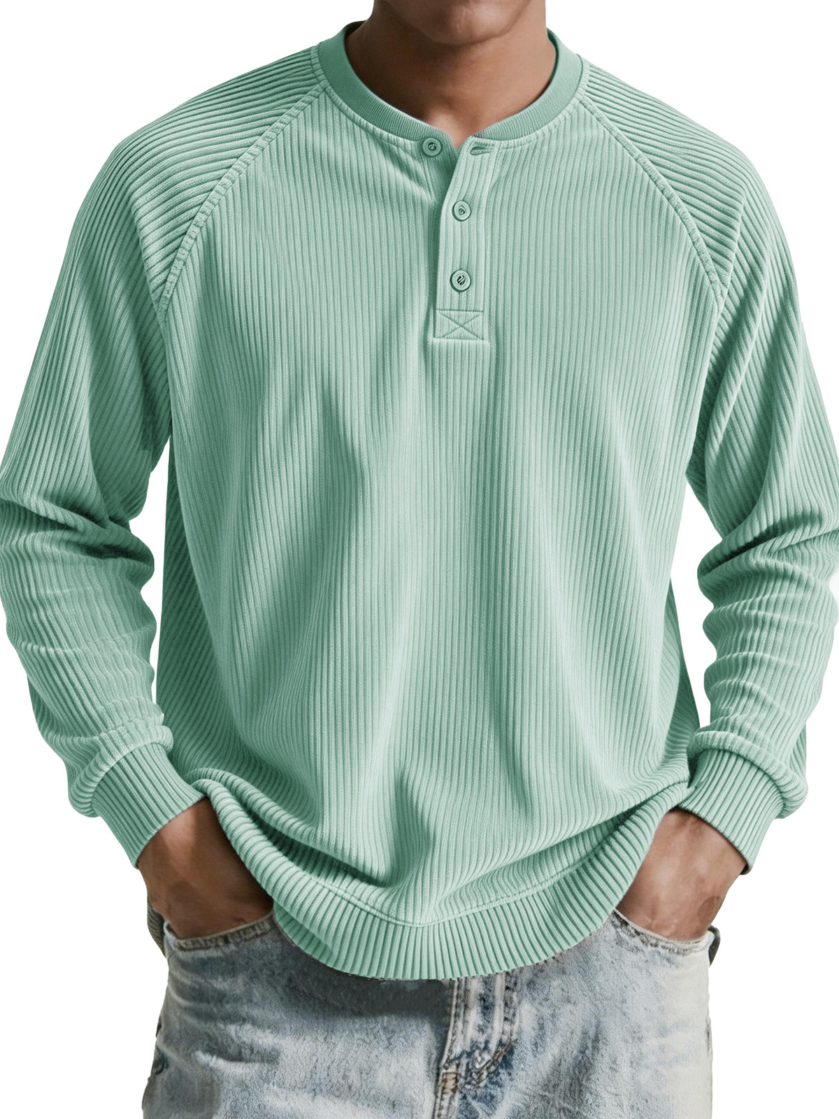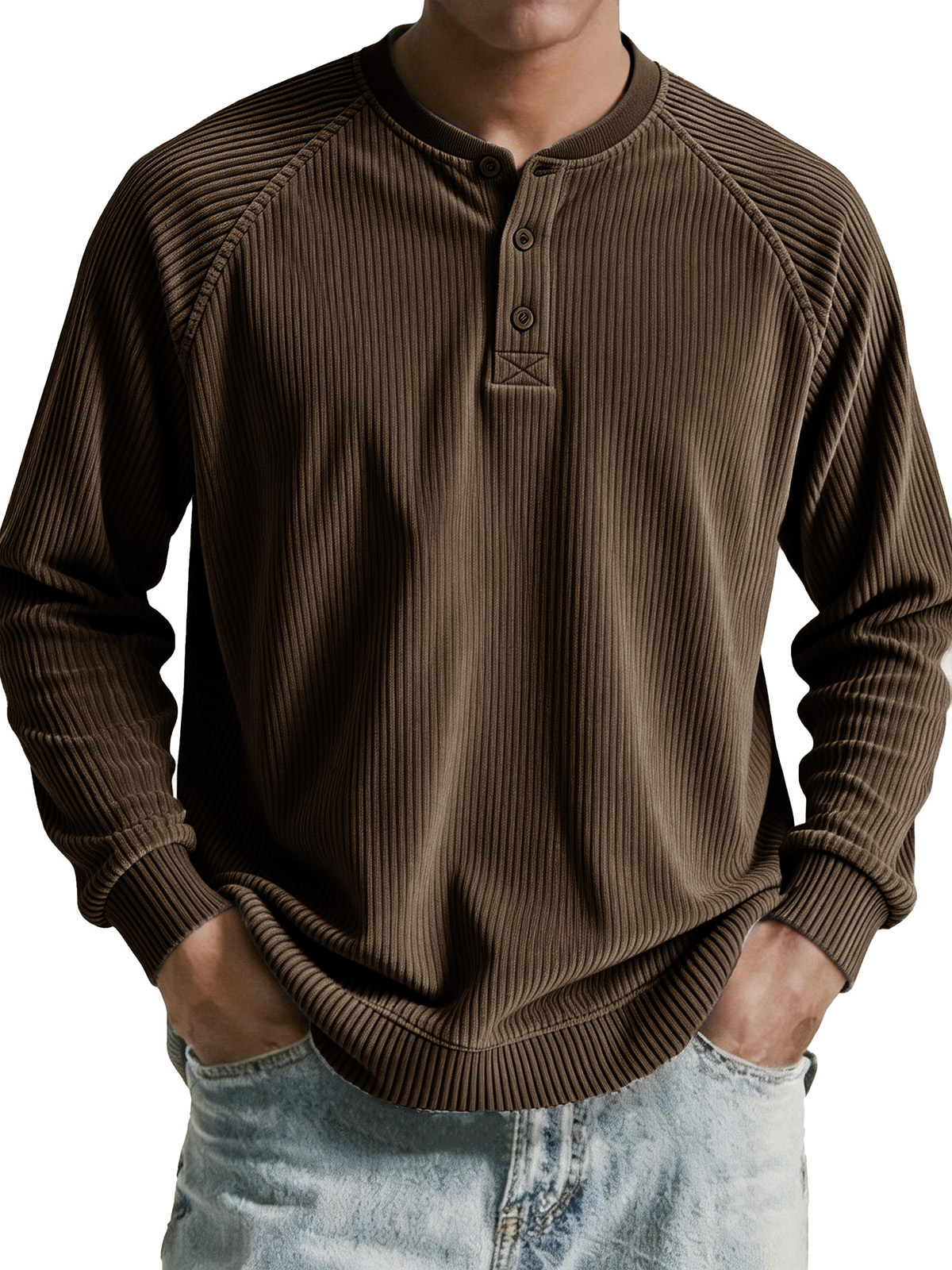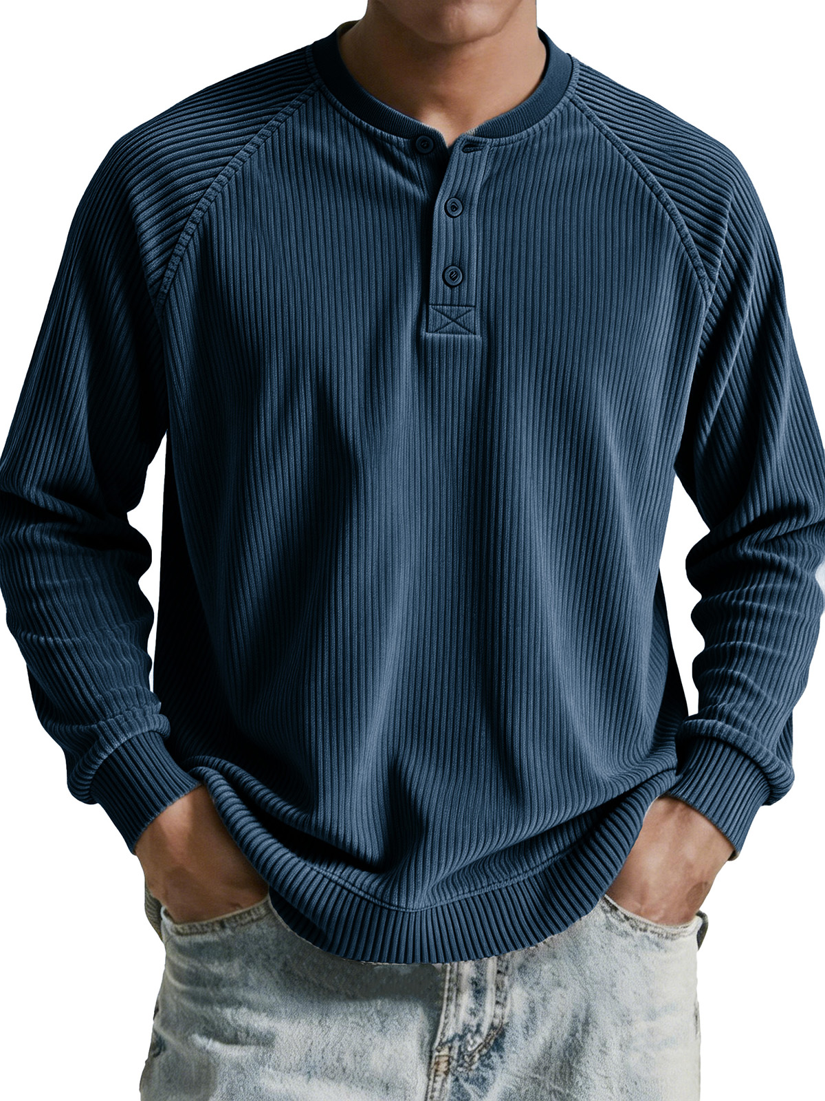 Men's clothing fashionable casual retro corduroy long-sleeved Henry shirt