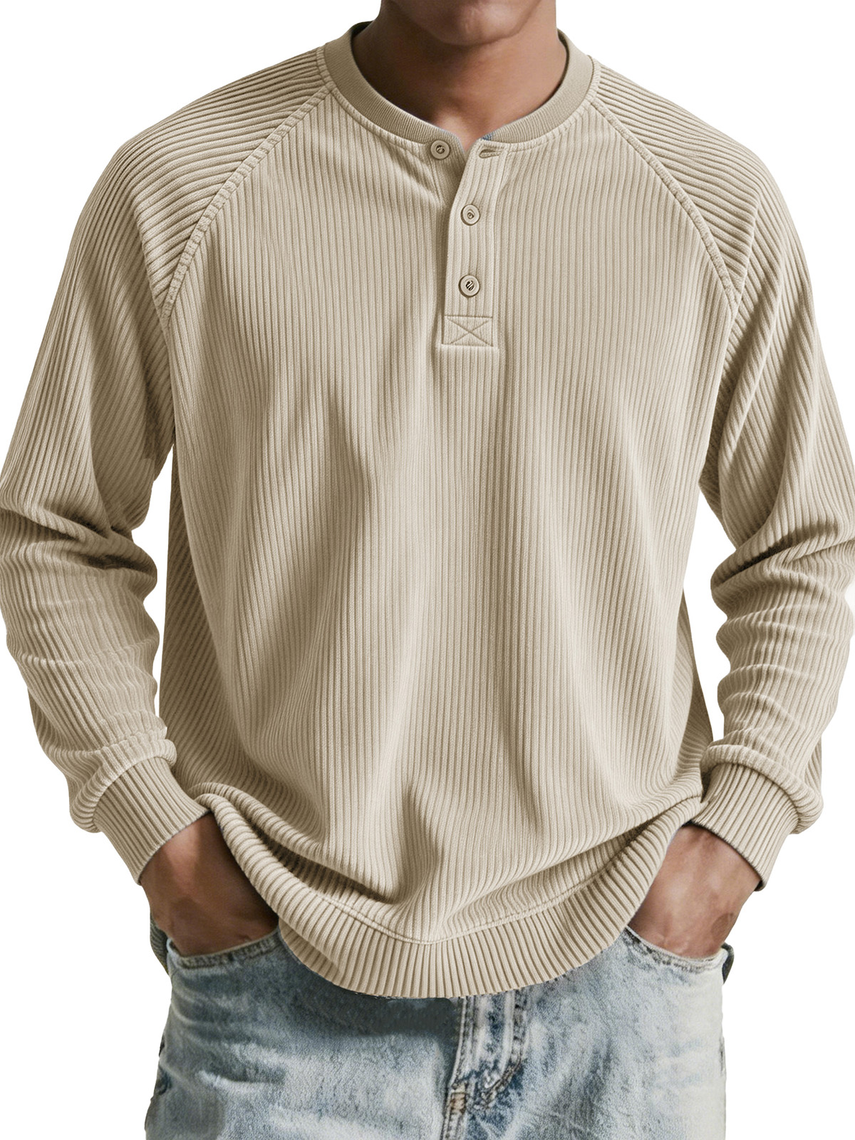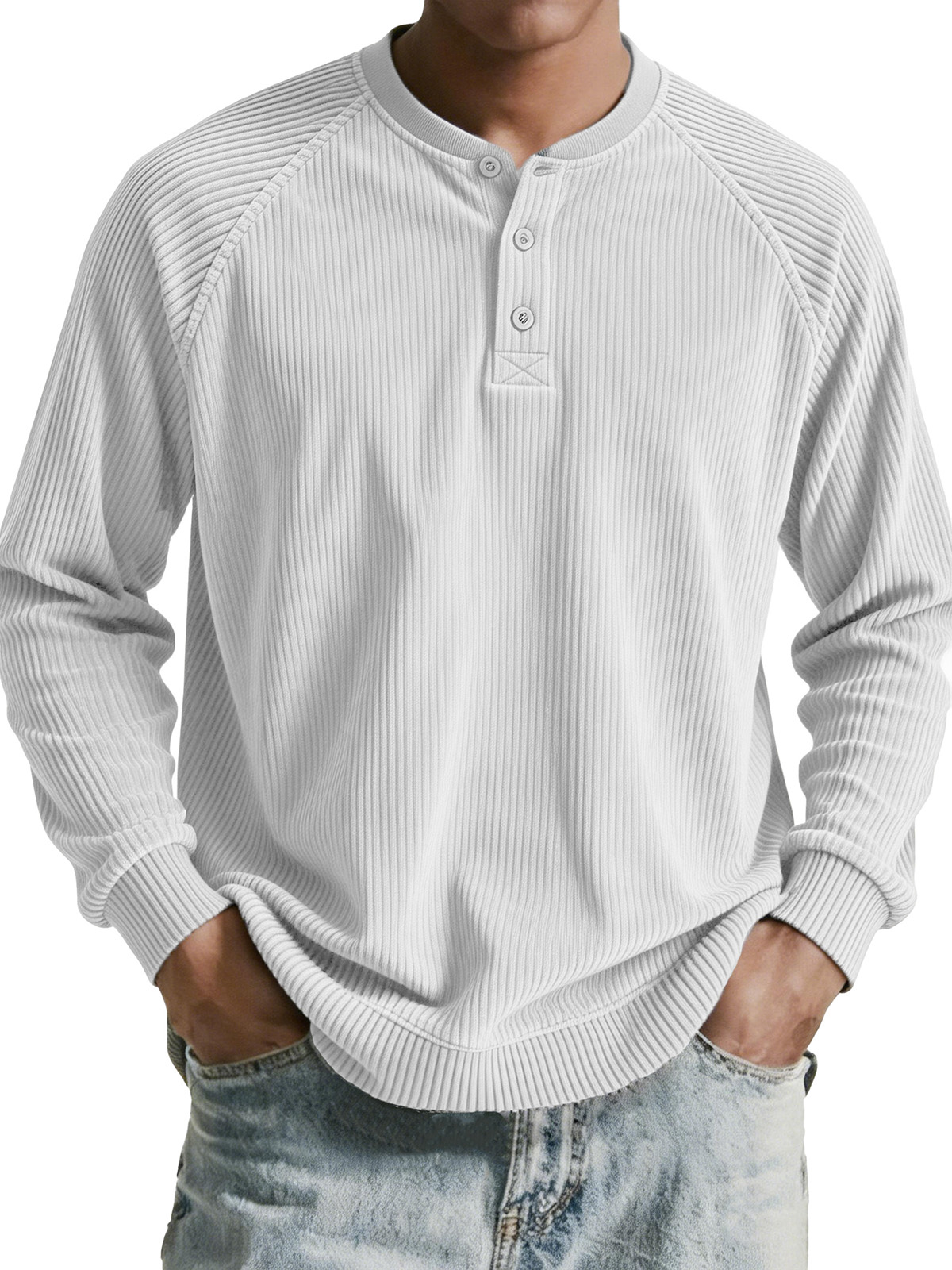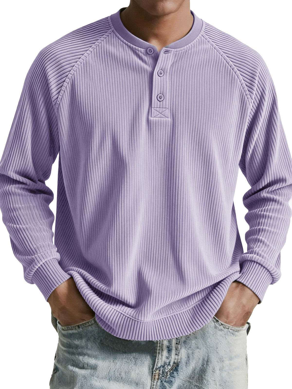 Men's clothing fashionable casual retro corduroy long-sleeved Henry shirt