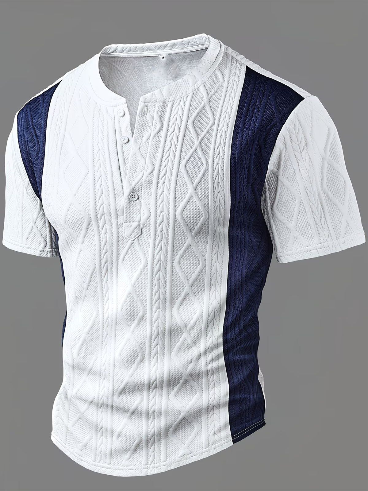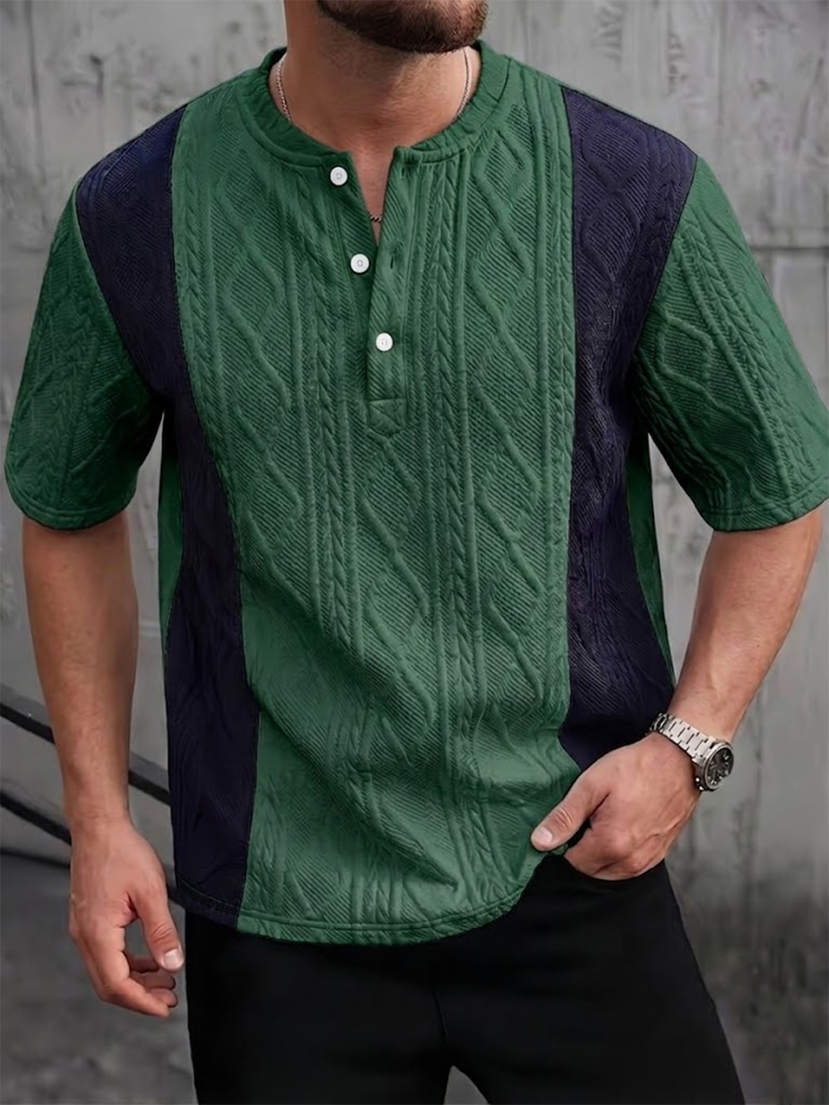Men's Color-blocked Jacquard Textured Pullover Henley