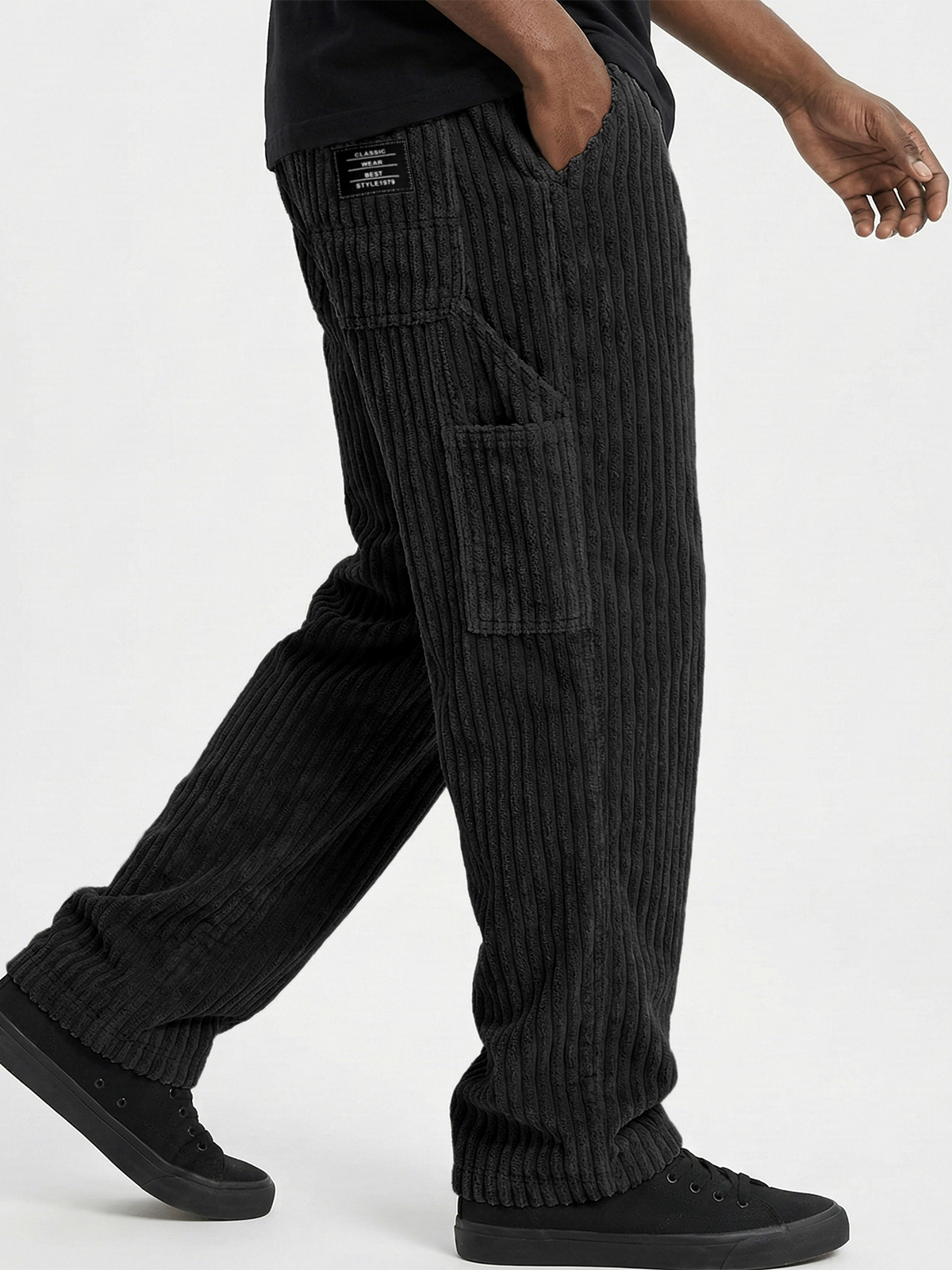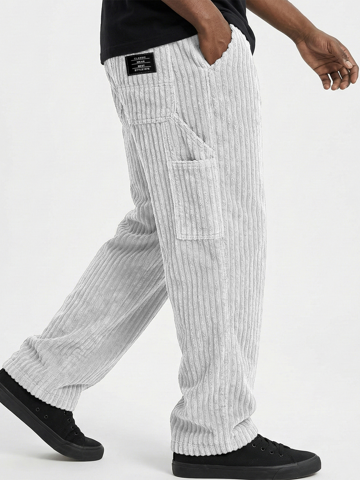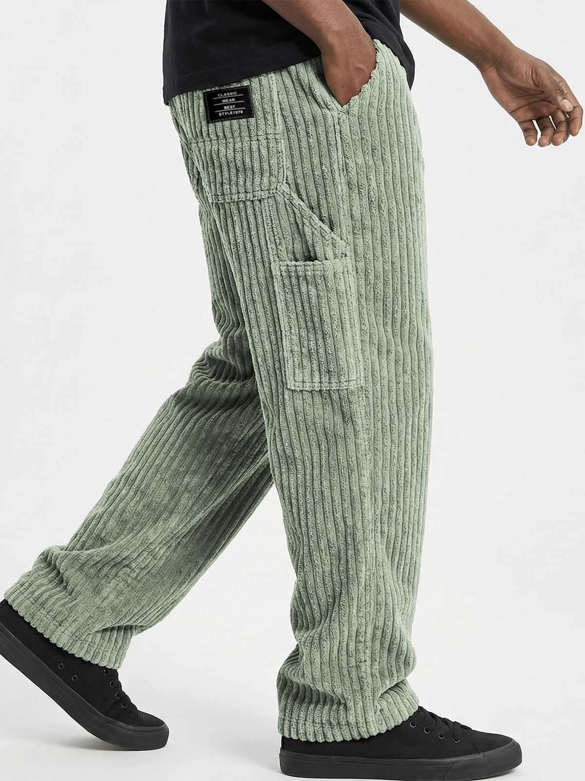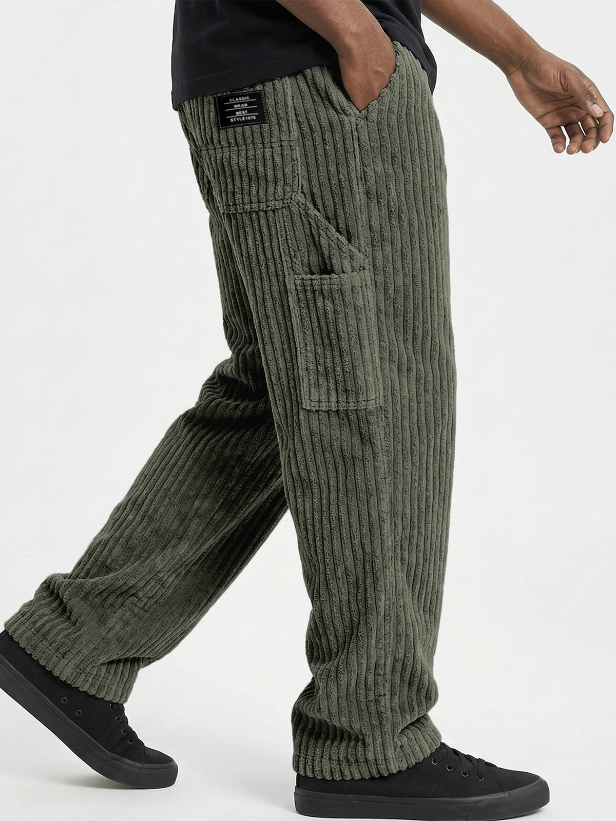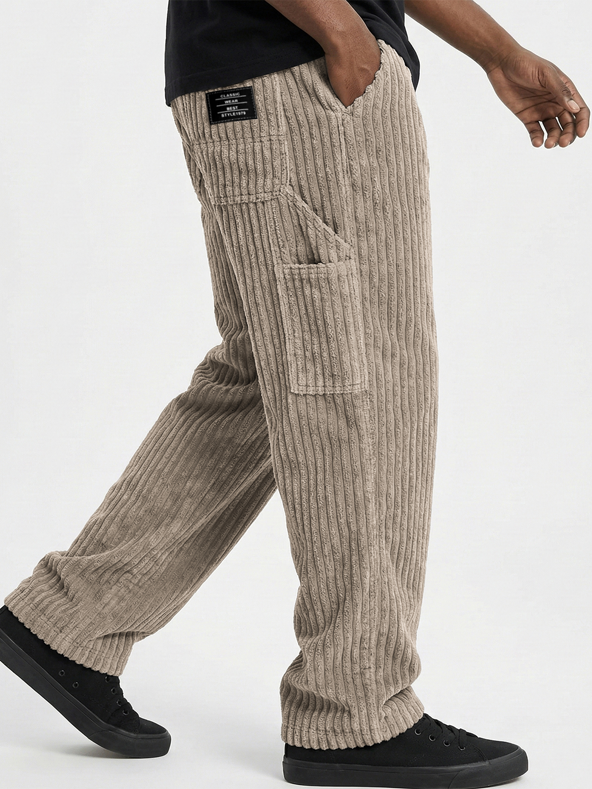 Men's Comfort and Soft Corduroy Textured Practical Work Pants with Multiple Pockets and Embroidered Label