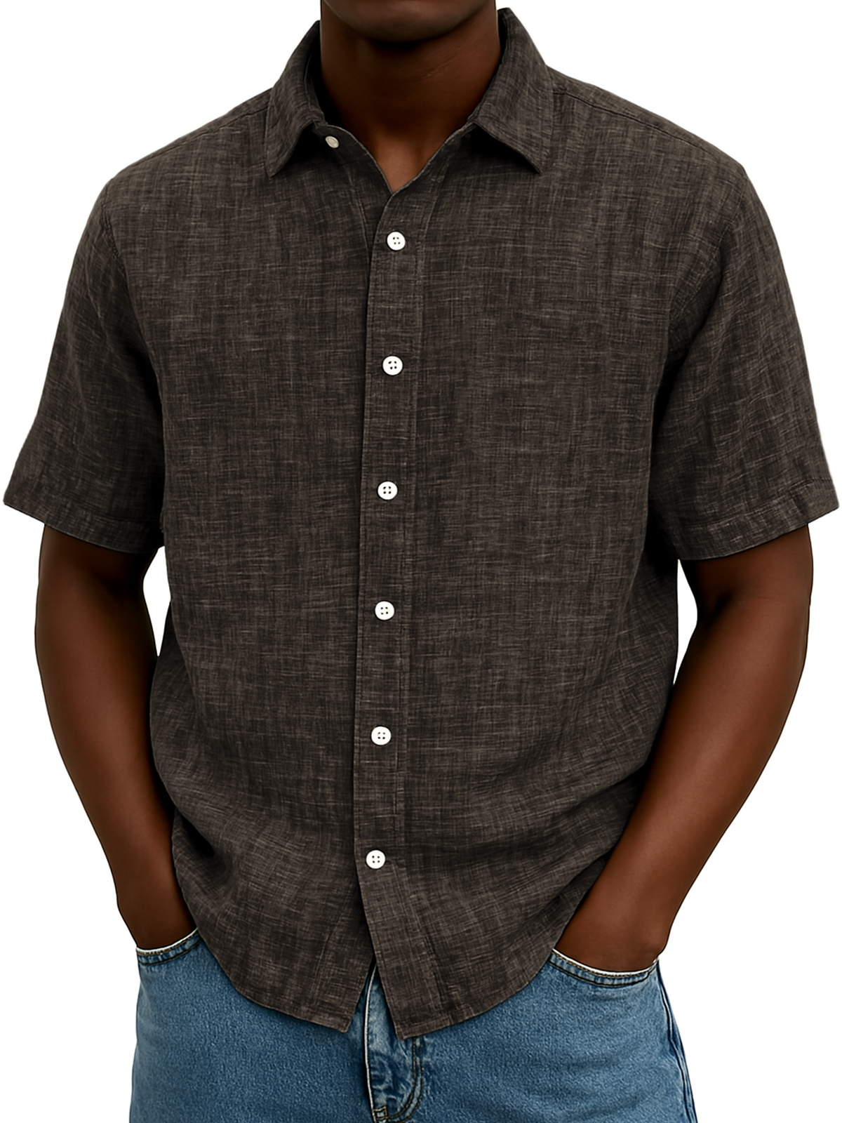 Men's Comfort Linen Loose Everyday Button Short Sleeve Shirt